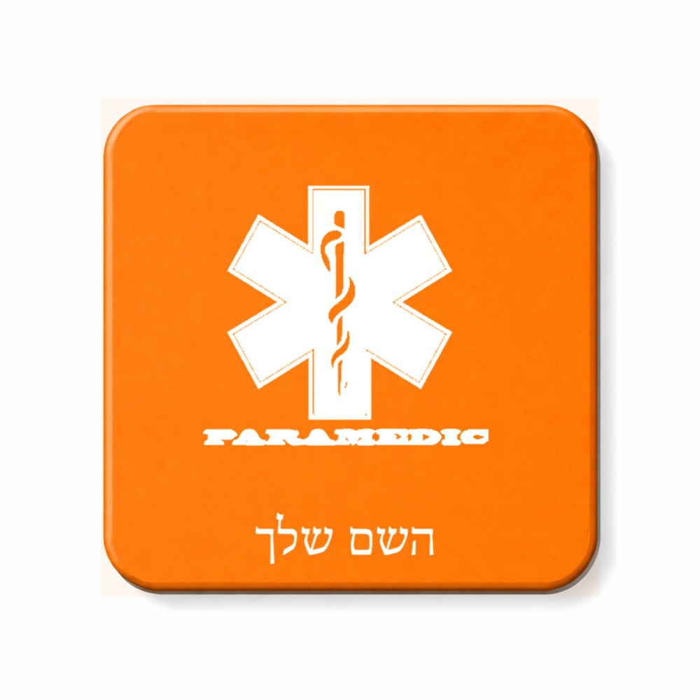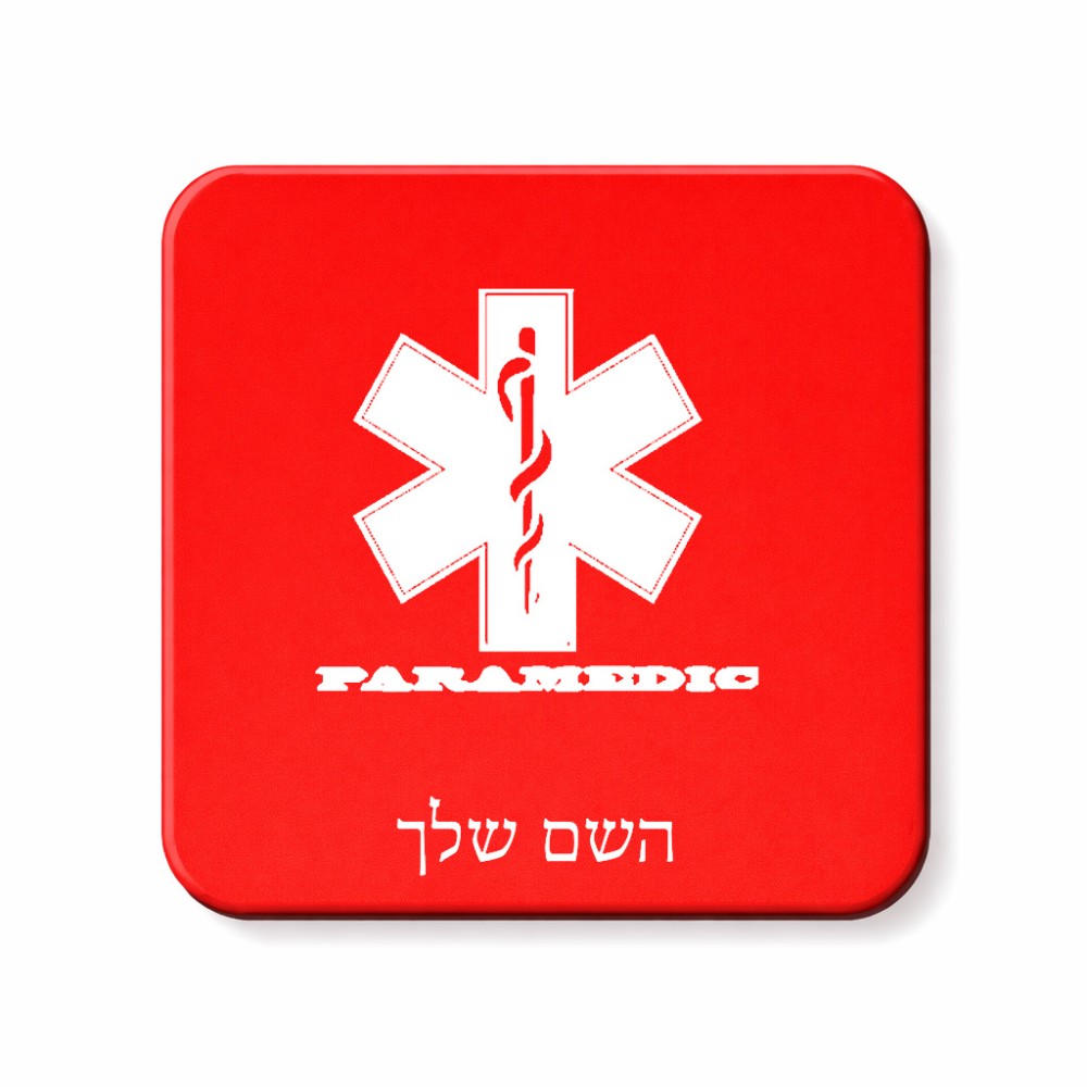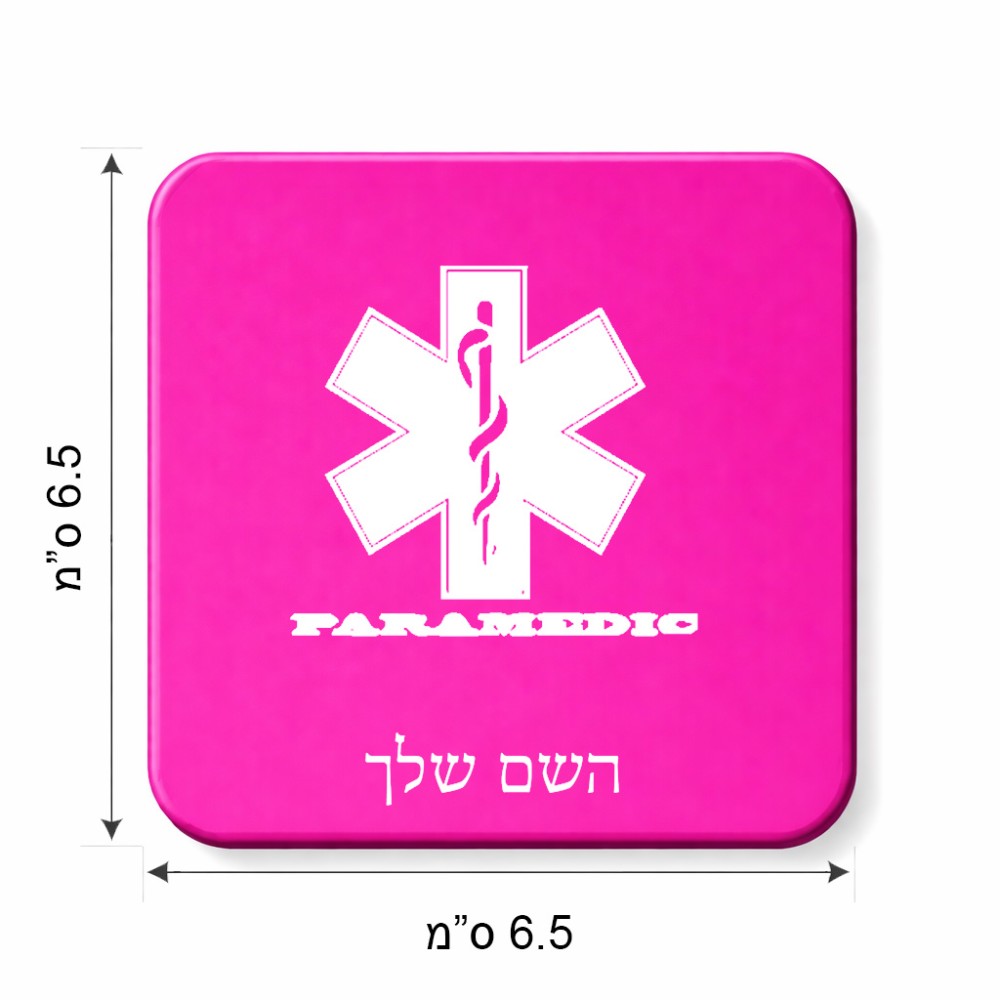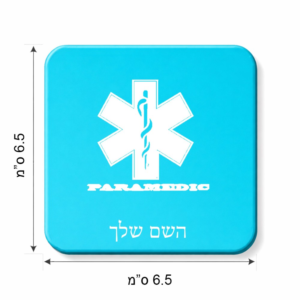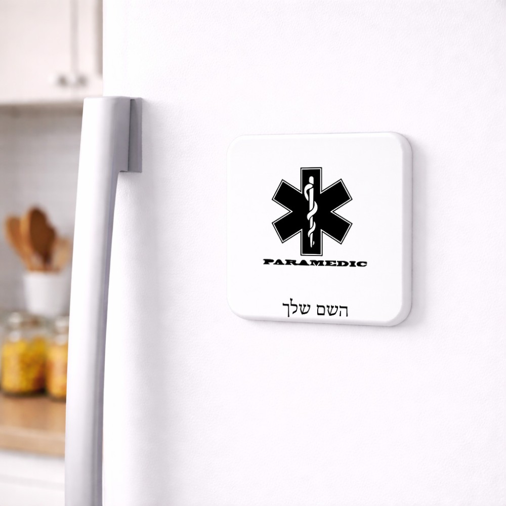 מגנט למקרר בעיצוב אישי עם השם שלך בעיצוב חובש גודל המגנט 6.5 × 6.5 ס"מ
