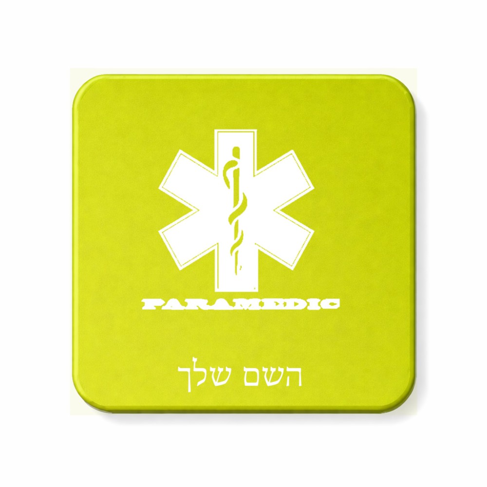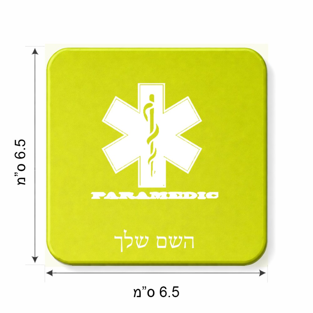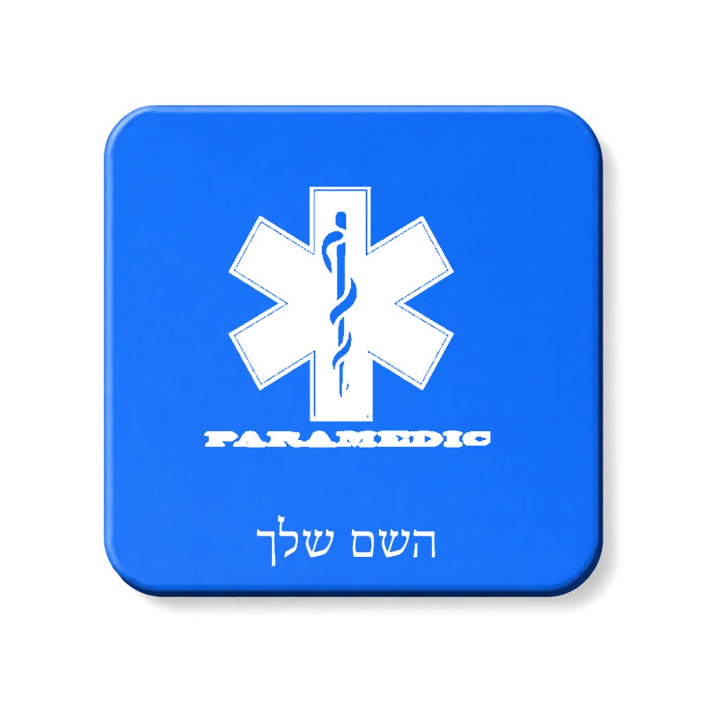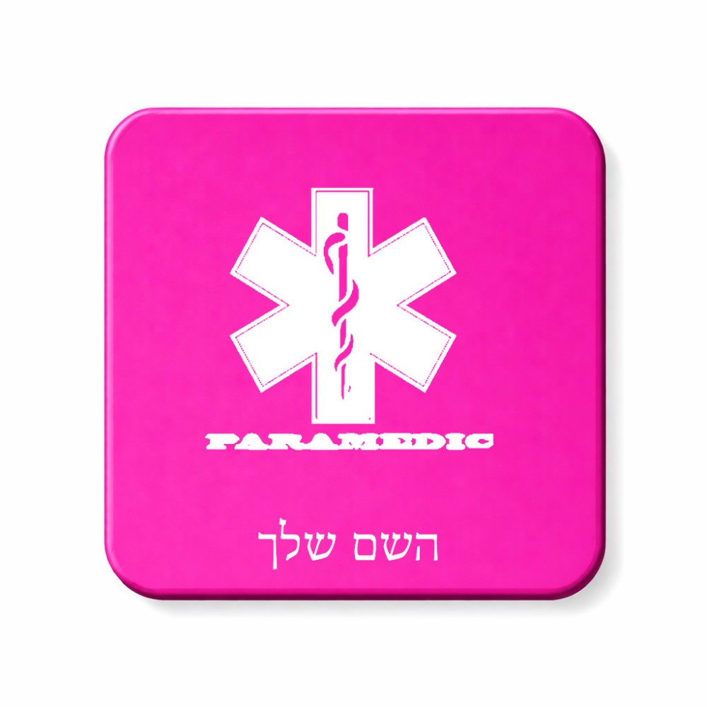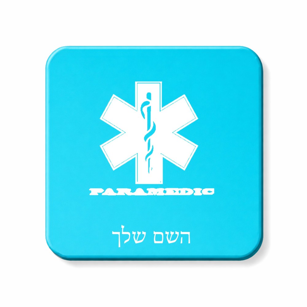 מגנט למקרר בעיצוב אישי עם השם שלך בעיצוב חובש גודל המגנט 6.5 × 6.5 ס"מ