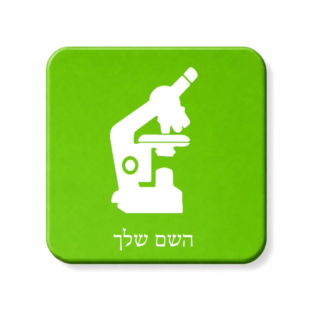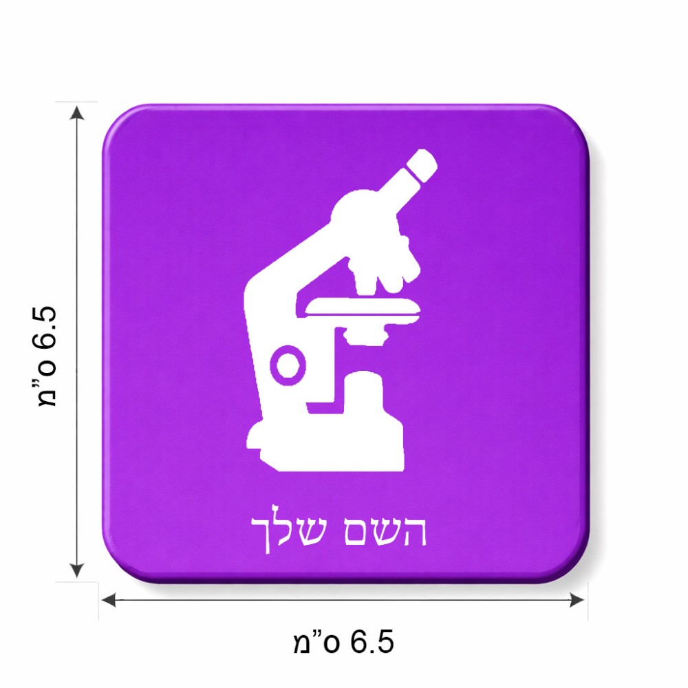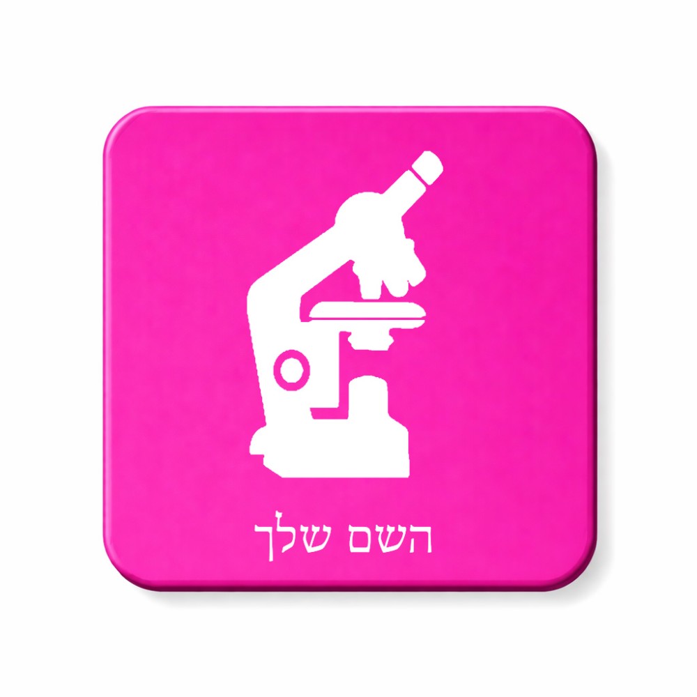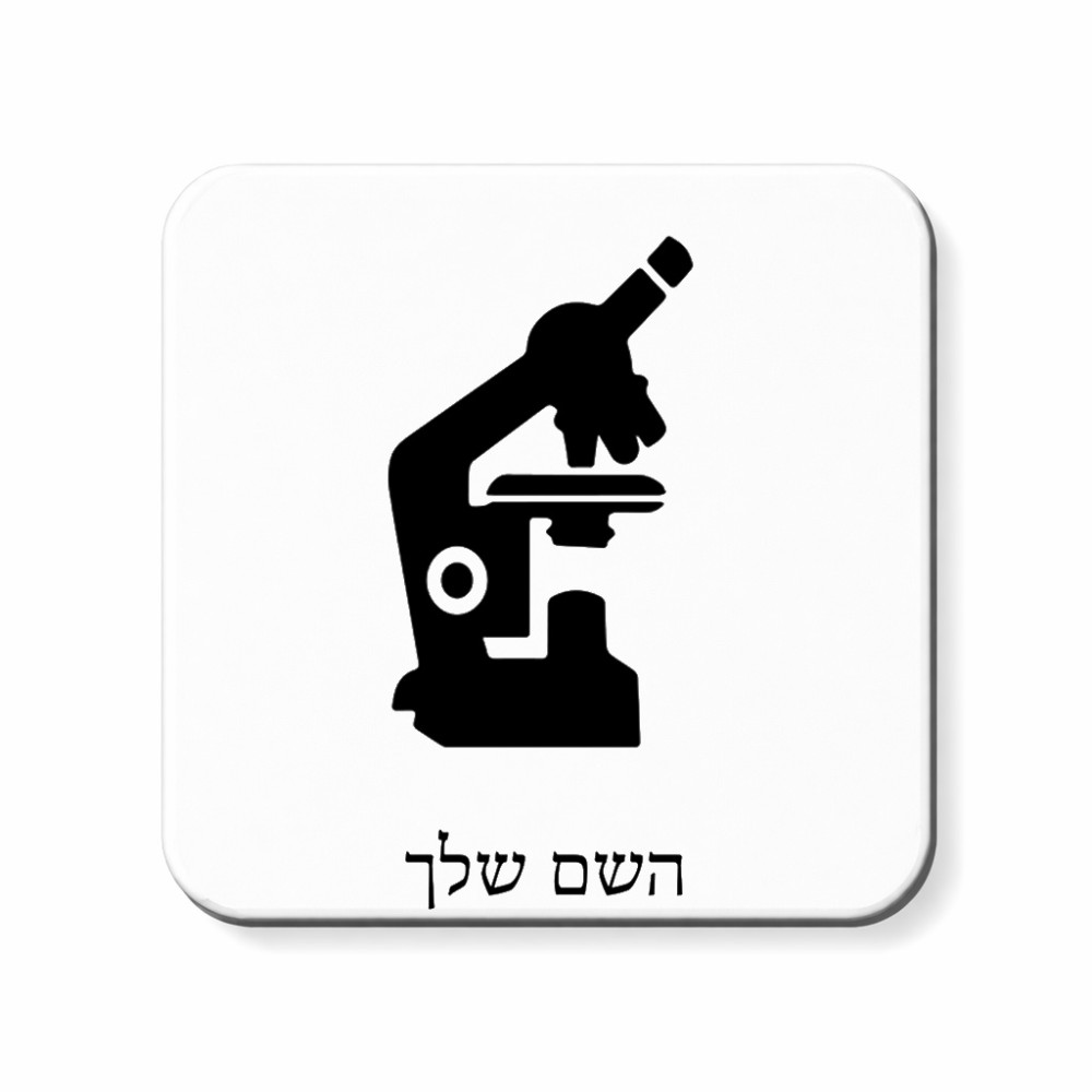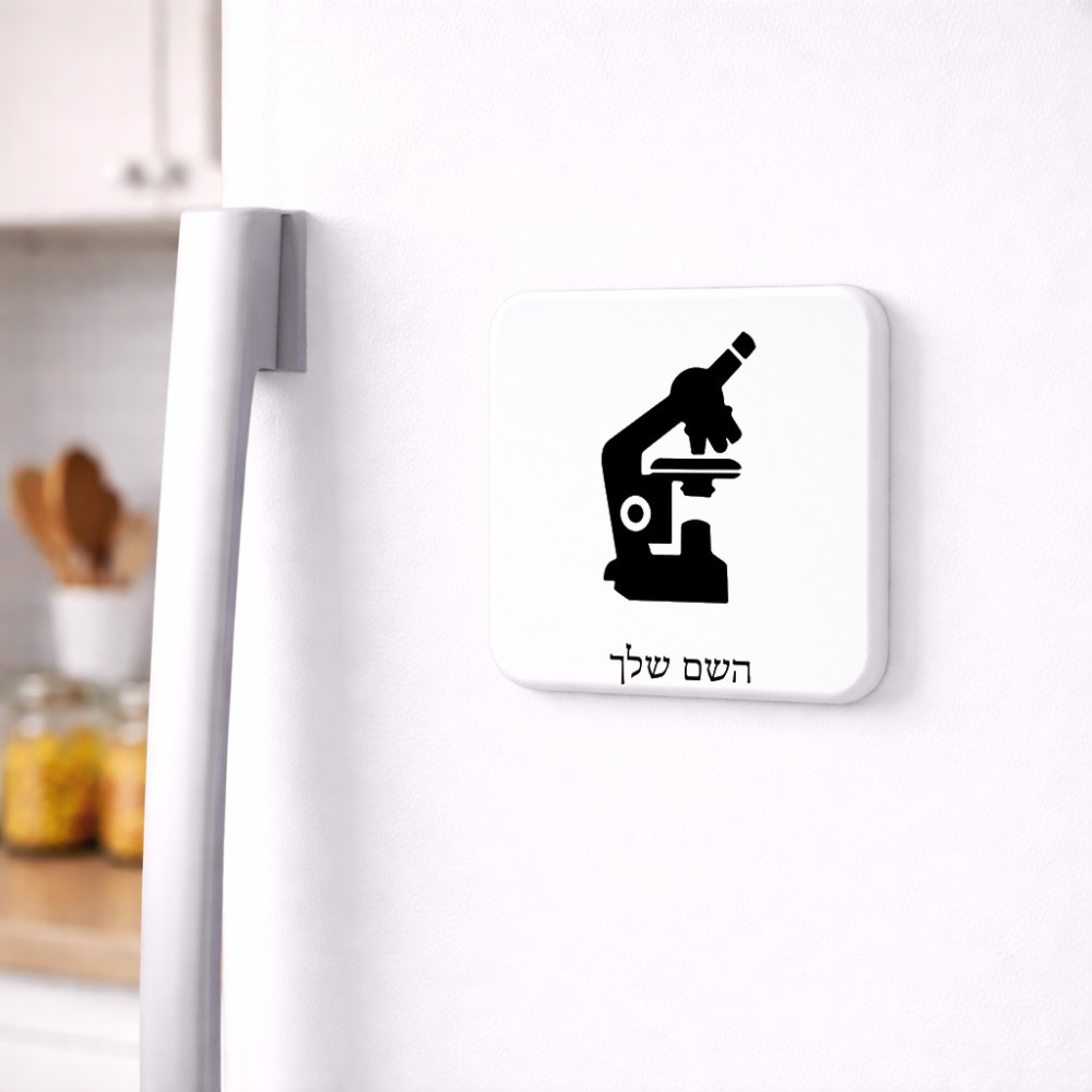 מגנט למקרר בעיצוב אישי עם השם שלך בעיצוב מיקרוסקופ גודל המגנט 6.5 × 6.5 ס"מ. את השם המבוקש ניתן לציין בהזמנה, אם לא צויין אנחנו ניצור קשר לבירור.