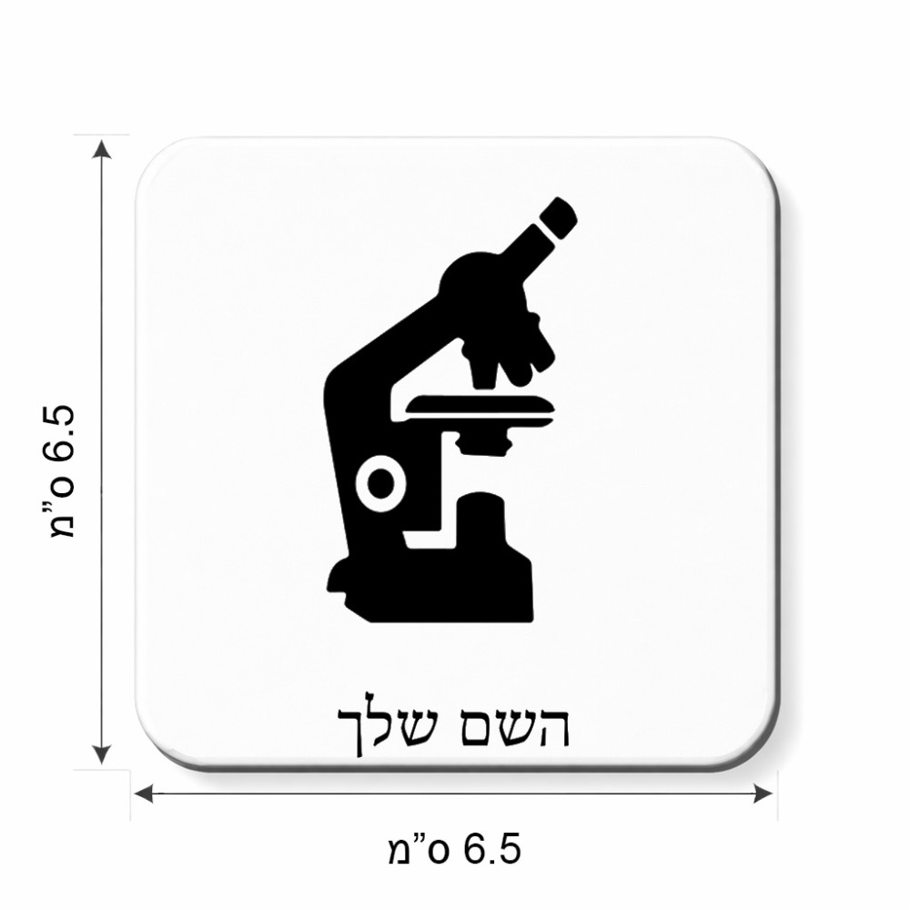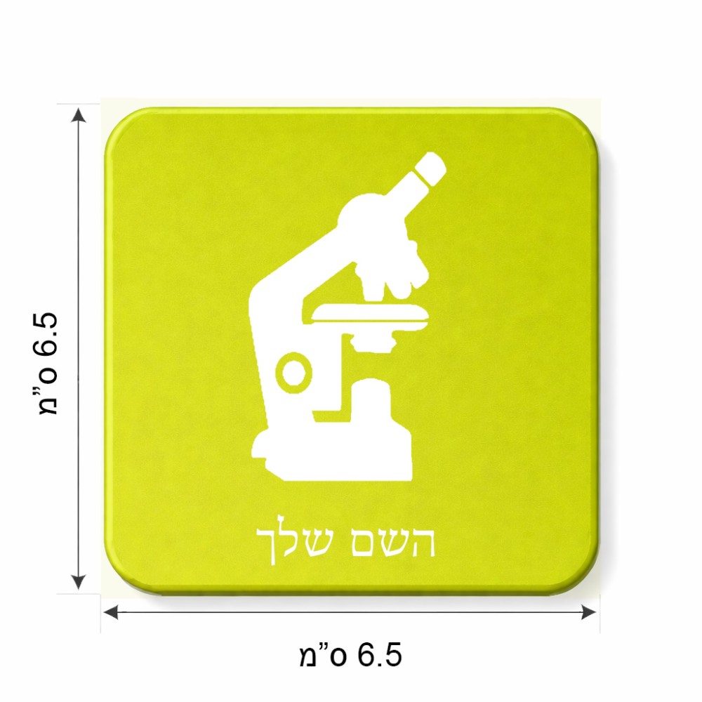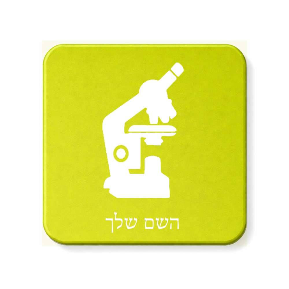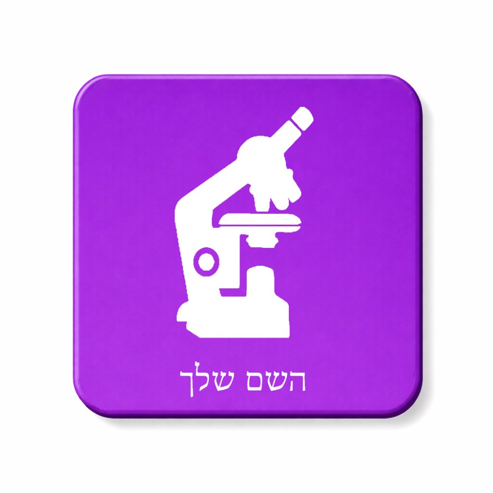 מגנט למקרר בעיצוב אישי עם השם שלך בעיצוב מיקרוסקופ גודל המגנט 6.5 × 6.5 ס"מ. את השם המבוקש ניתן לציין בהזמנה, אם לא צויין אנחנו ניצור קשר לבירור.
