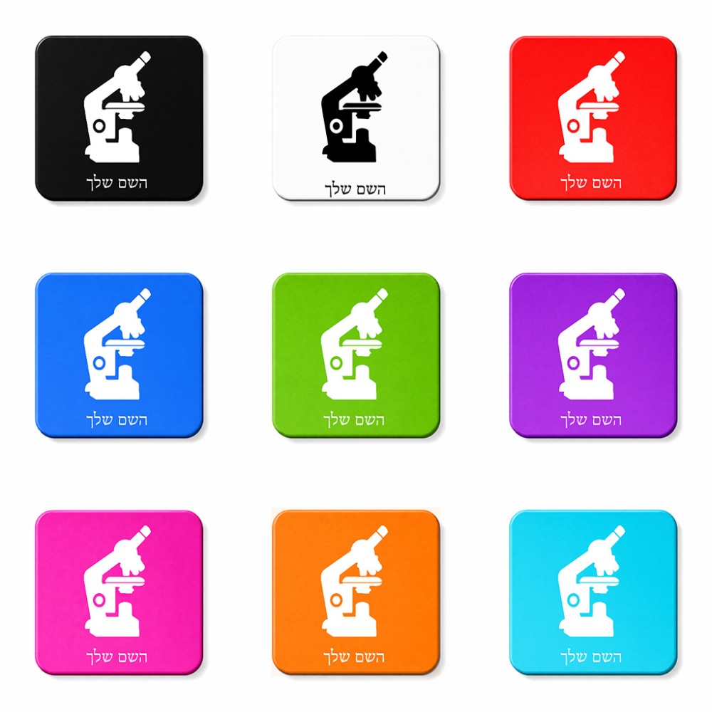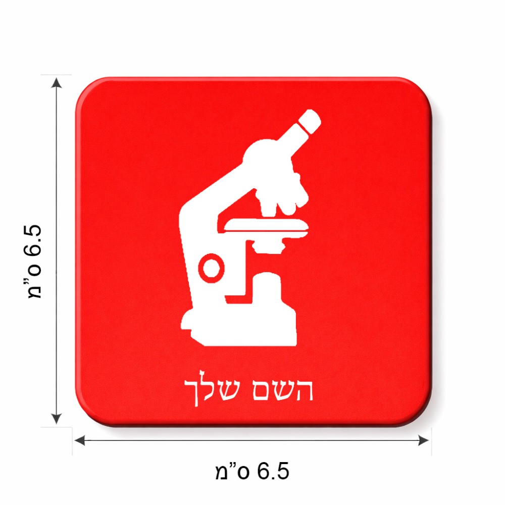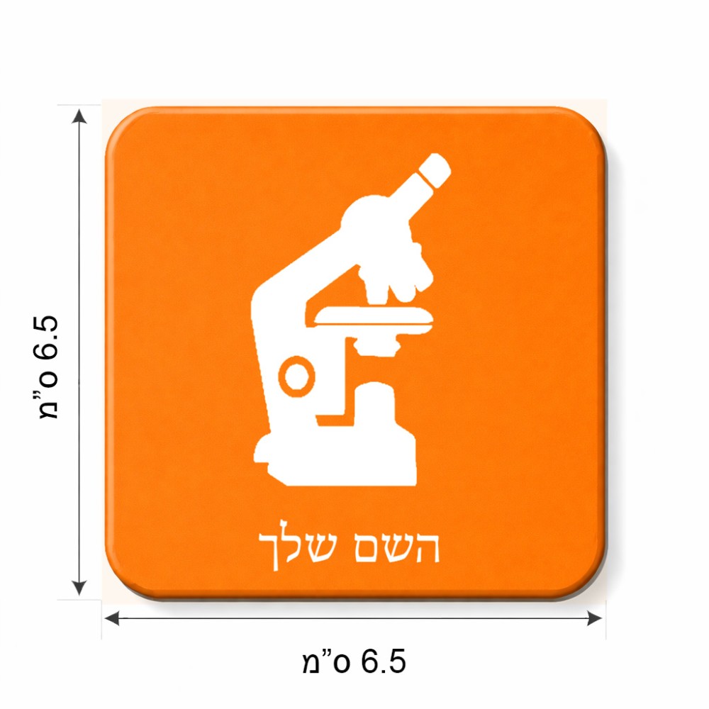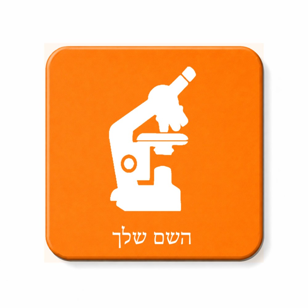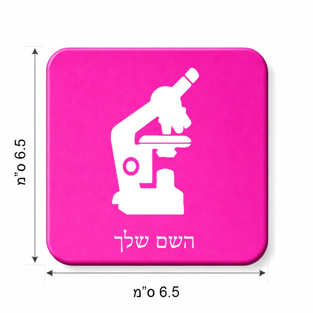 מגנט למקרר בעיצוב אישי עם השם שלך בעיצוב מיקרוסקופ גודל המגנט 6.5 × 6.5 ס"מ. את השם המבוקש ניתן לציין בהזמנה, אם לא צויין אנחנו ניצור קשר לבירור.