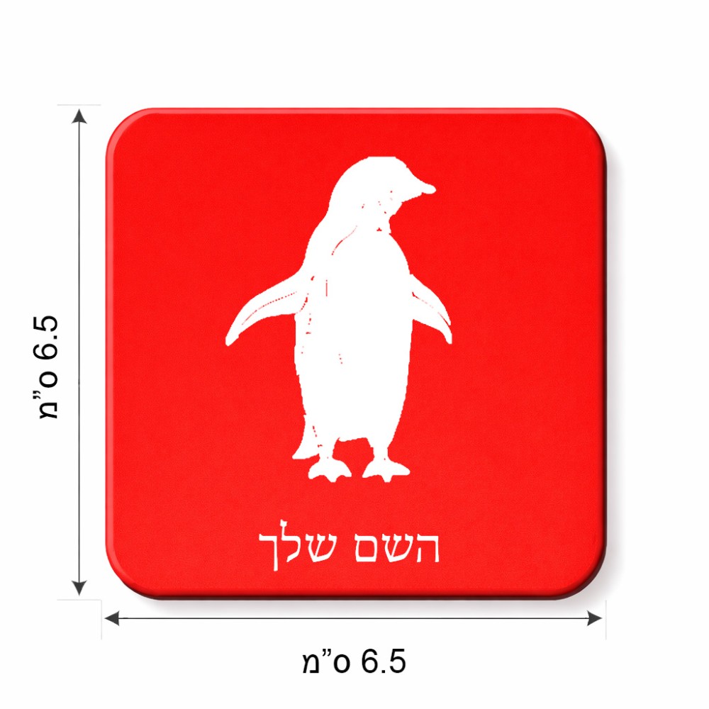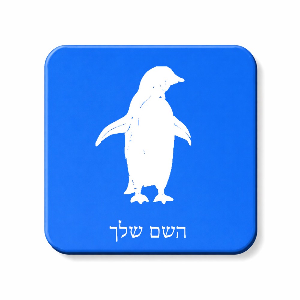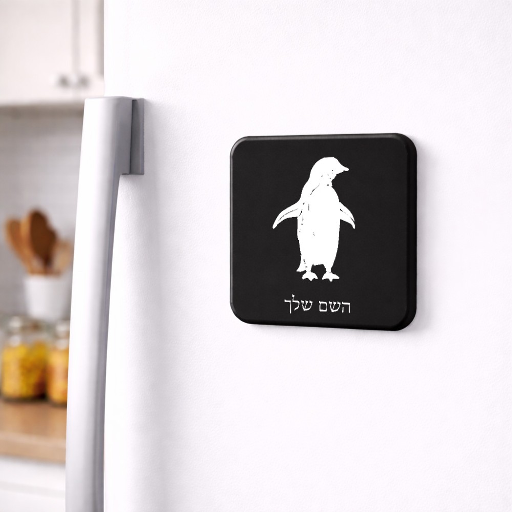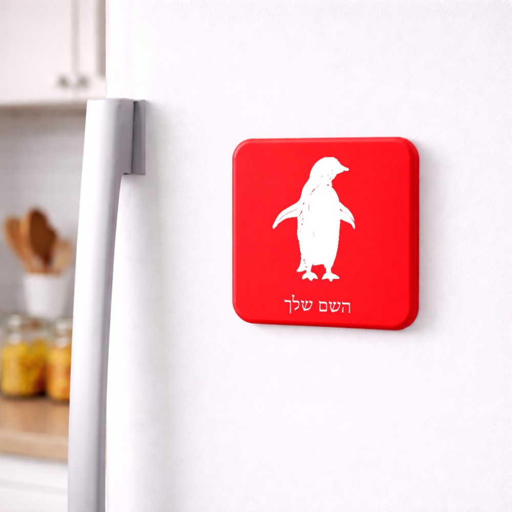 מגנט למקרר בעיצוב אישי עם השם שלך בעיצוב פינגווין גודל המגנט 6.5 × 6.5 ס"מ. את השם המבוקש ניתן לציין בהזמנה, אם לא צויין אנחנו ניצור קשר לבירור.