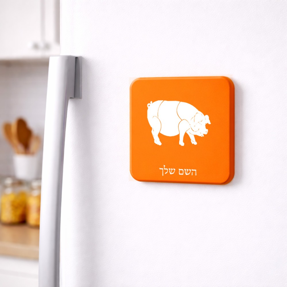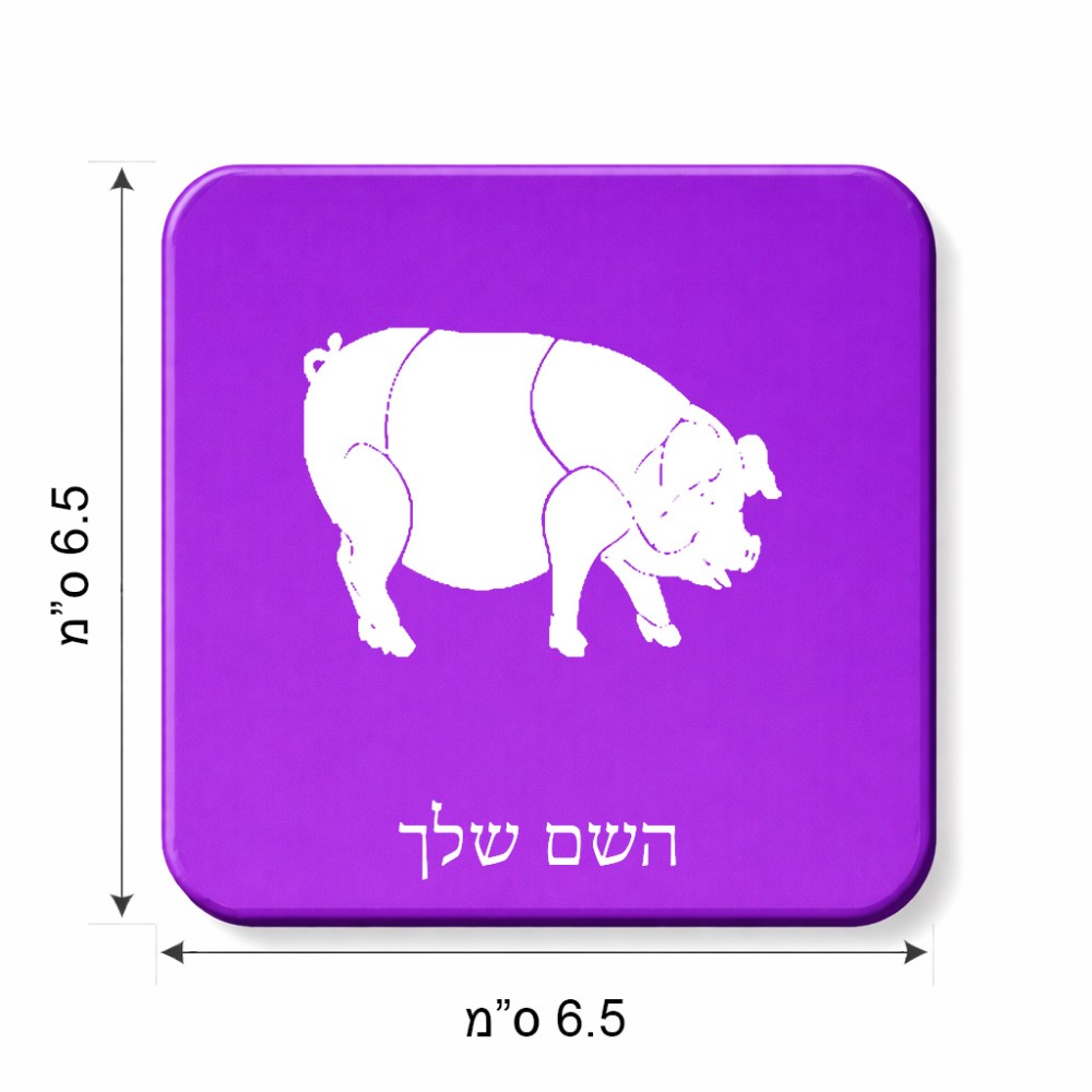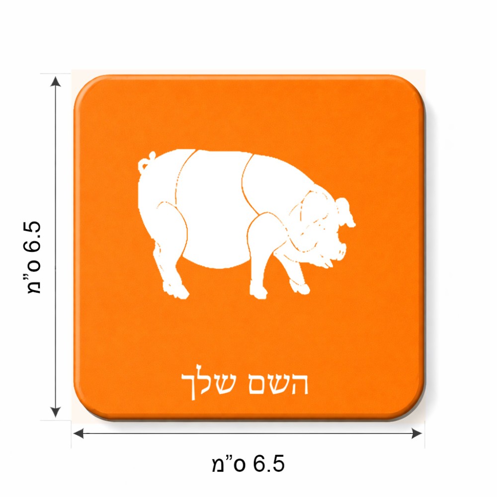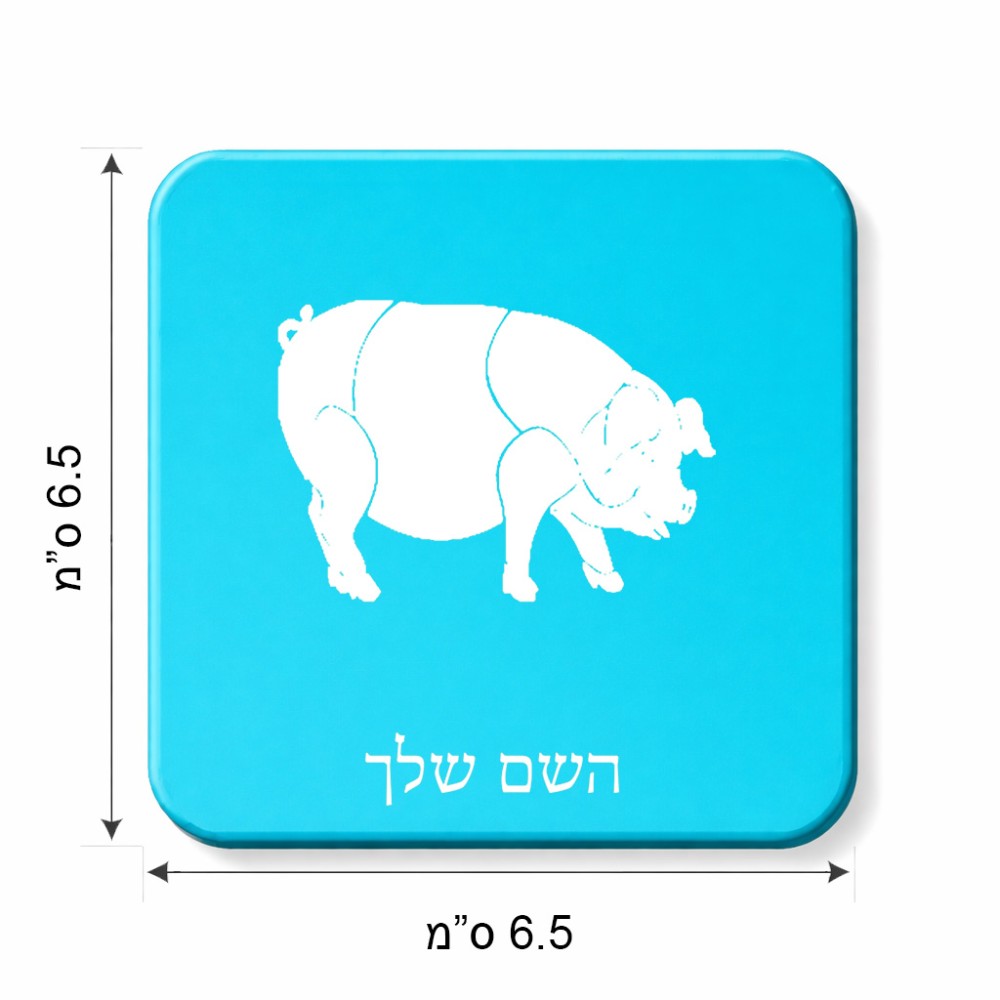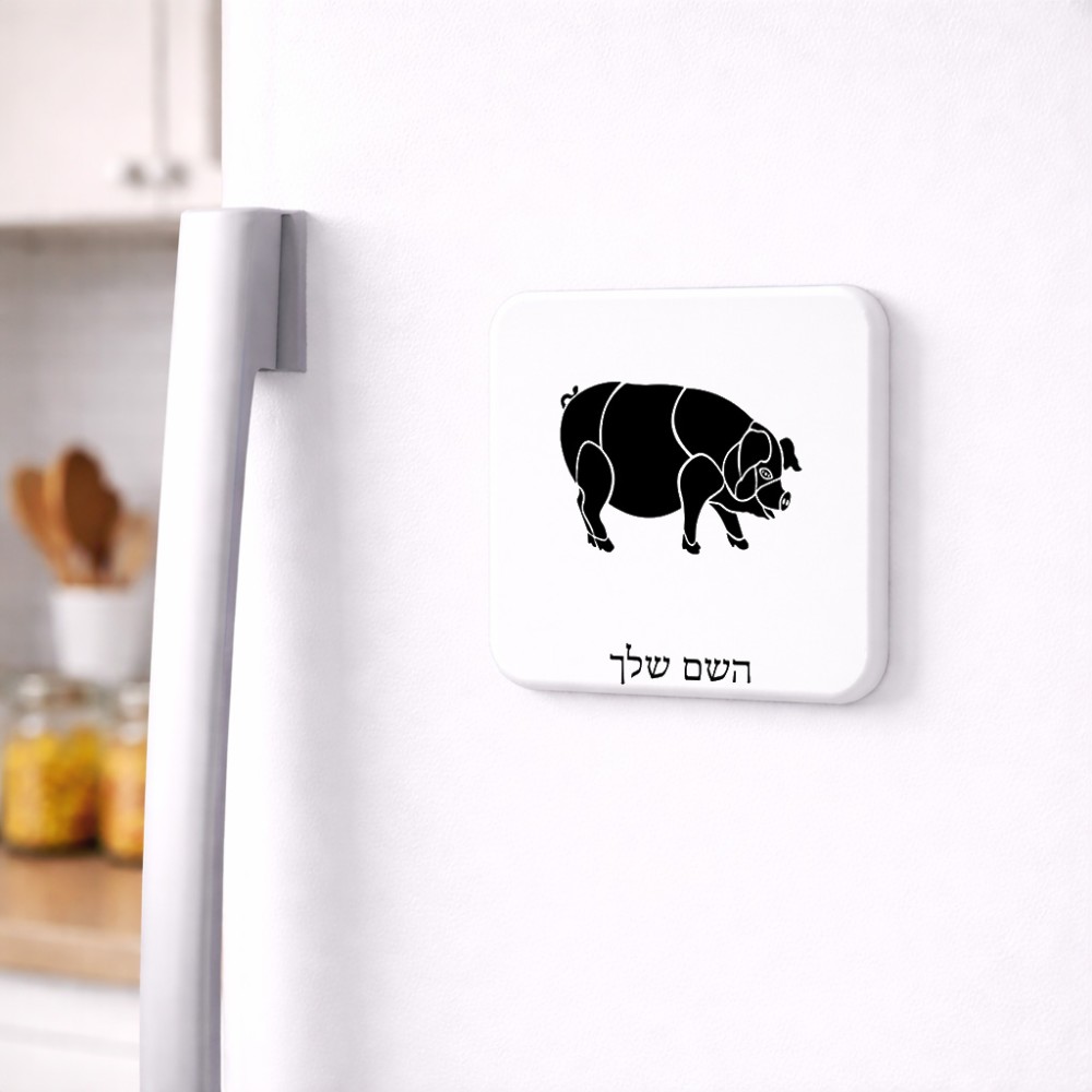 מגנט למקרר בעיצוב אישי עם השם שלך בעיצוב חזיר גודל המגנט 6.5 × 6.5 ס"מ. את השם המבוקש ניתן לציין בהזמנה, אם לא צויין אנחנו ניצור קשר לבירור.