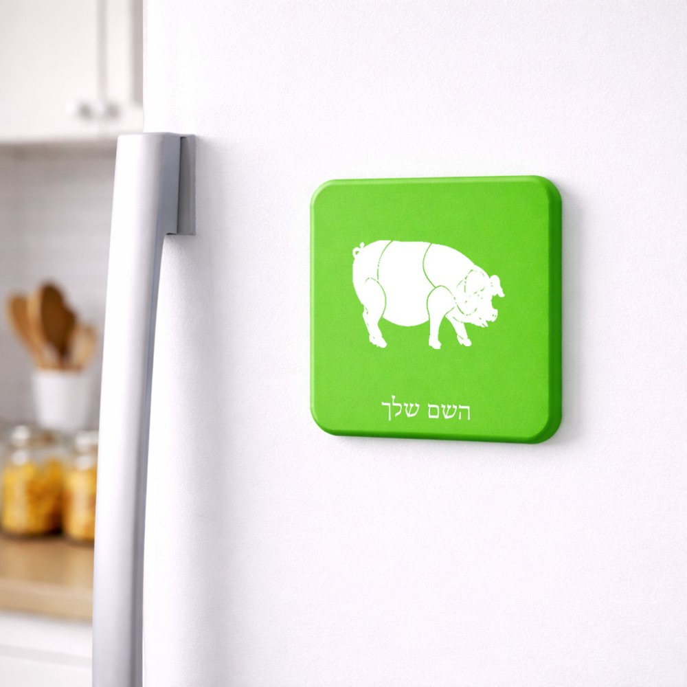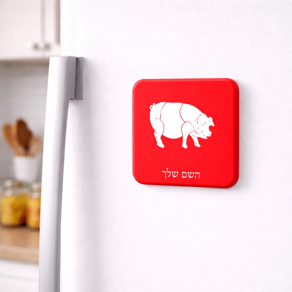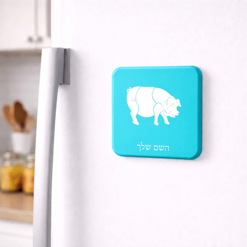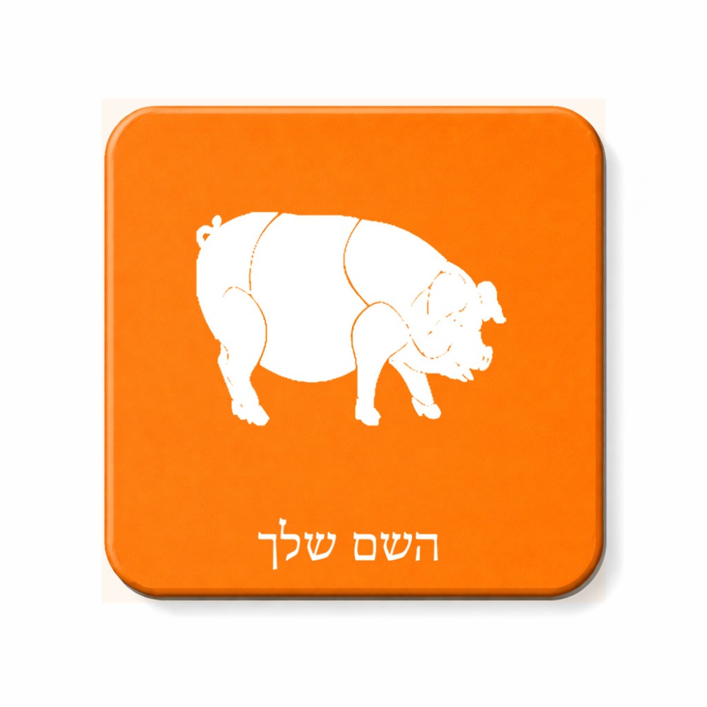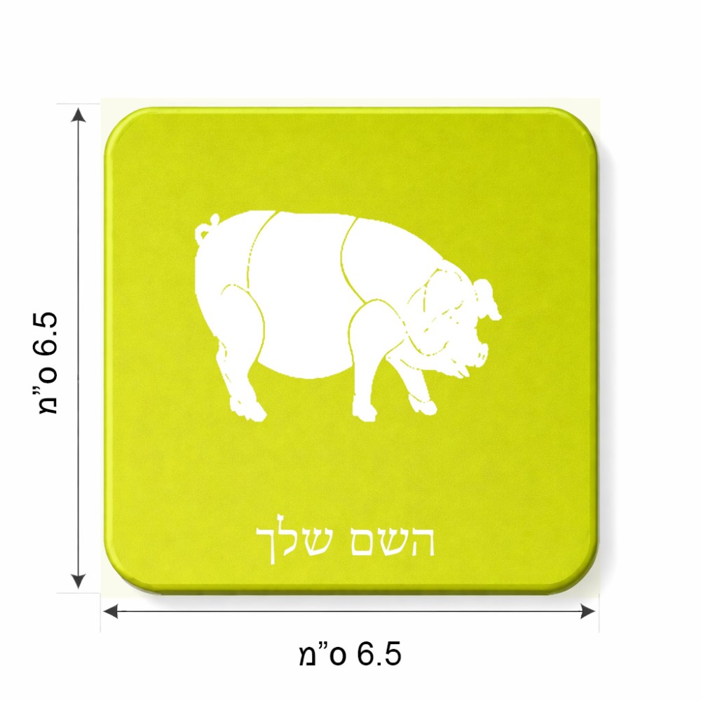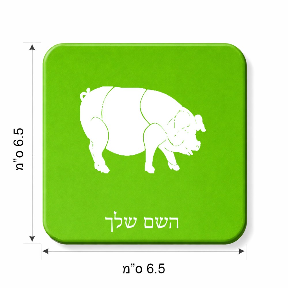 מגנט למקרר בעיצוב אישי עם השם שלך בעיצוב חזיר גודל המגנט 6.5 × 6.5 ס"מ. את השם המבוקש ניתן לציין בהזמנה, אם לא צויין אנחנו ניצור קשר לבירור.