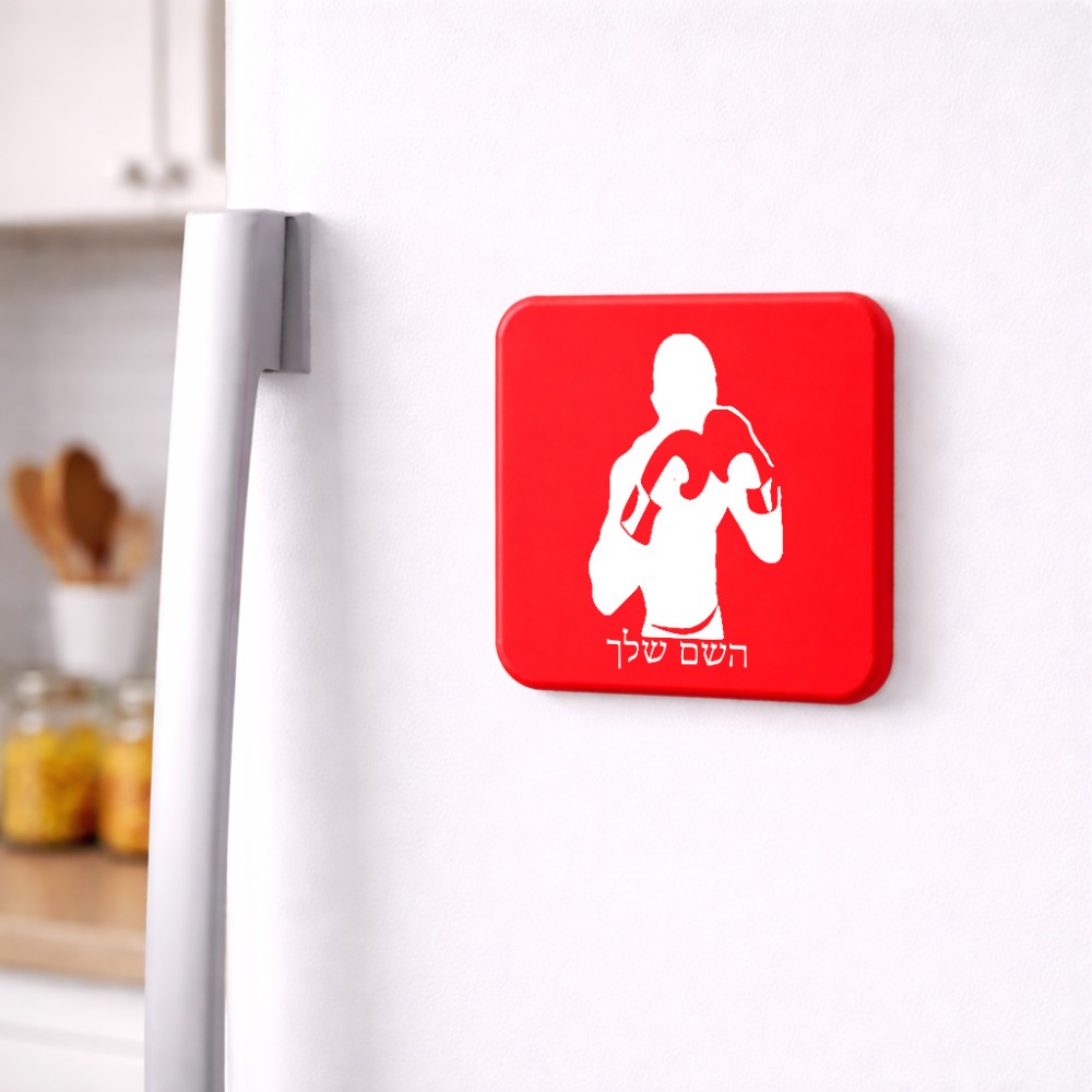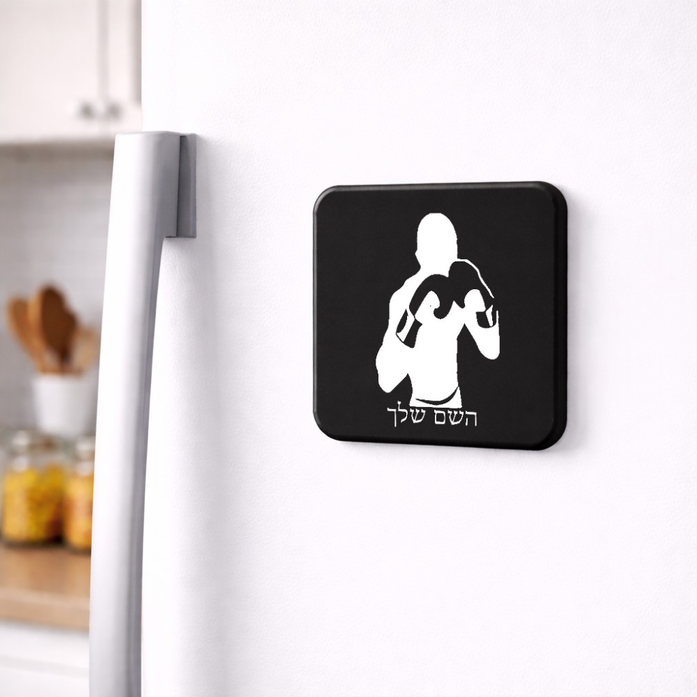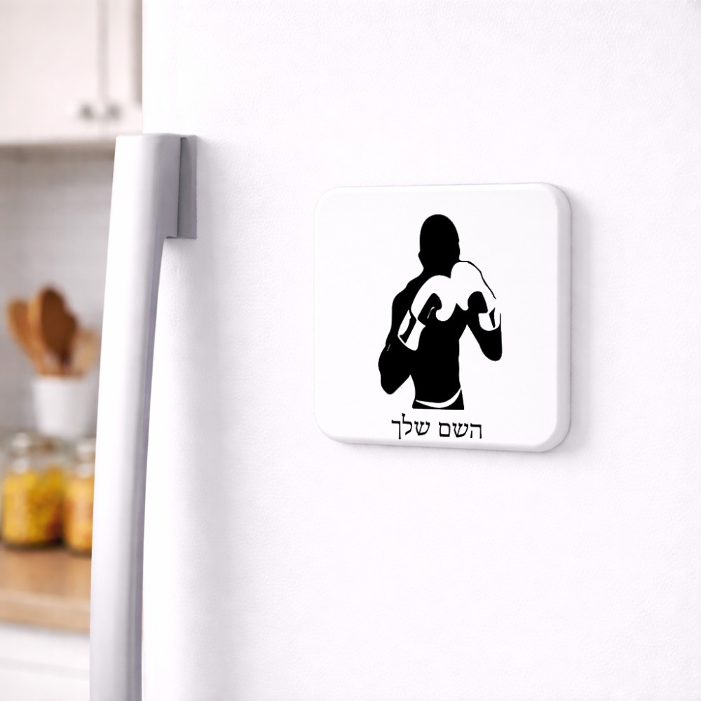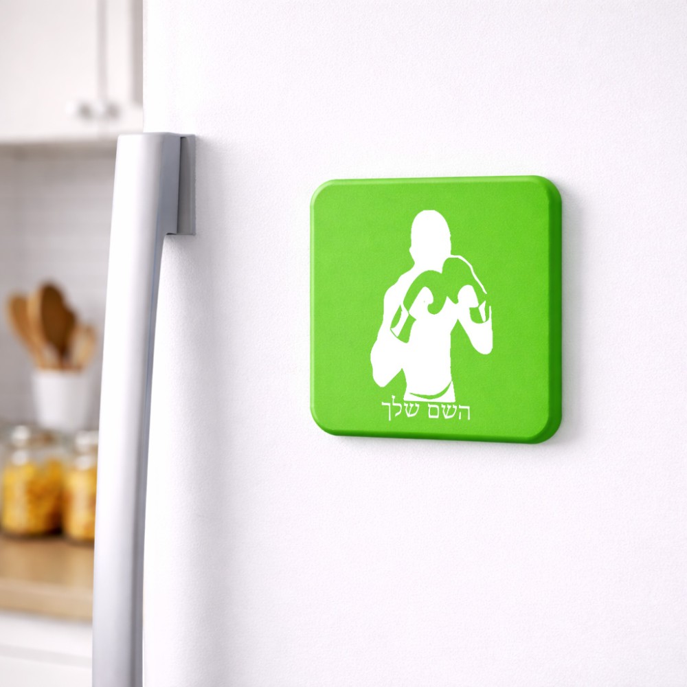 מגנט למקרר בעיצוב אישי עם השם שלך בעיצוב אגרוף גודל המגנט 6.5 × 6.5 ס"מ. את השם המבוקש ניתן לציין בהזמנה, אם לא צויין אנחנו ניצור קשר לבירור.