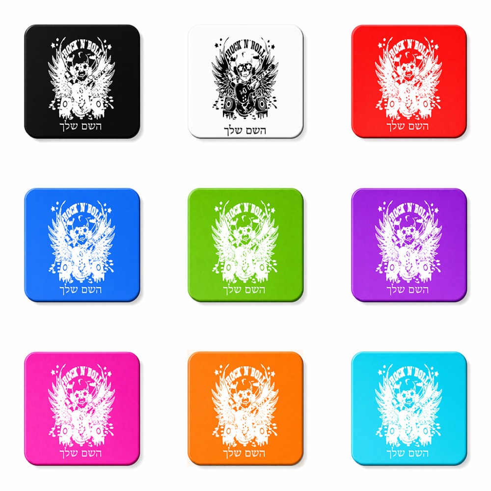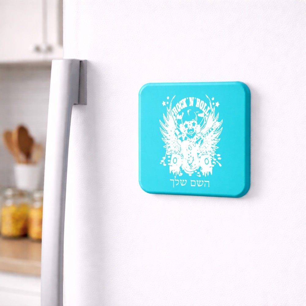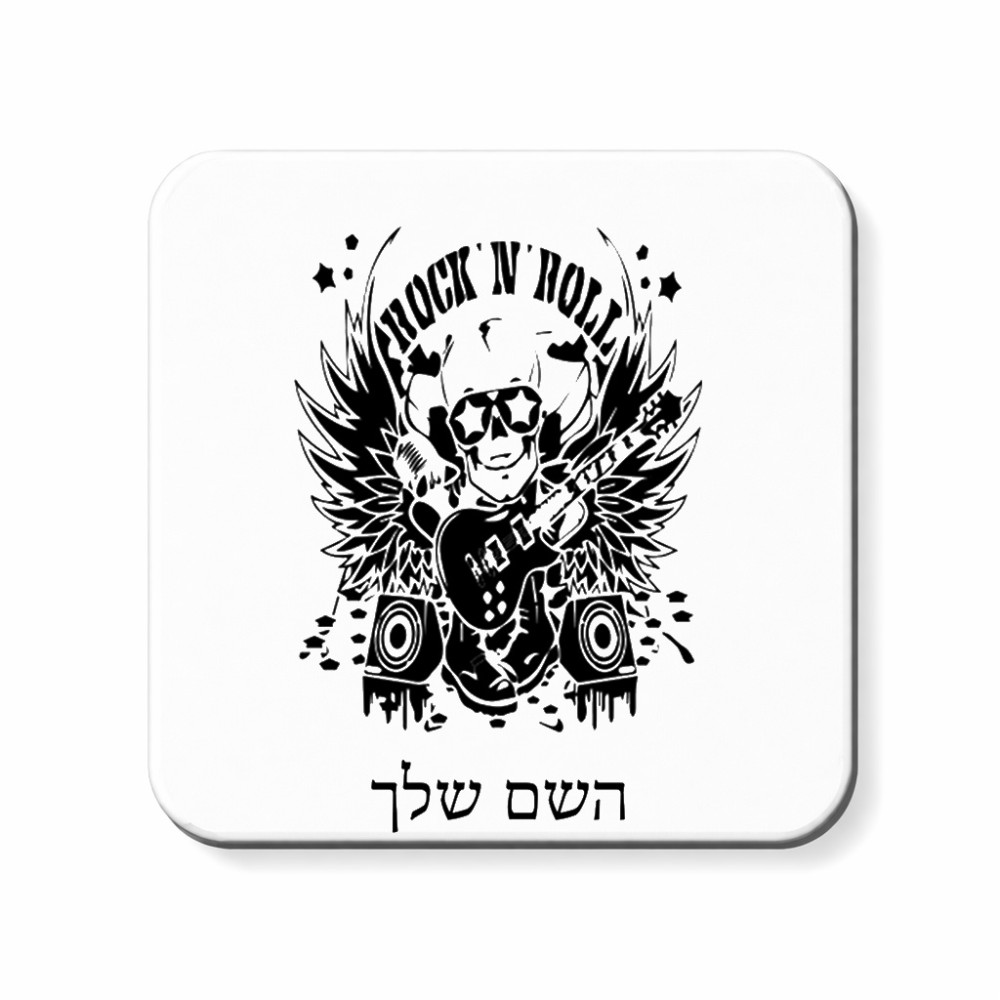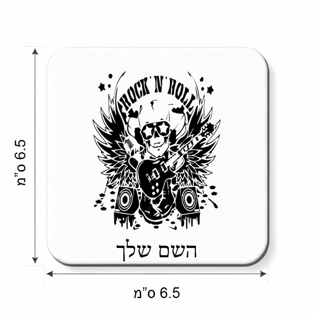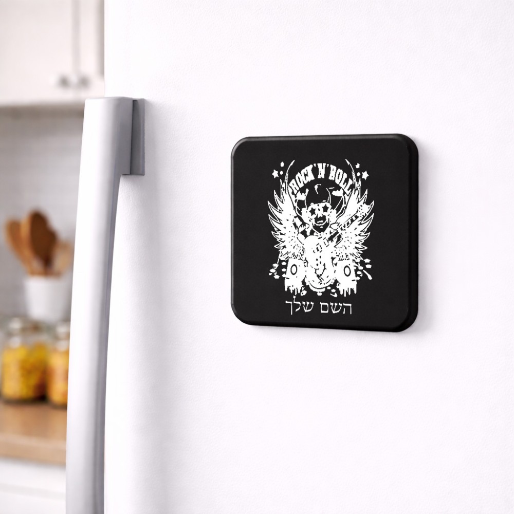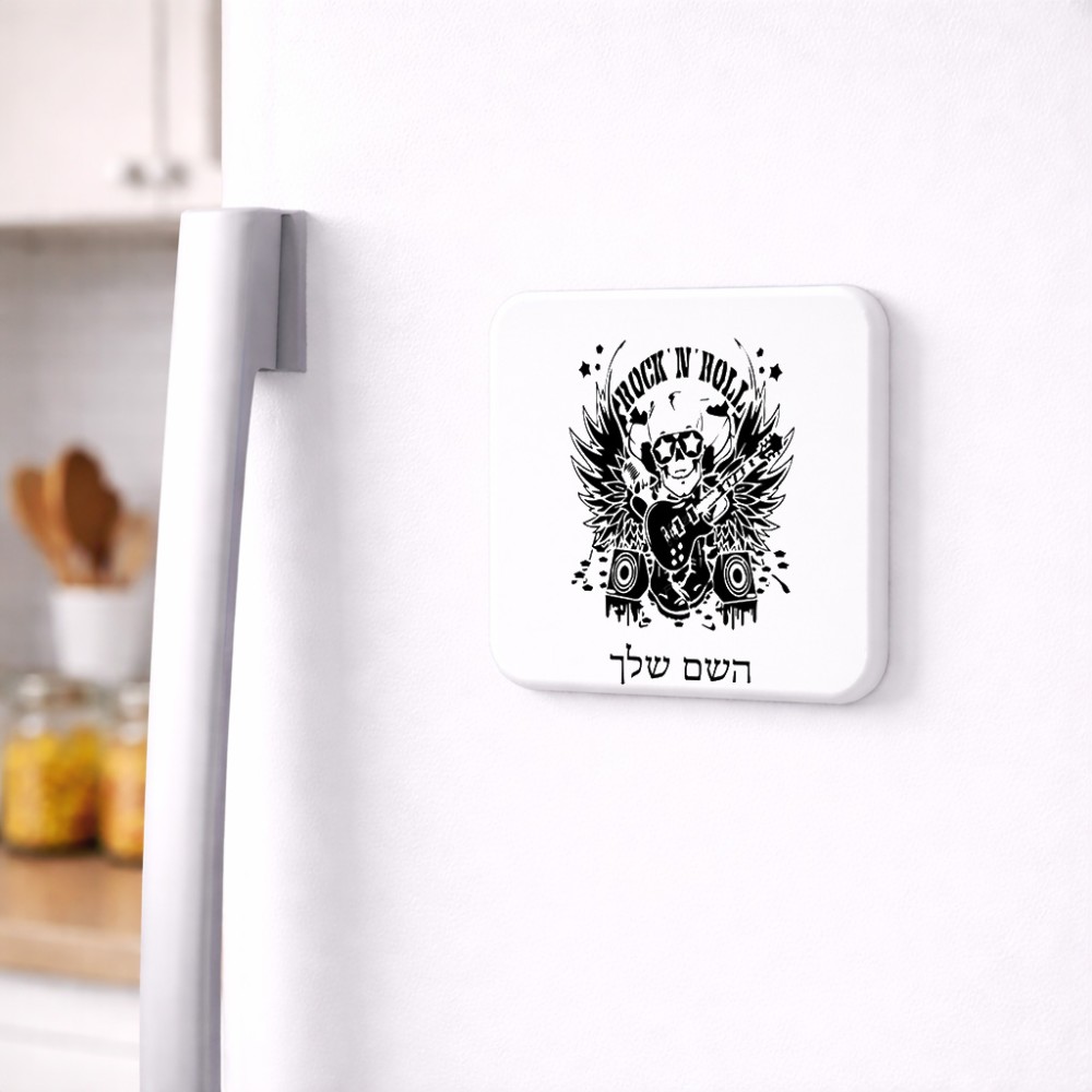 מגנט למקרר בעיצוב אישי עם השם שלך בעיצוב רוקנרול גודל המגנט 6.5 × 6.5 ס"מ