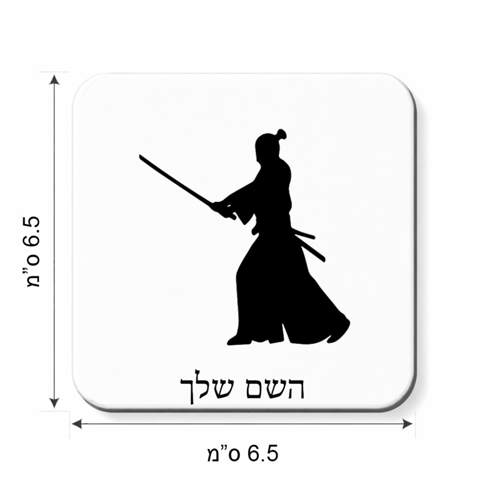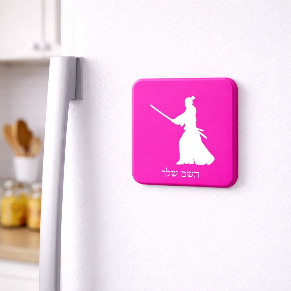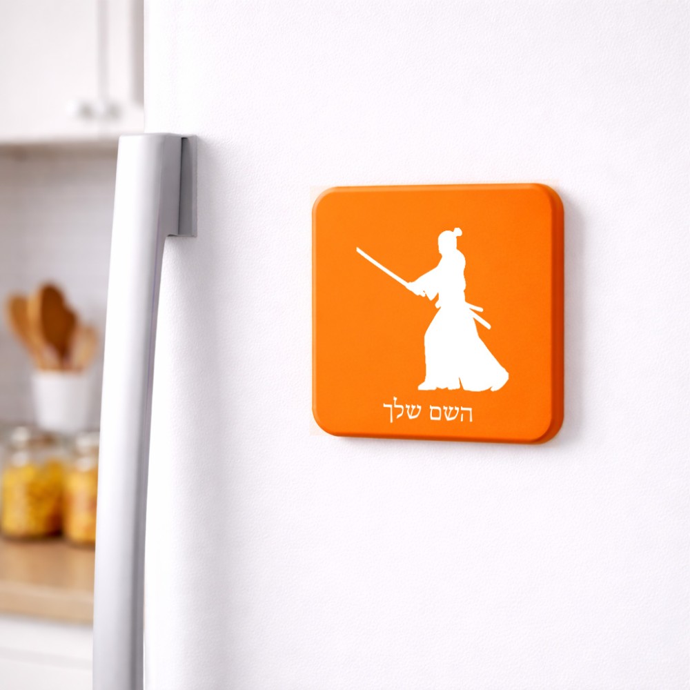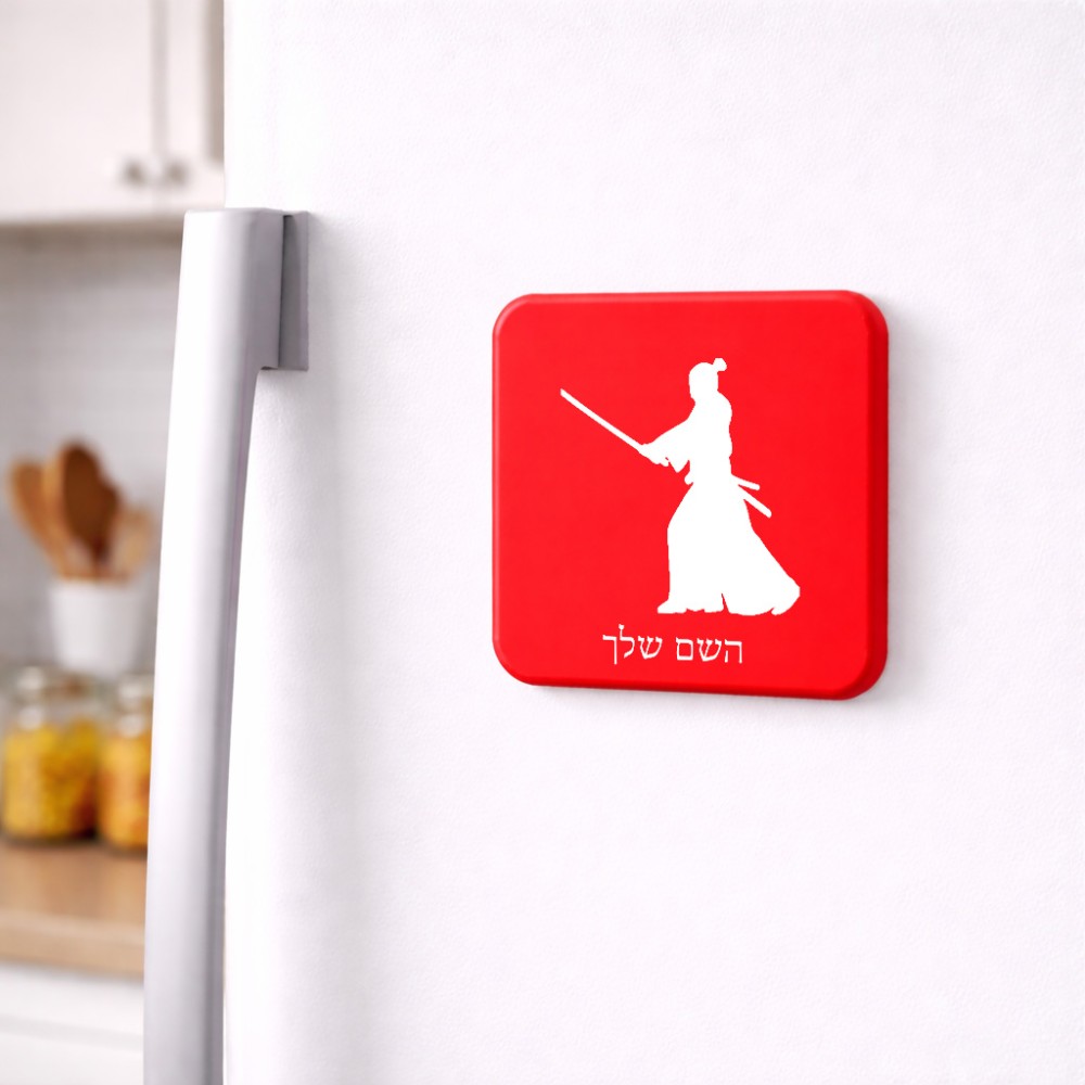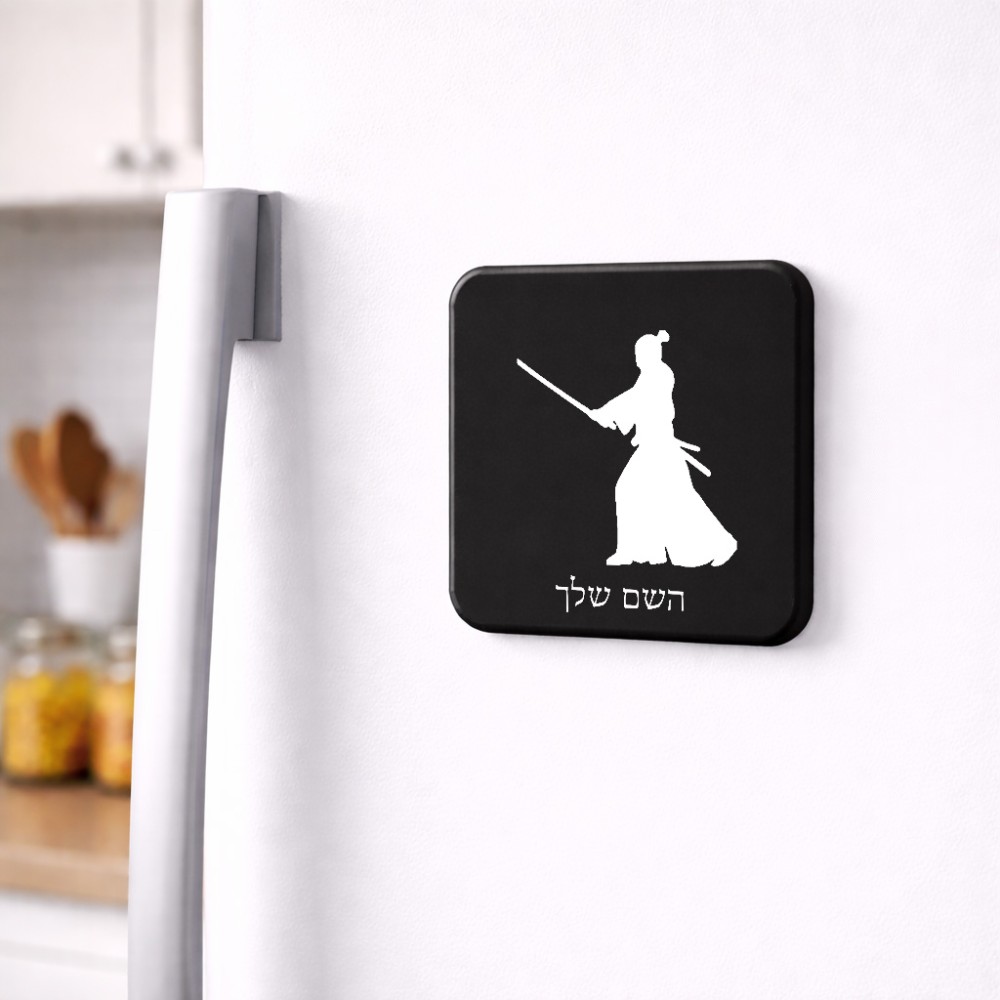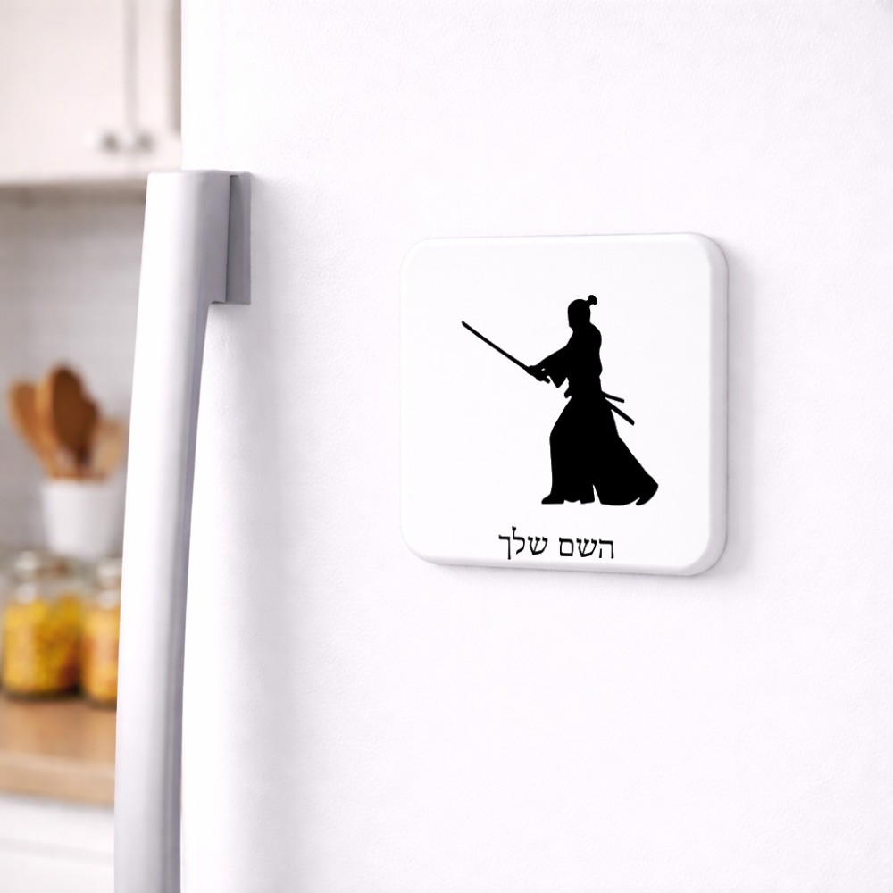 מגנט למקרר בעיצוב אישי עם השם שלך בעיצוב סמוראי גודל המגנט 6.5 × 6.5 ס"מ