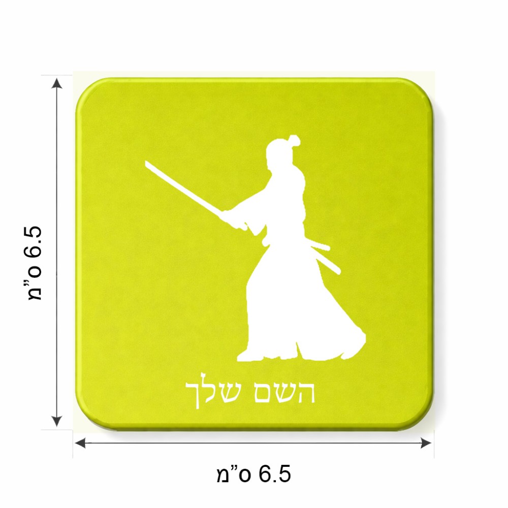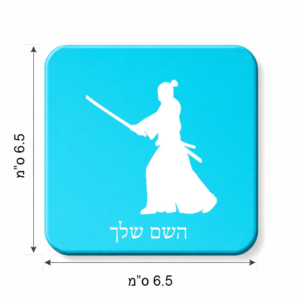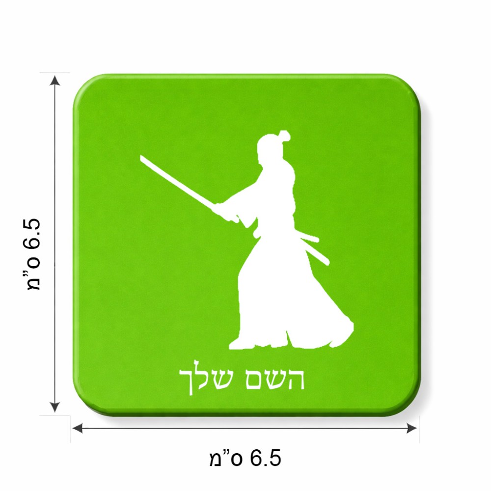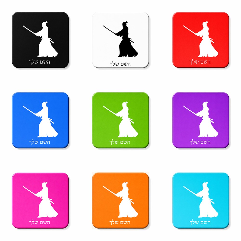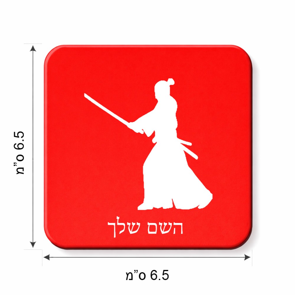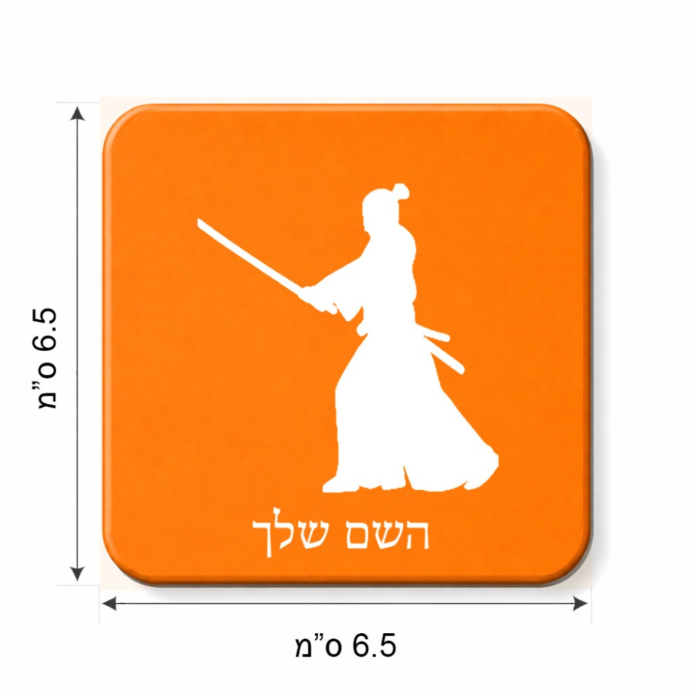 מגנט למקרר בעיצוב אישי עם השם שלך בעיצוב סמוראי גודל המגנט 6.5 × 6.5 ס"מ