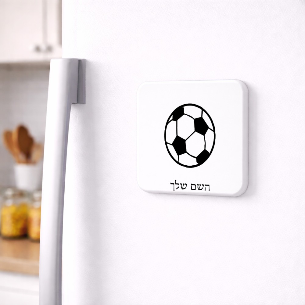 מגנט למקרר בעיצוב אישי עם השם שלך בעיצוב כדורגל כדור כדורגל גודל המגנט 6.5 × 6.5 ס"מ. את השם המבוקש ניתן לציין בהזמנה, אם לא צויין אנחנו ניצור קשר לבירור.