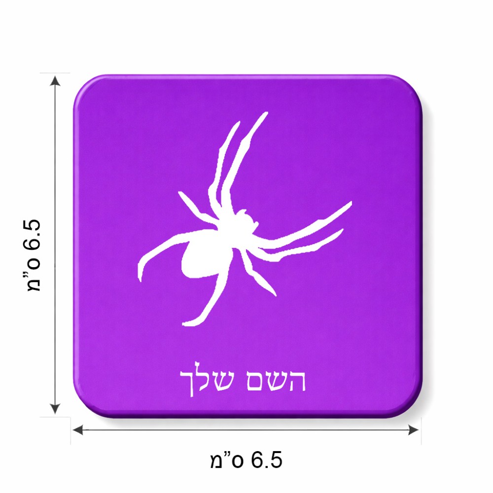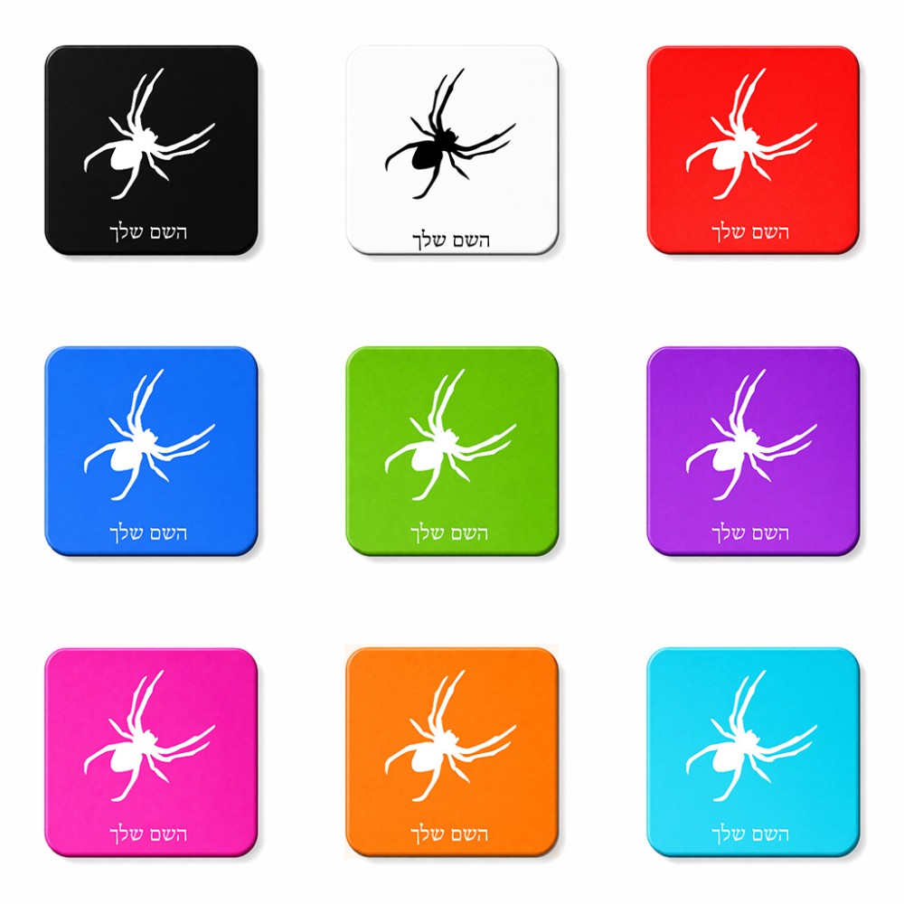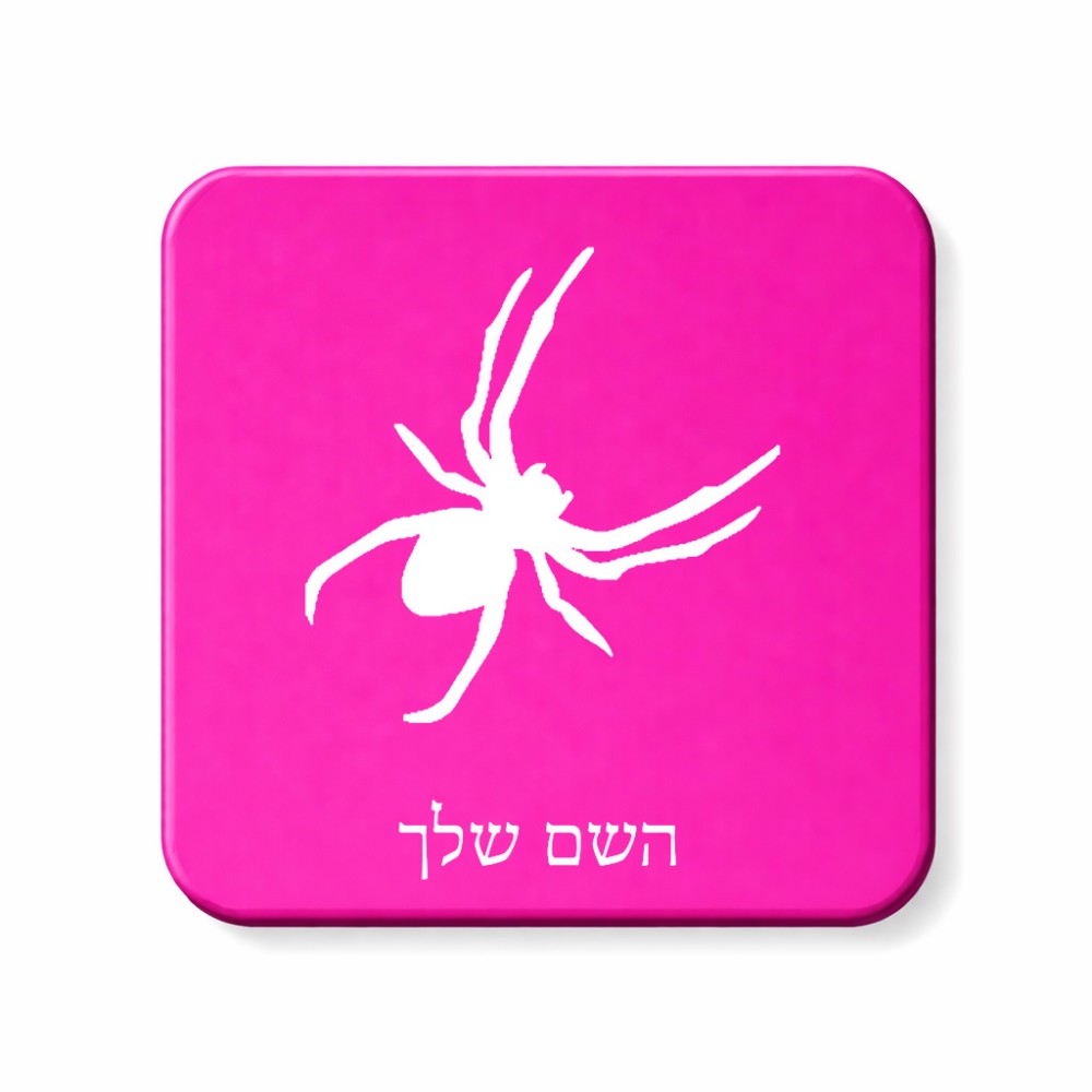 מגנט למקרר בעיצוב אישי עם השם שלך בעיצוב עכביש גודל המגנט 6.5 × 6.5 ס"מ. את השם המבוקש ניתן לציין בהזמנה, אם לא צויין אנחנו ניצור קשר לבירור.