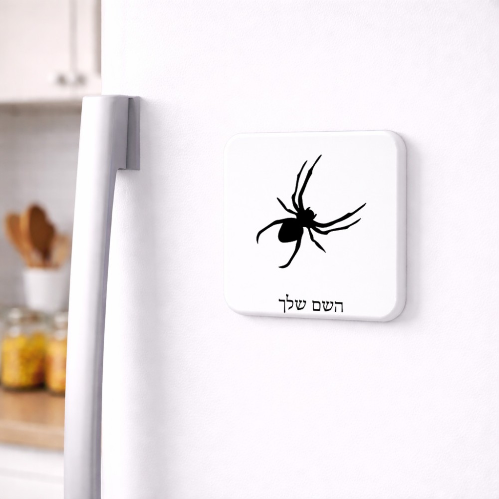 מגנט למקרר בעיצוב אישי עם השם שלך בעיצוב עכביש גודל המגנט 6.5 × 6.5 ס"מ