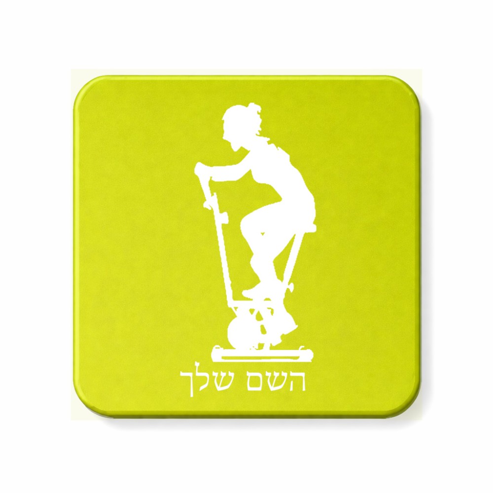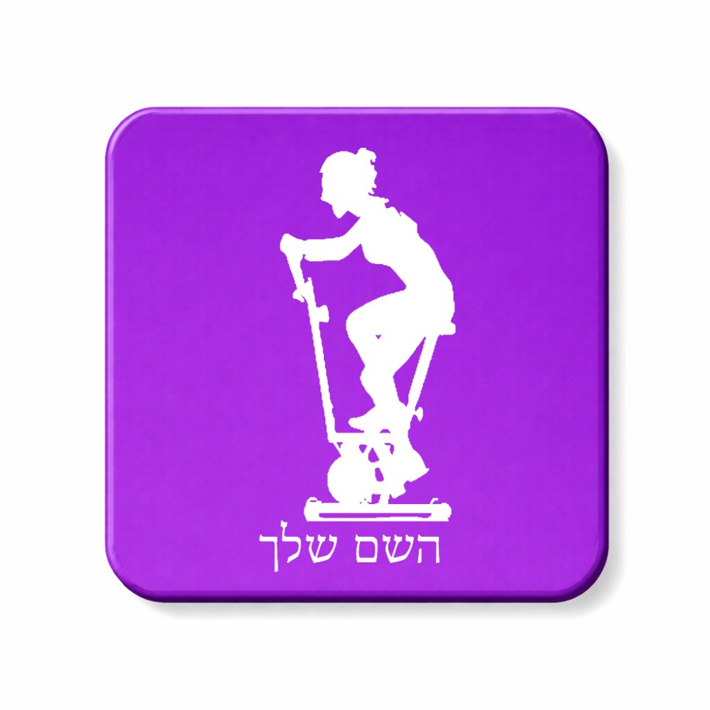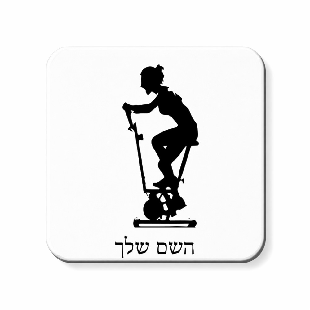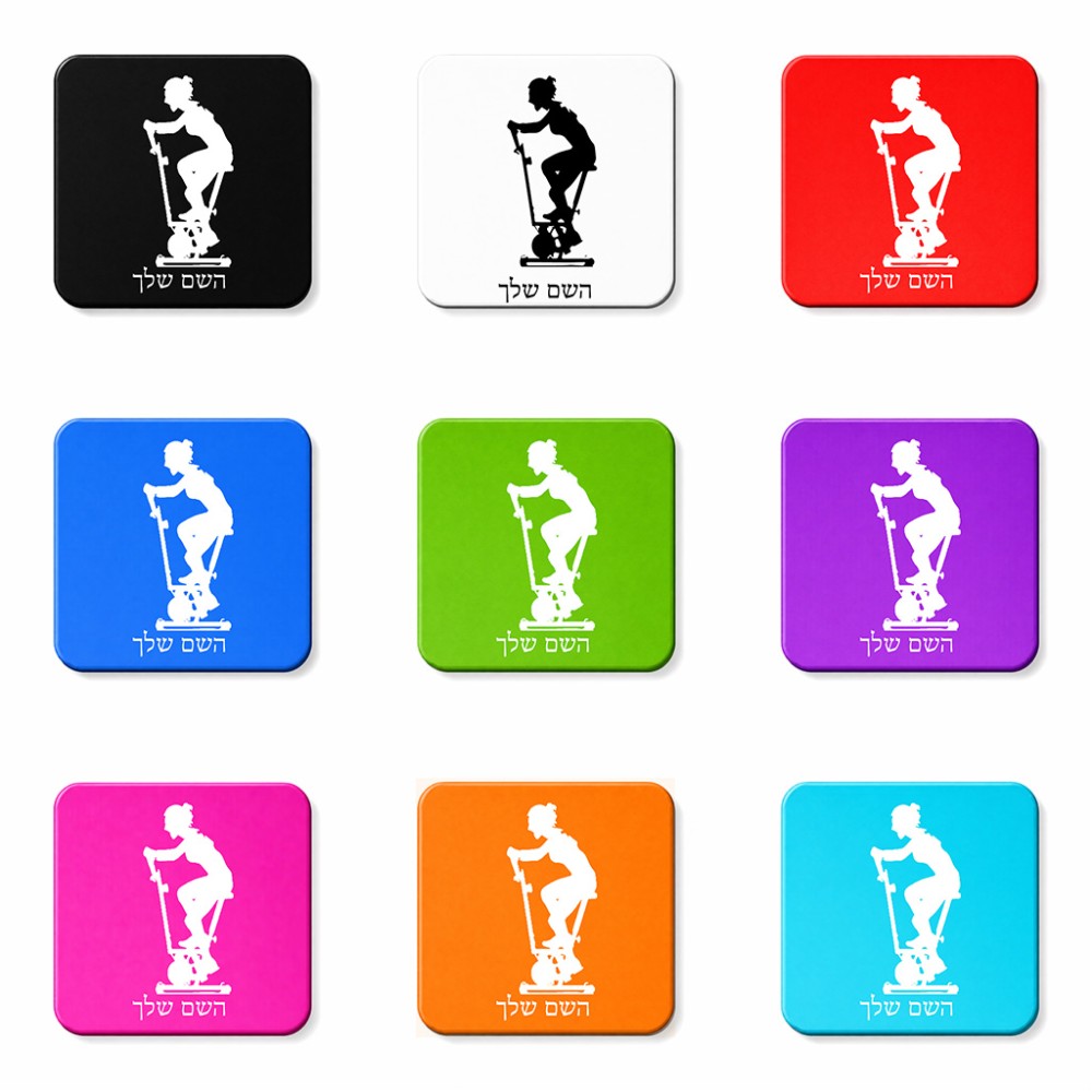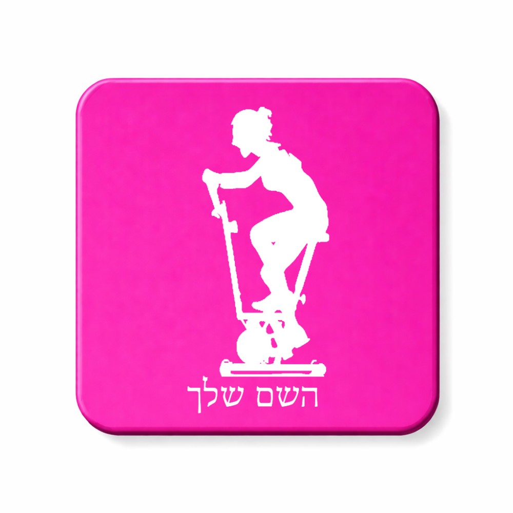 מגנט למקרר בעיצוב אישי עם השם שלך בעיצוב אימון ספינינג - אישה גודל המגנט 6.5 × 6.5 ס"מ. את השם המבוקש ניתן לציין בהזמנה, אם לא צויין אנחנו ניצור קשר לבירור.