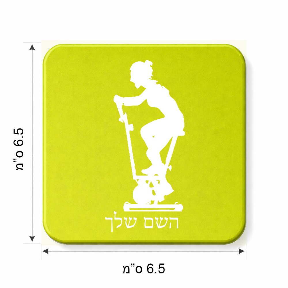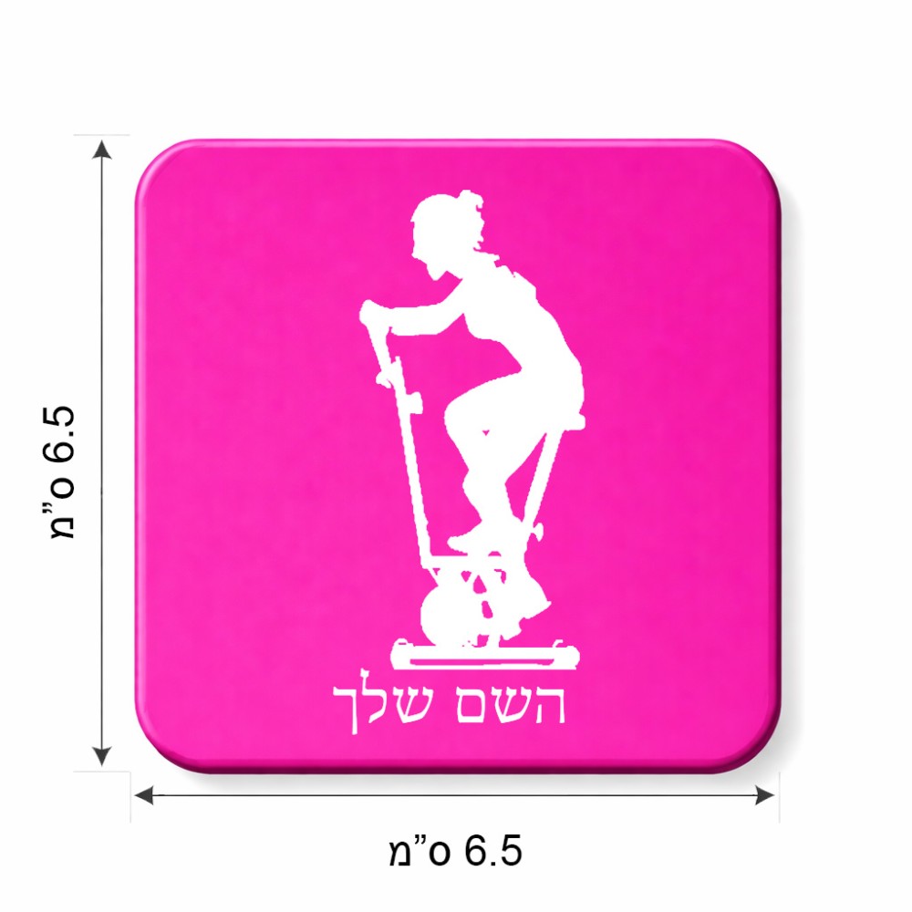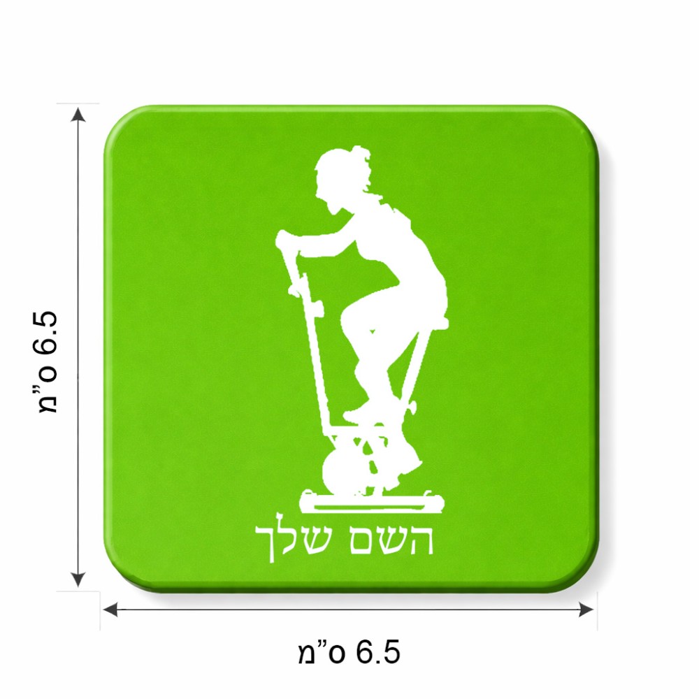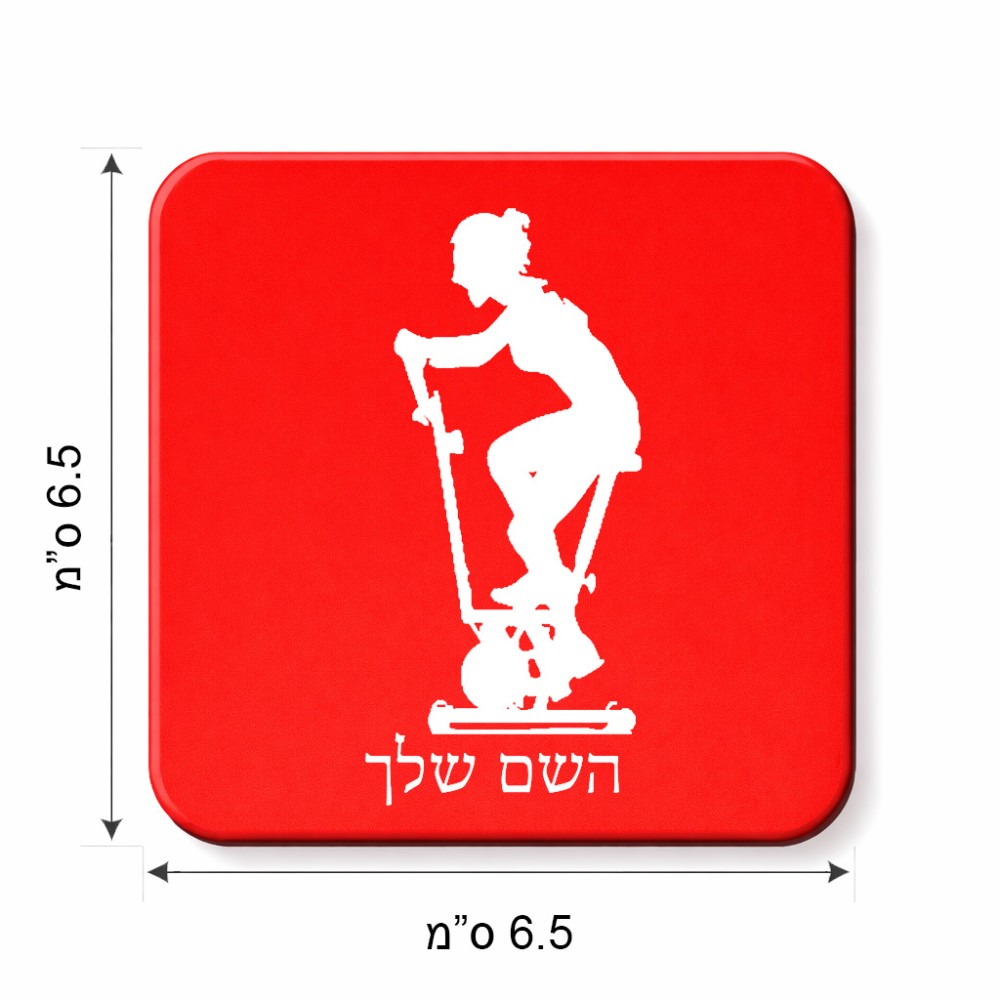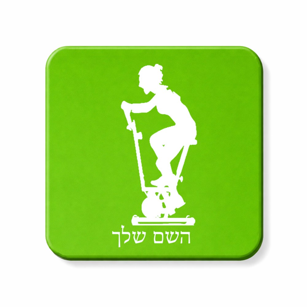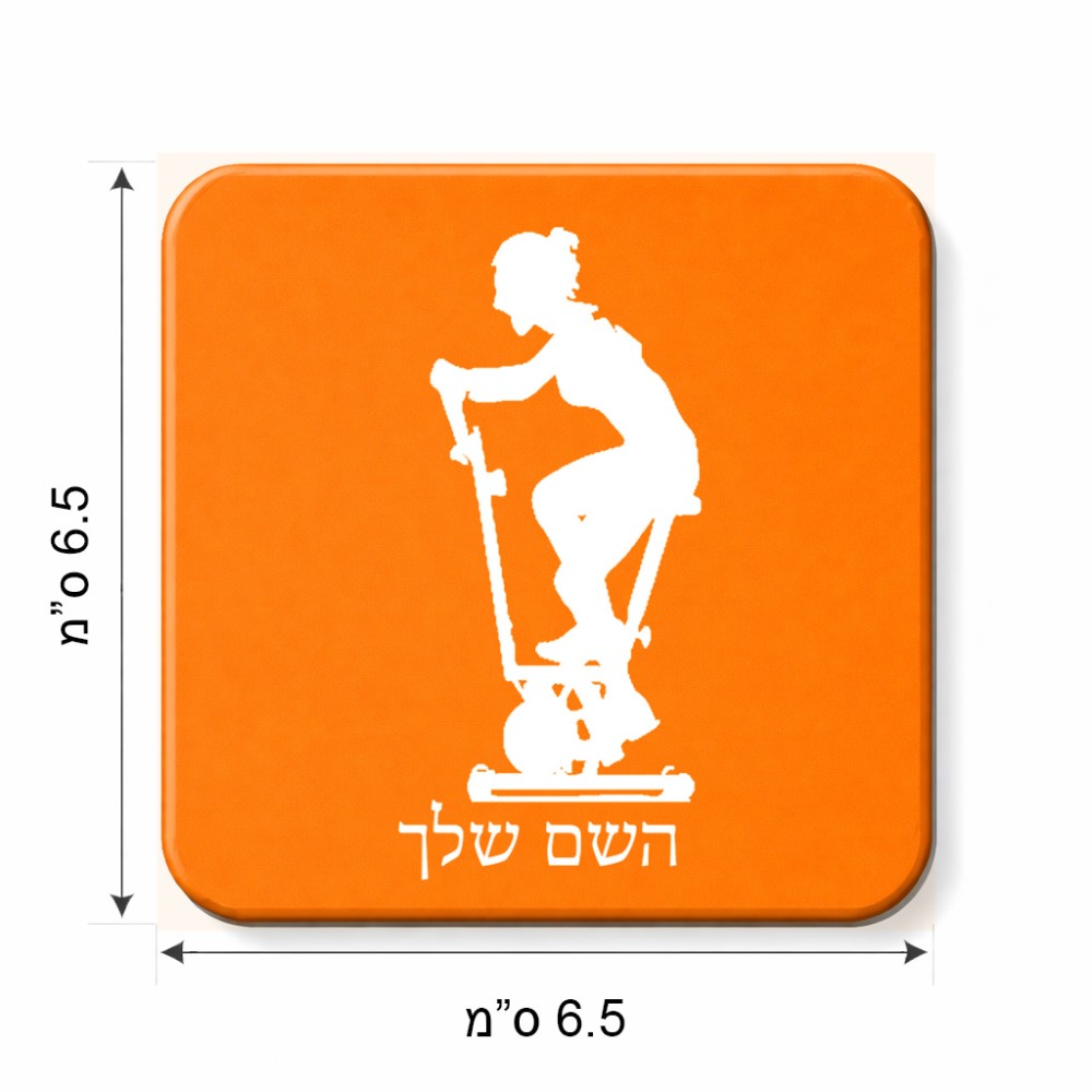 מגנט למקרר בעיצוב אישי עם השם שלך בעיצוב אימון ספינינג - אישה גודל המגנט 6.5 × 6.5 ס"מ. את השם המבוקש ניתן לציין בהזמנה, אם לא צויין אנחנו ניצור קשר לבירור.