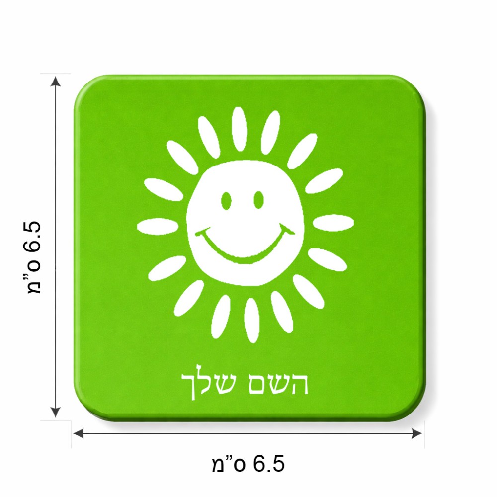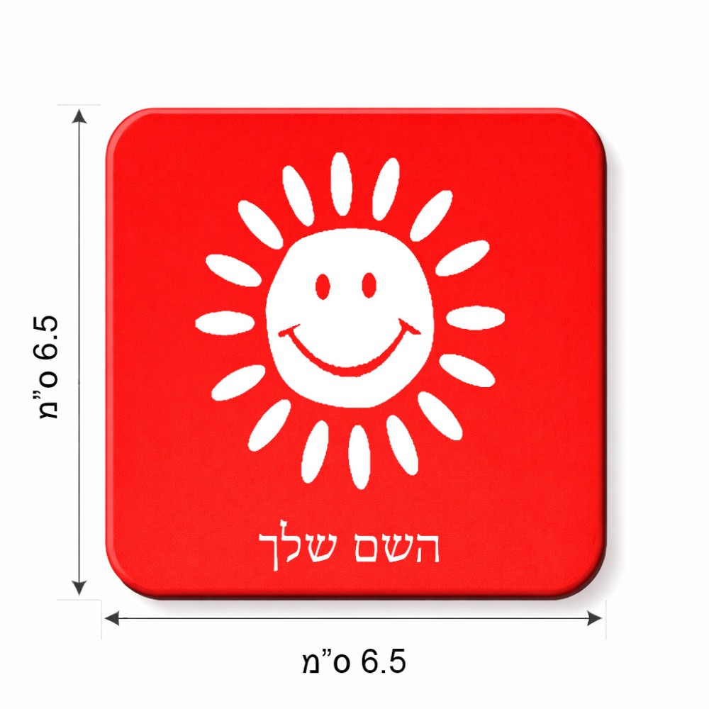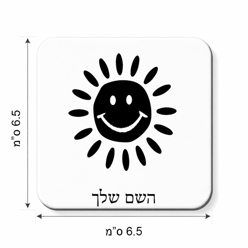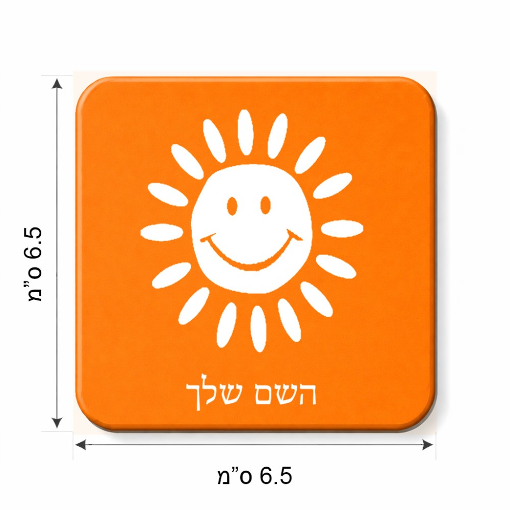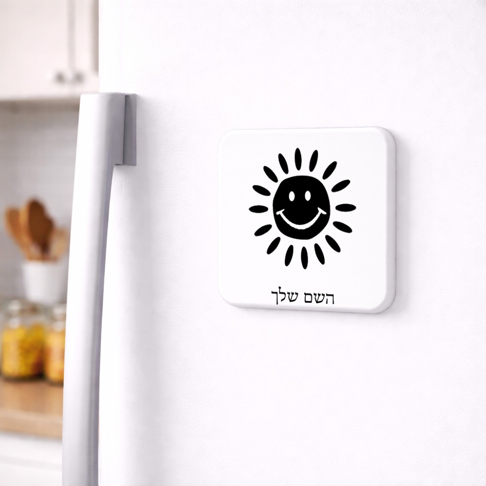 מגנט למקרר בעיצוב אישי עם השם שלך בעיצוב שמש גודל המגנט 6.5 × 6.5 ס"מ. את השם המבוקש ניתן לציין בהזמנה, אם לא צויין אנחנו ניצור קשר לבירור.