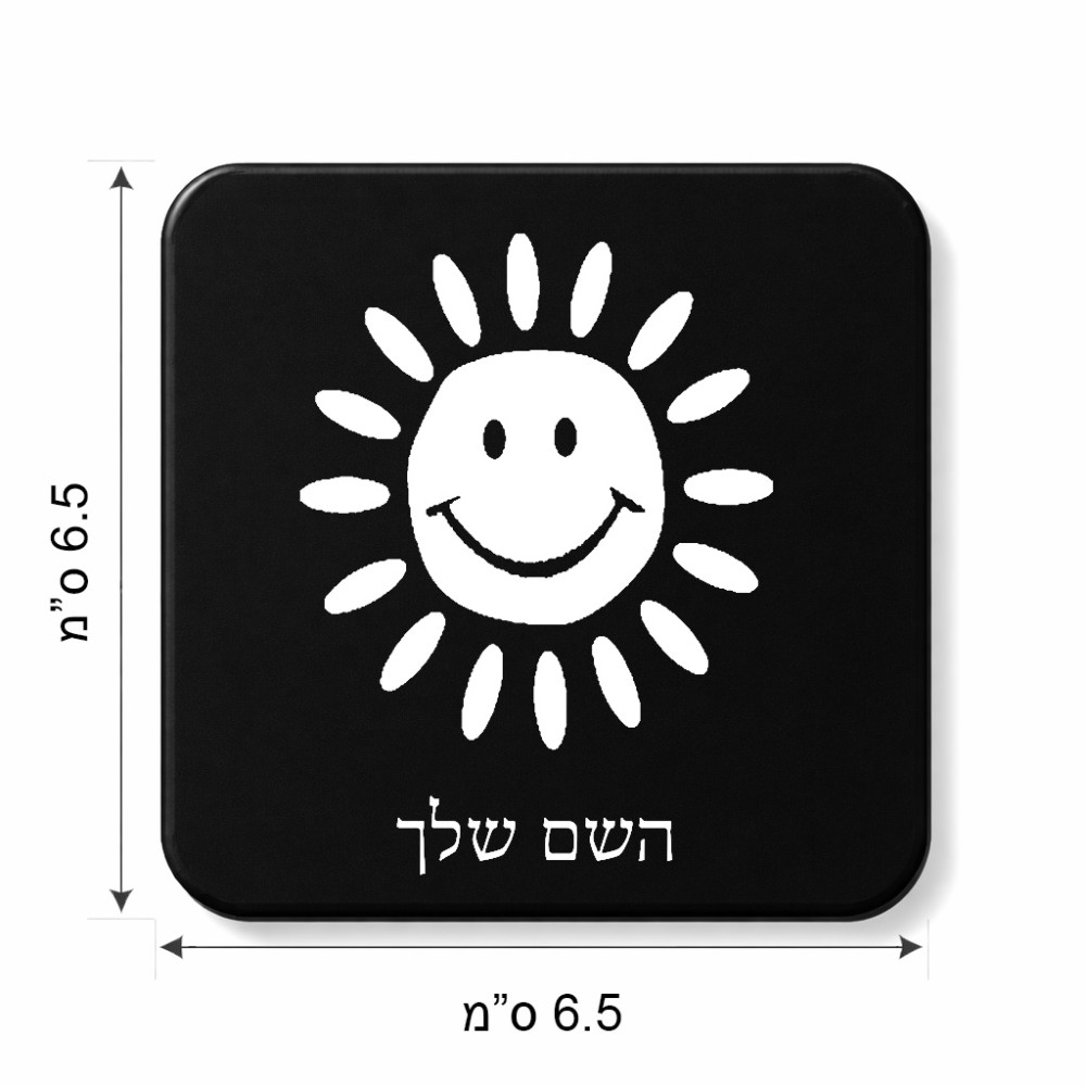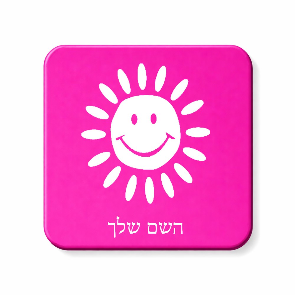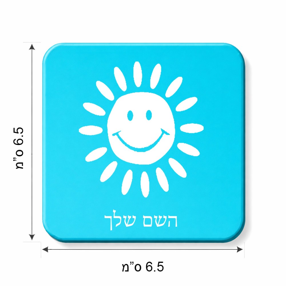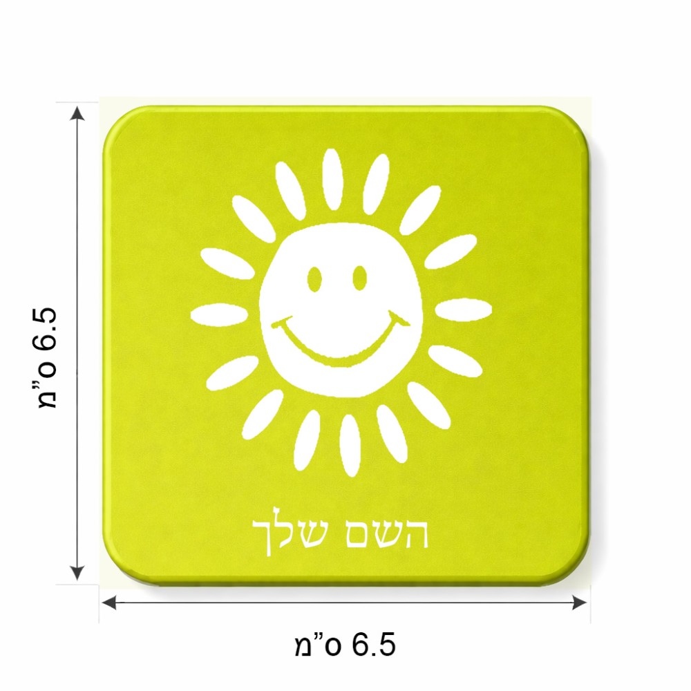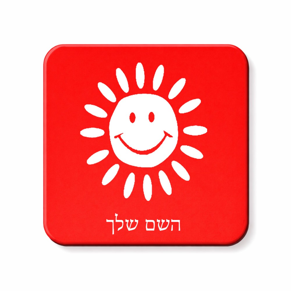 מגנט למקרר בעיצוב אישי עם השם שלך בעיצוב שמש גודל המגנט 6.5 × 6.5 ס"מ. את השם המבוקש ניתן לציין בהזמנה, אם לא צויין אנחנו ניצור קשר לבירור.