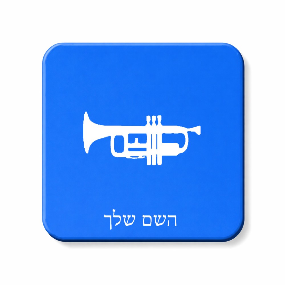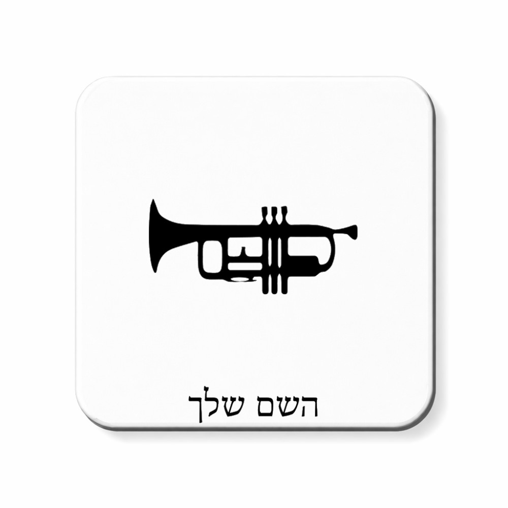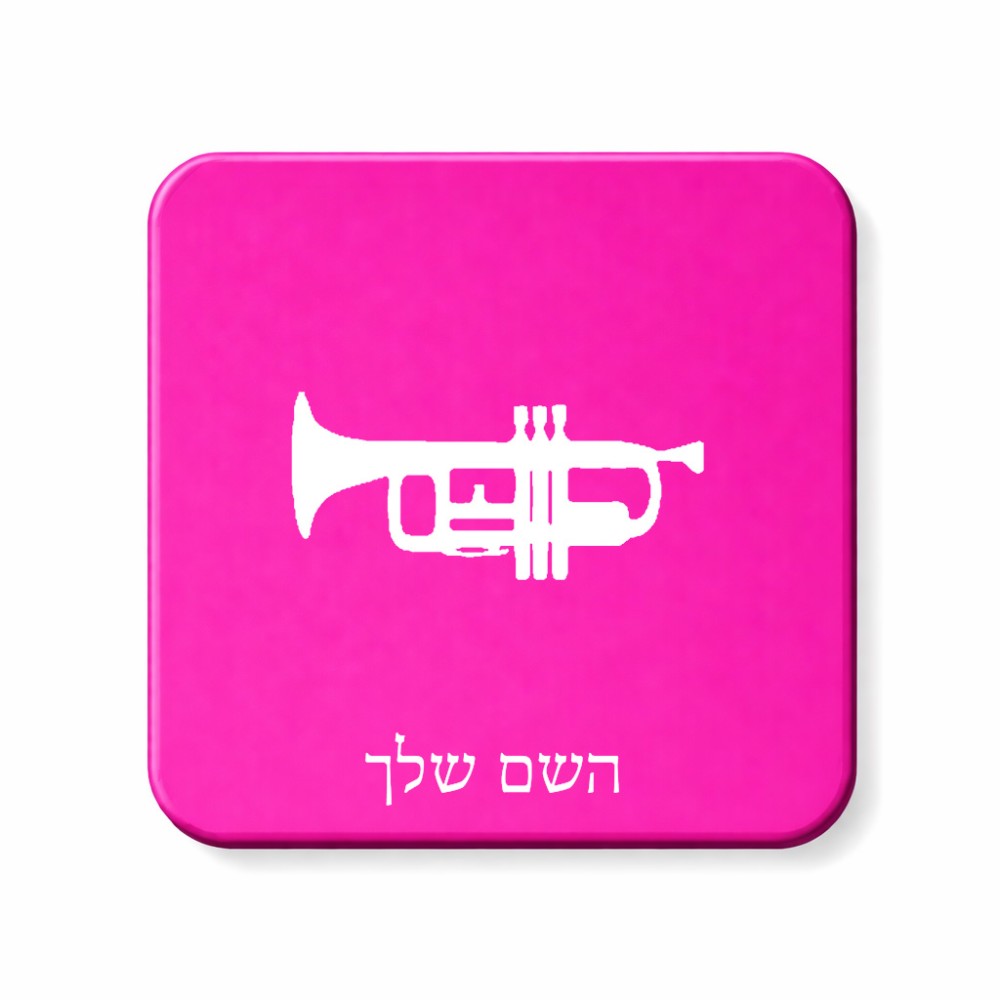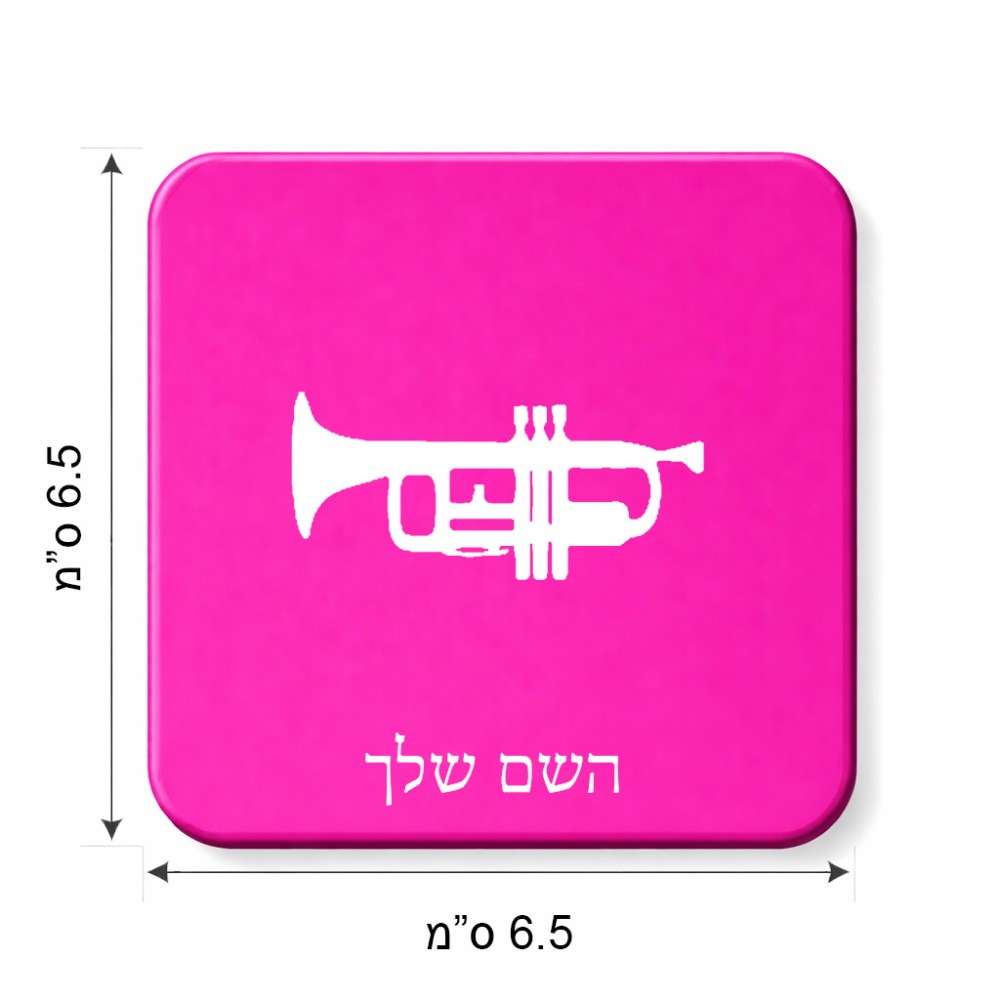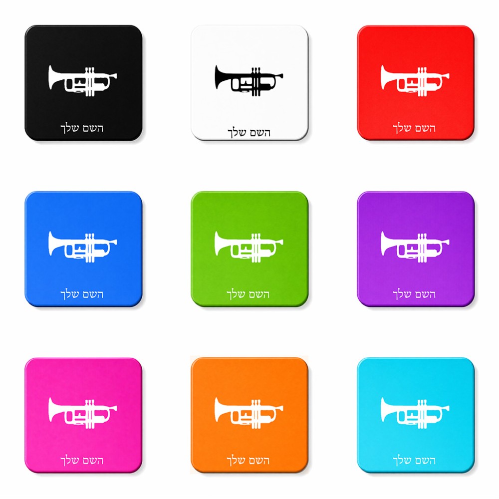 מגנט למקרר בעיצוב אישי עם השם שלך בעיצוב חצוצרה גודל המגנט 6.5 × 6.5 ס"מ. את השם המבוקש ניתן לציין בהזמנה, אם לא צויין אנחנו ניצור קשר לבירור.