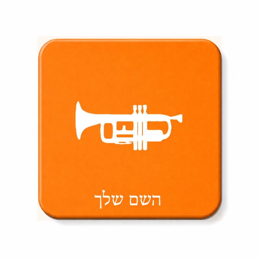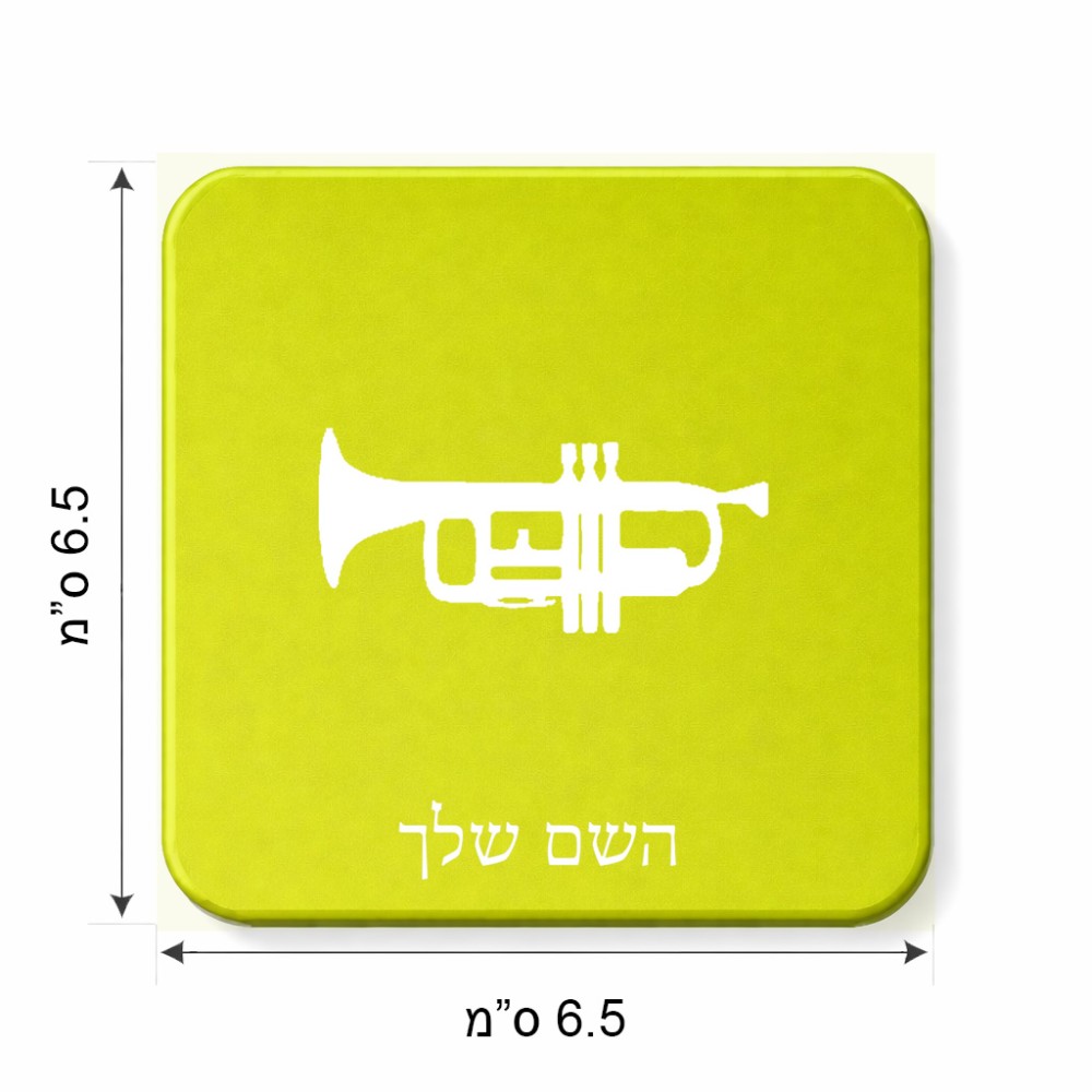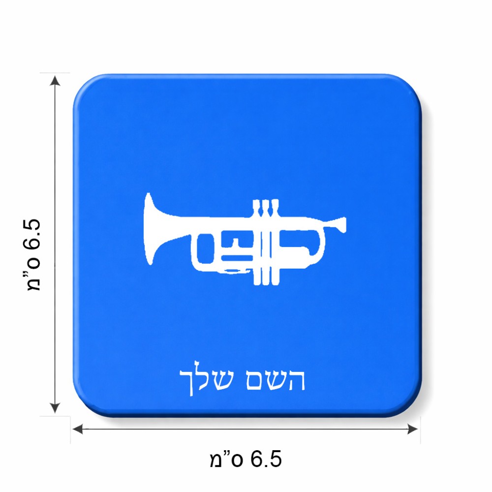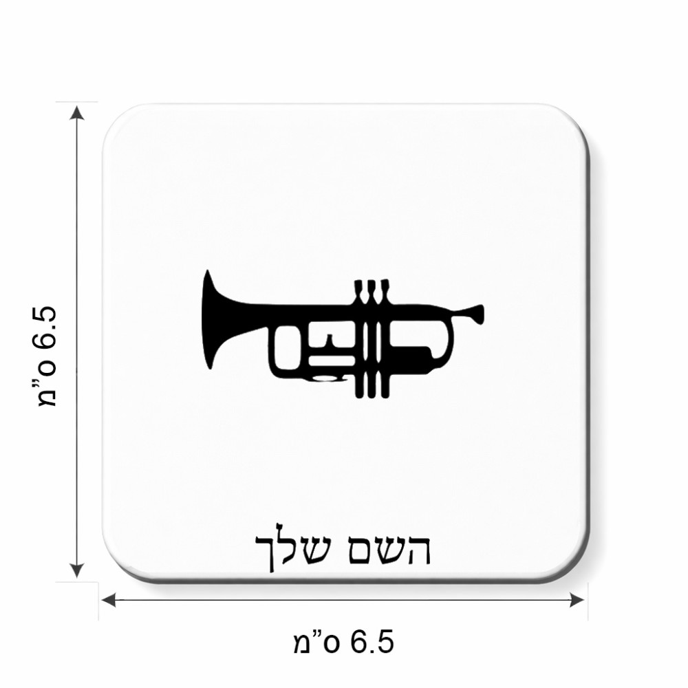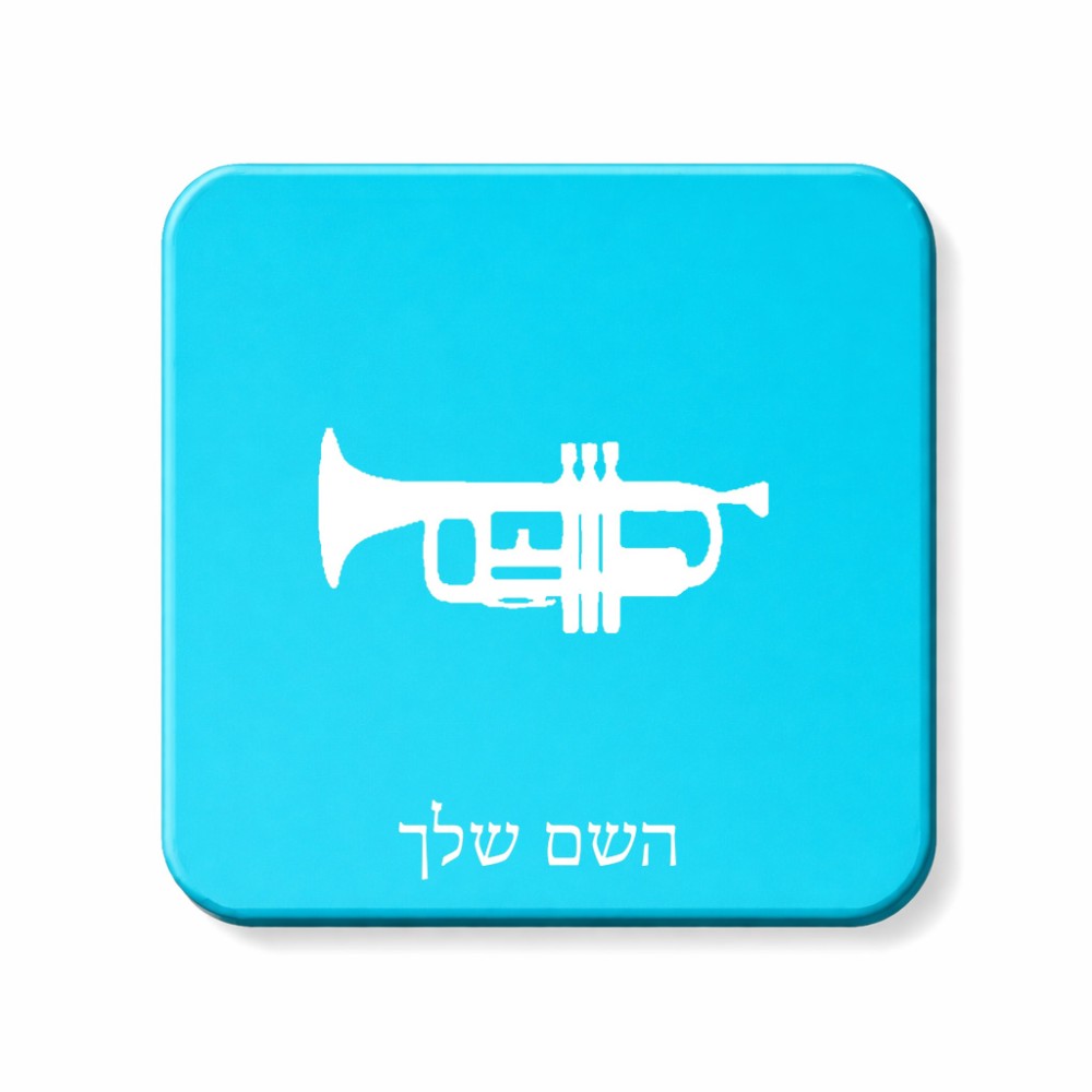 מגנט למקרר בעיצוב אישי עם השם שלך בעיצוב חצוצרה גודל המגנט 6.5 × 6.5 ס"מ. את השם המבוקש ניתן לציין בהזמנה, אם לא צויין אנחנו ניצור קשר לבירור.