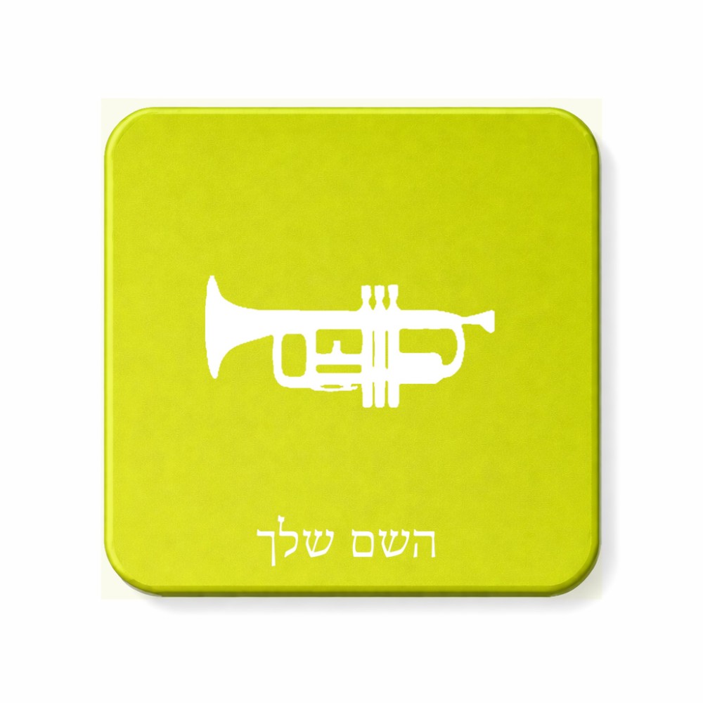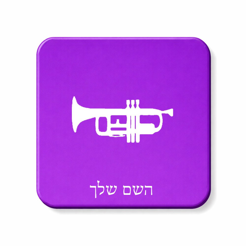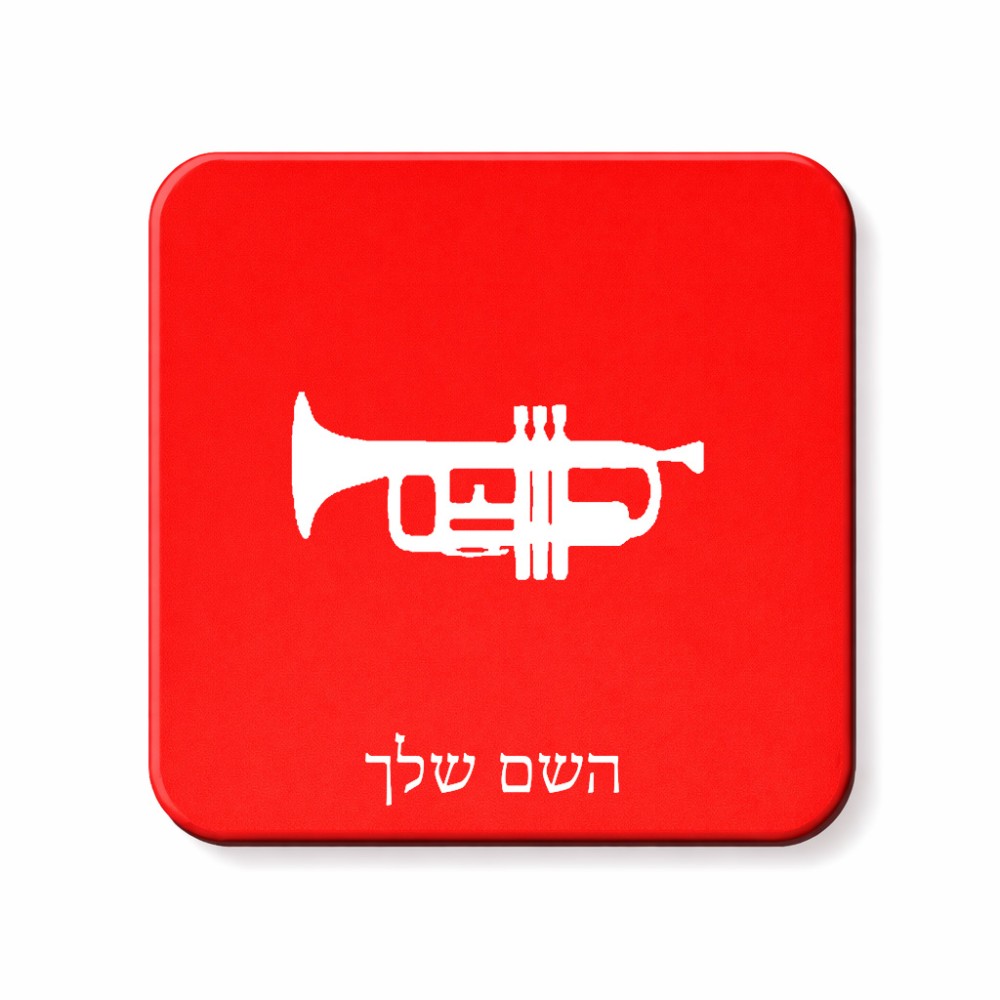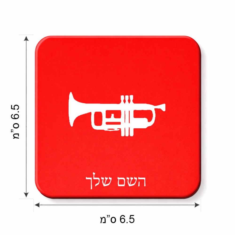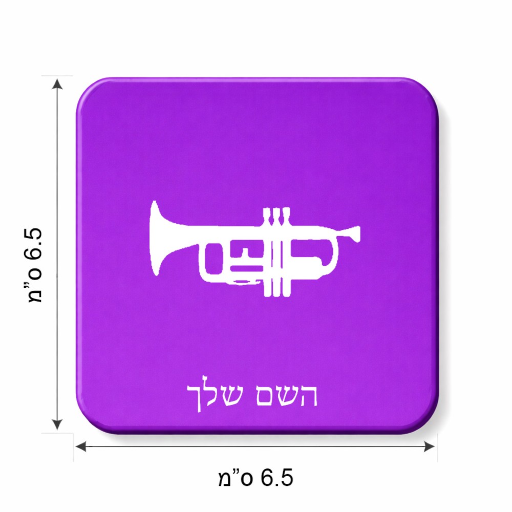 מגנט למקרר בעיצוב אישי עם השם שלך בעיצוב חצוצרה גודל המגנט 6.5 × 6.5 ס"מ. את השם המבוקש ניתן לציין בהזמנה, אם לא צויין אנחנו ניצור קשר לבירור.