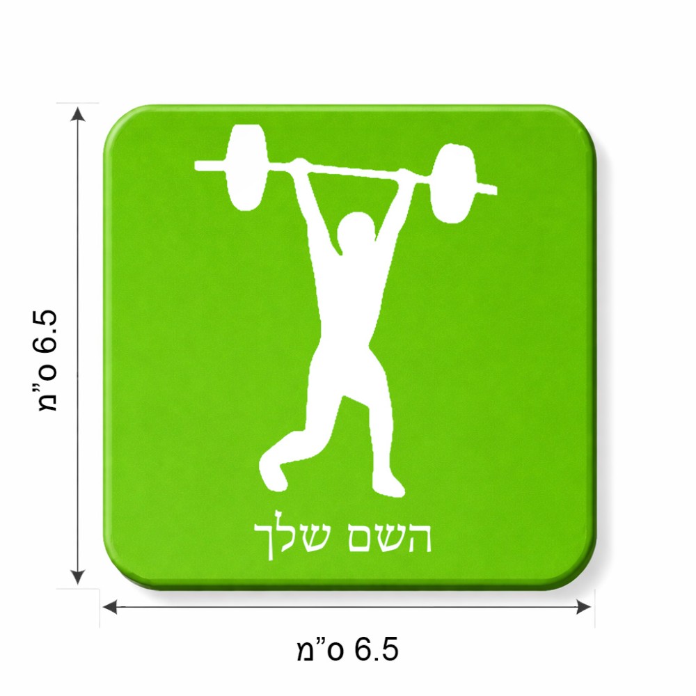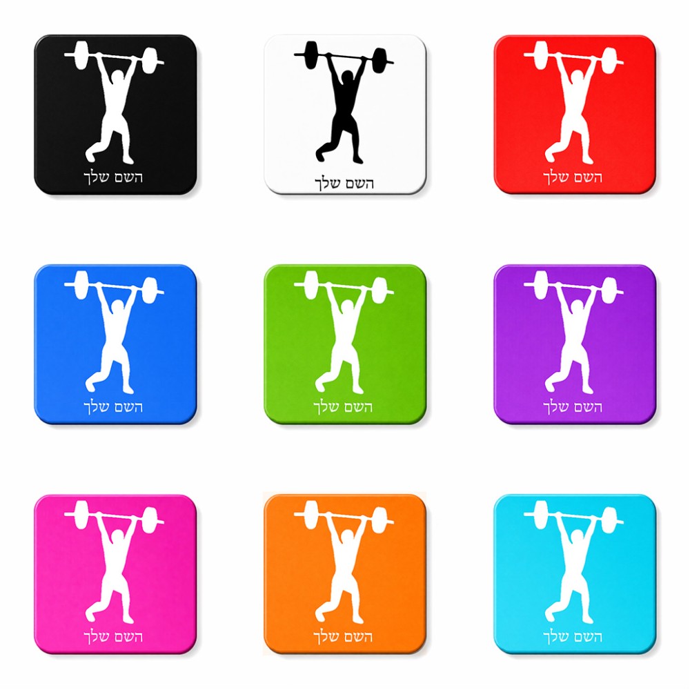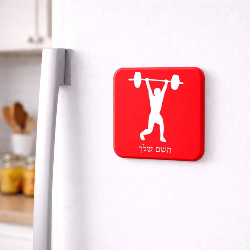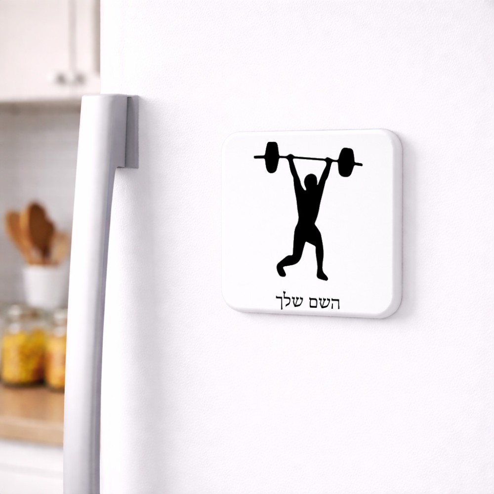 מגנט למקרר בעיצוב אישי עם השם שלך בעיצוב הרמת משקולות גודל המגנט 6.5 × 6.5 ס"מ. את השם המבוקש ניתן לציין בהזמנה, אם לא צויין אנחנו ניצור קשר לבירור.