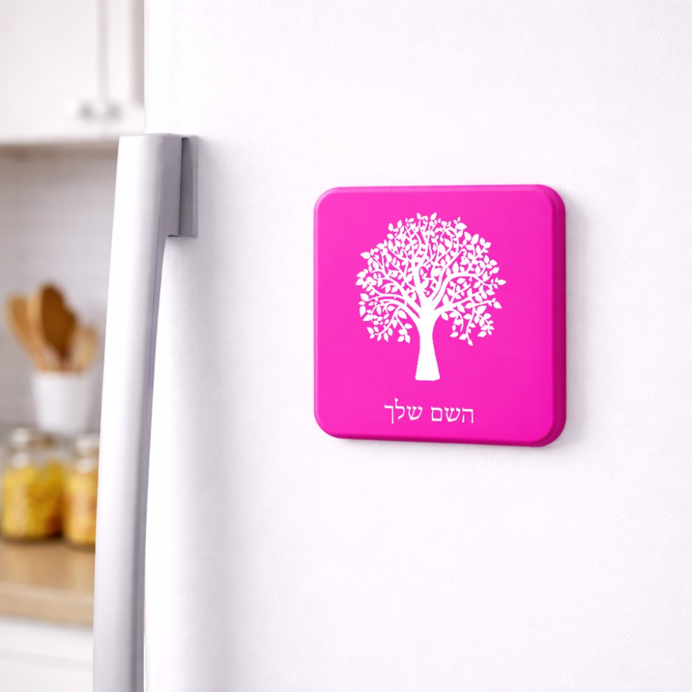 מגנט למקרר בעיצוב אישי עם השם שלך בעיצוב עץ גודל המגנט 6.5 × 6.5 ס"מ. את השם המבוקש ניתן לציין בהזמנה, אם לא צויין אנחנו ניצור קשר לבירור.