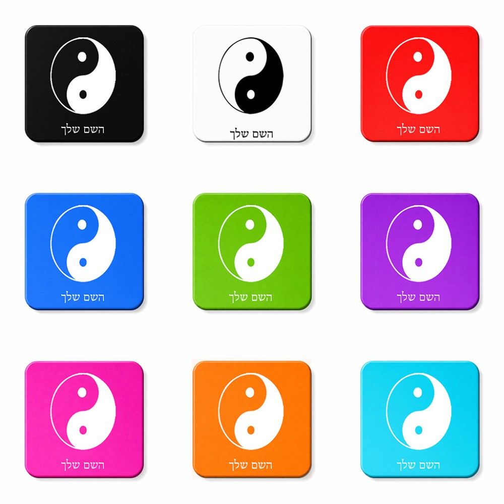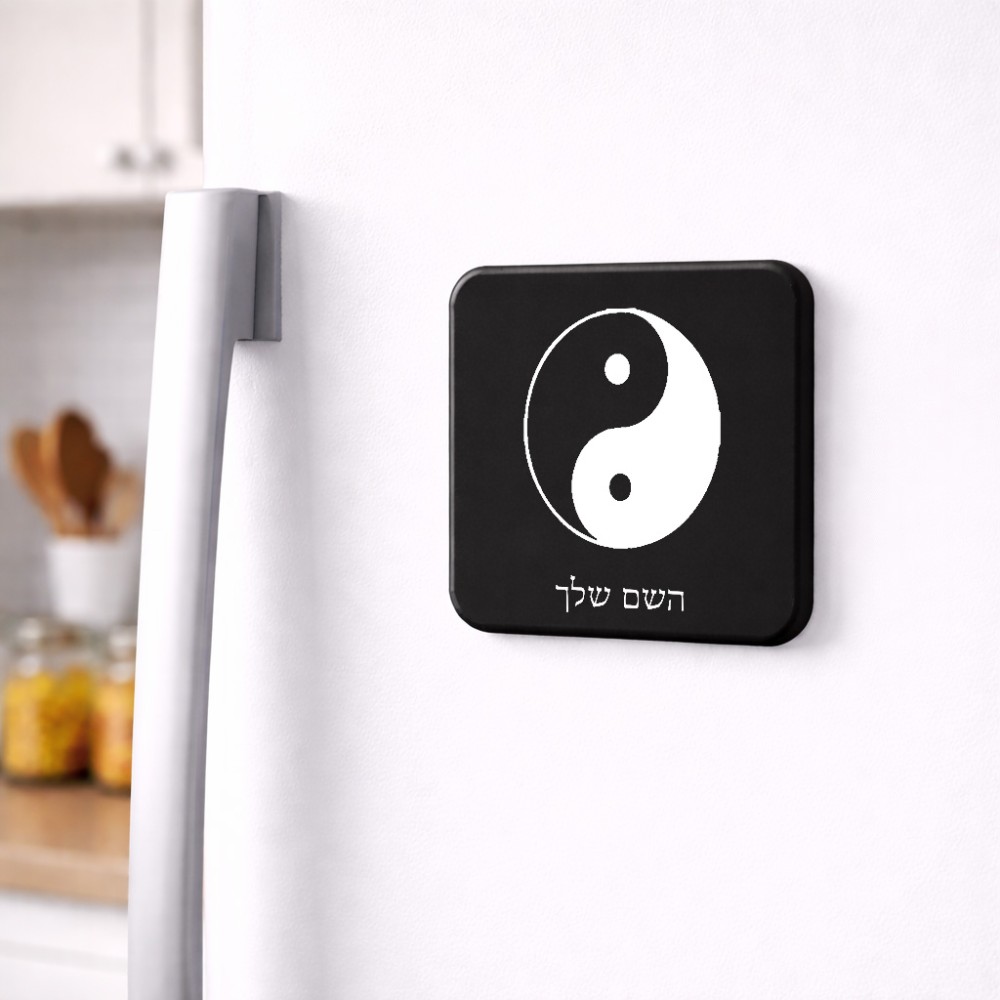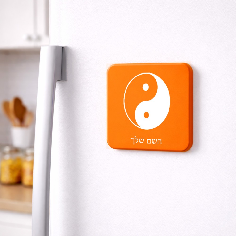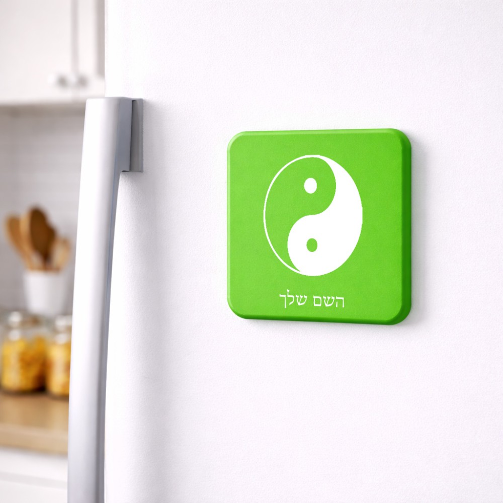 מגנט למקרר בעיצוב אישי עם השם שלך בעיצוב סמל יינג יאנג גודל המגנט 6.5 × 6.5 ס"מ. את השם המבוקש ניתן לציין בהזמנה, אם לא צויין אנחנו ניצור קשר לבירור.