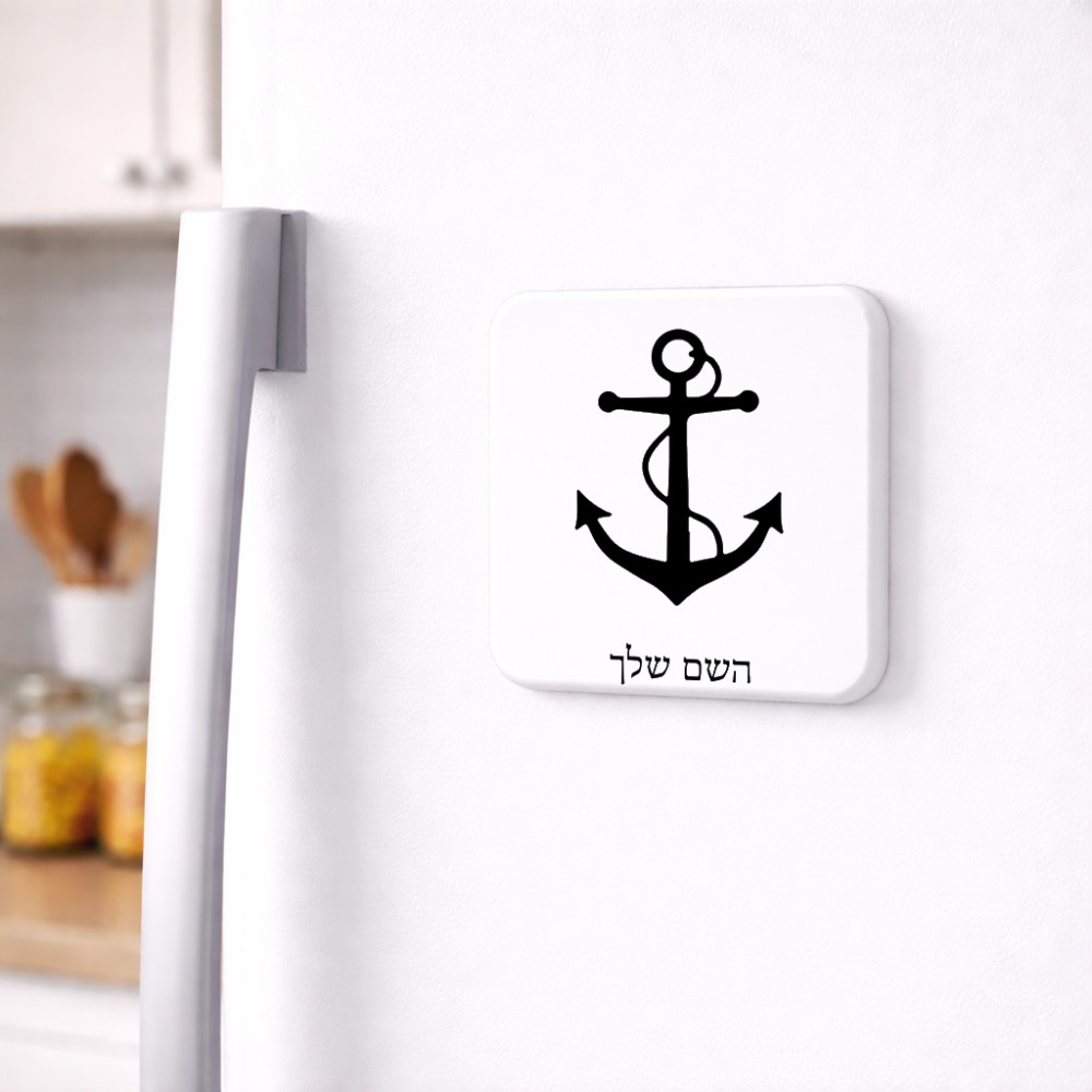 מגנט למקרר בעיצוב אישי עם השם שלך בעיצוב לעגן גודל המגנט 6.5 × 6.5 ס"מ. את השם המבוקש ניתן לציין בהזמנה, אם לא צויין אנחנו ניצור קשר לבירור.