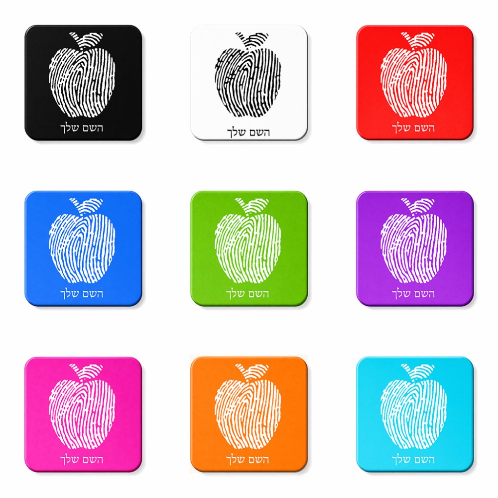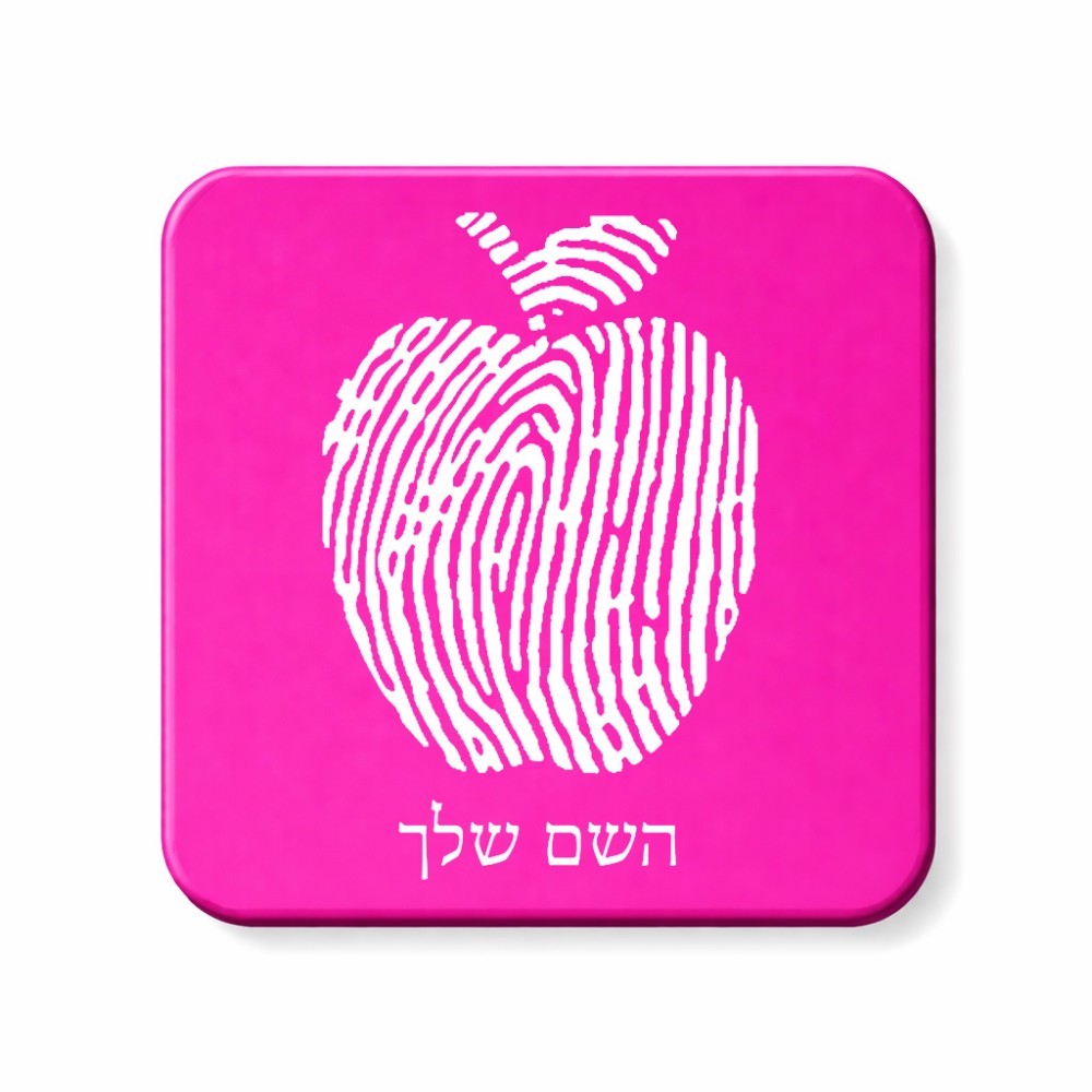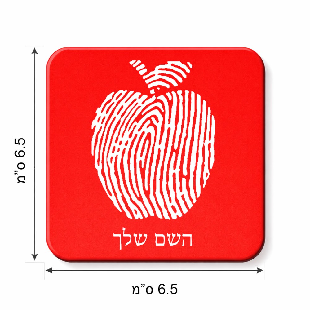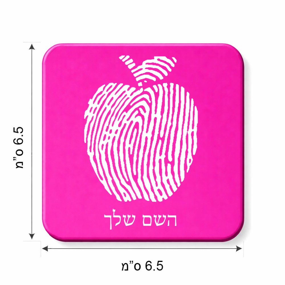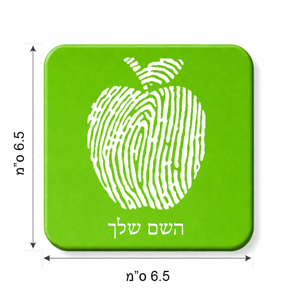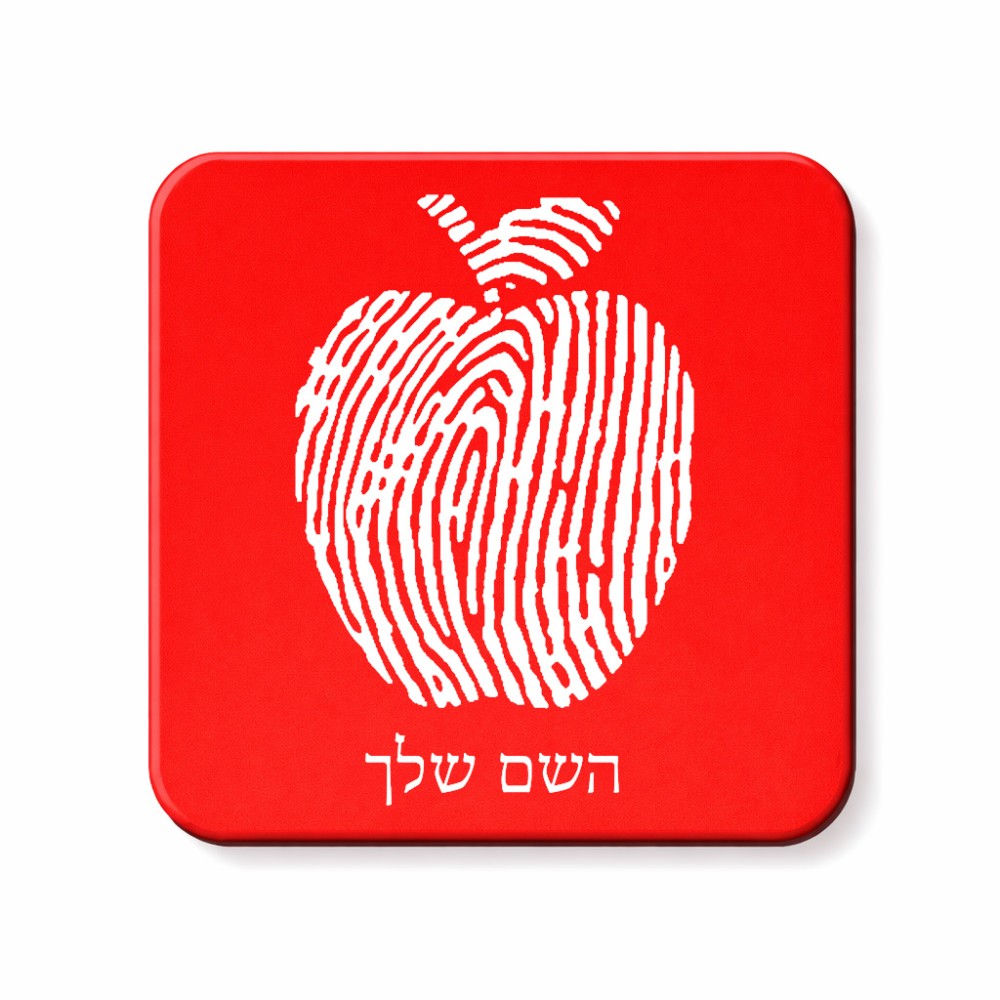 מגנט למקרר בעיצוב אישי עם השם שלך בעיצוב הדפס תפוח גודל המגנט 6.5 × 6.5 ס"מ. את השם המבוקש ניתן לציין בהזמנה, אם לא צויין אנחנו ניצור קשר לבירור.