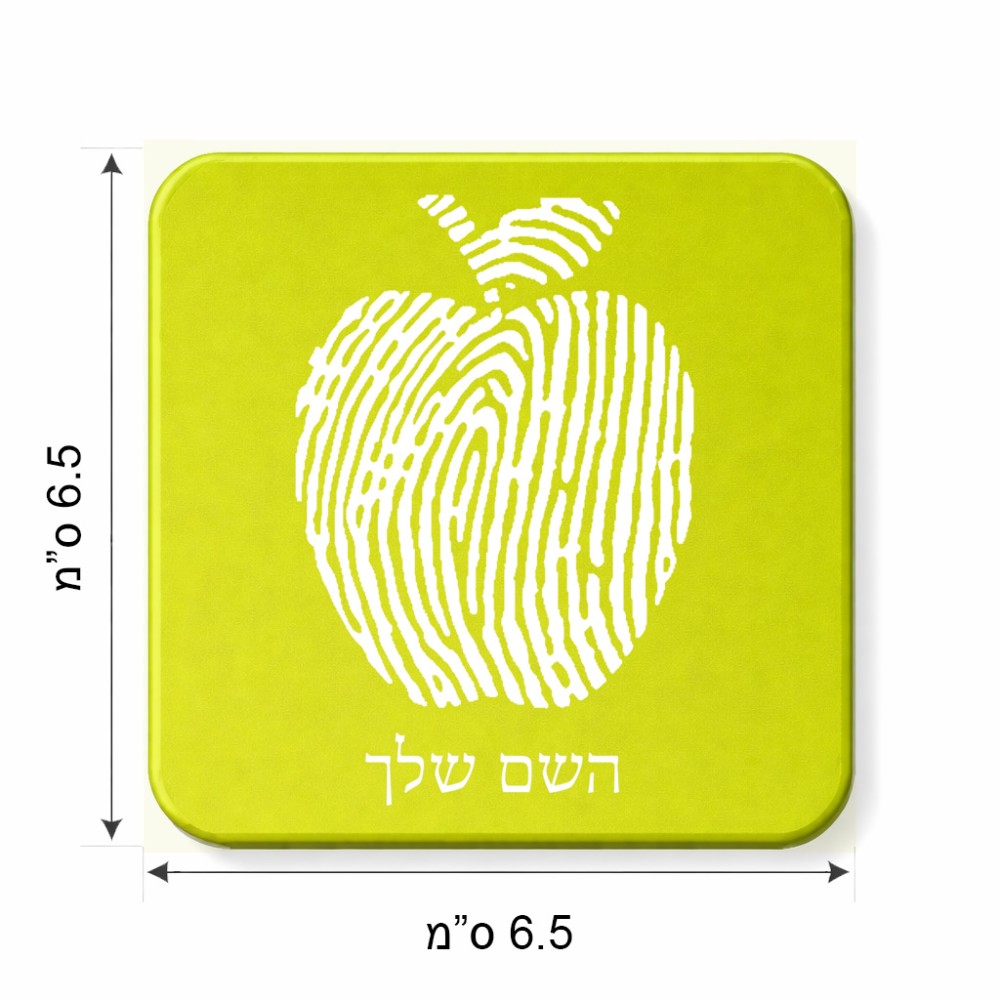 מגנט למקרר בעיצוב אישי עם השם שלך בעיצוב הדפס תפוח גודל המגנט 6.5 × 6.5 ס"מ