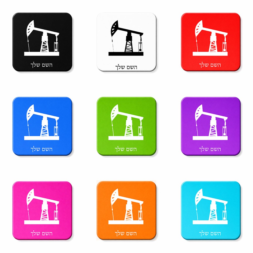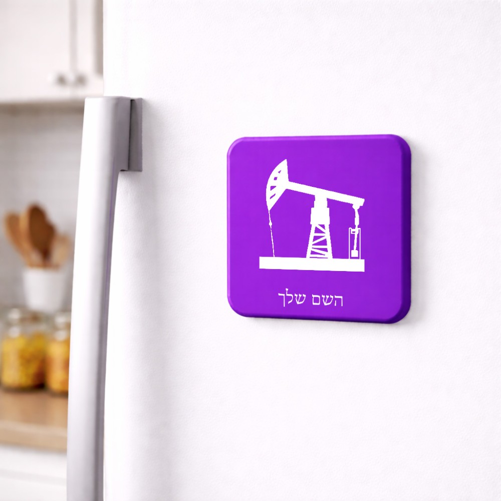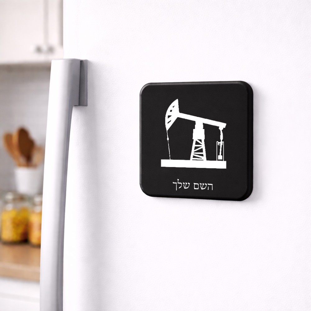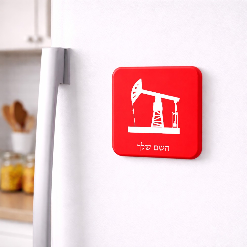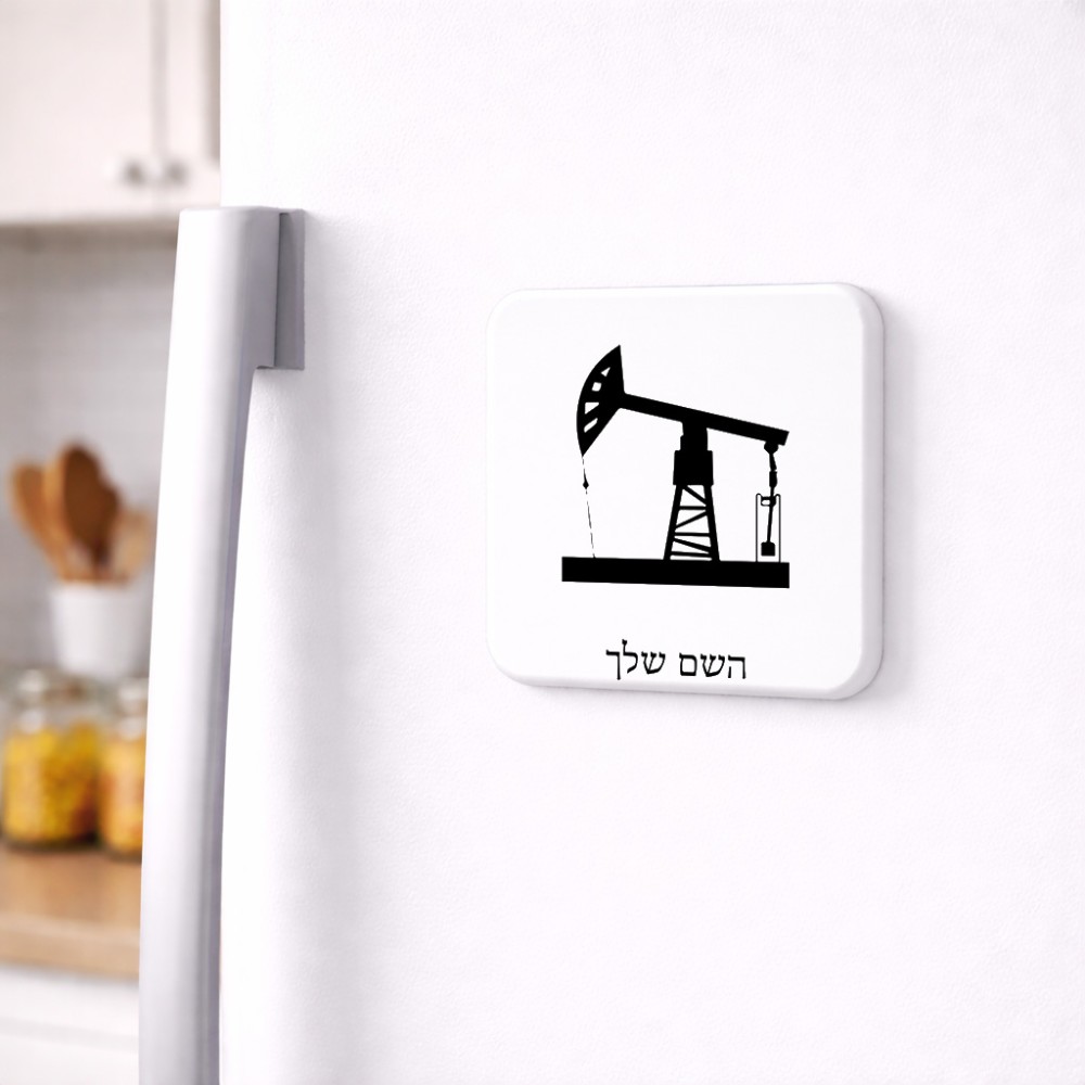 מגנט למקרר בעיצוב אישי עם השם שלך בעיצוב באר נפט גודל המגנט 6.5 × 6.5 ס"מ. את השם המבוקש ניתן לציין בהזמנה, אם לא צויין אנחנו ניצור קשר לבירור.