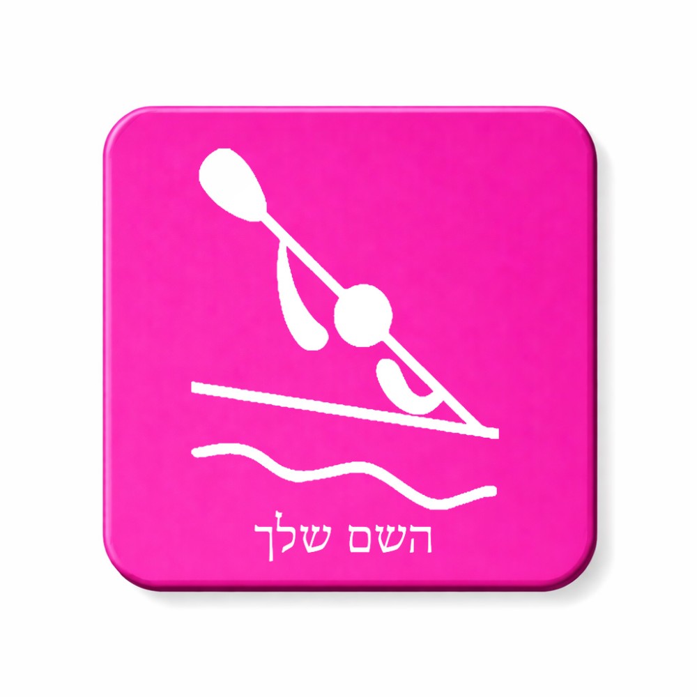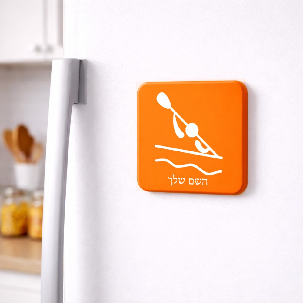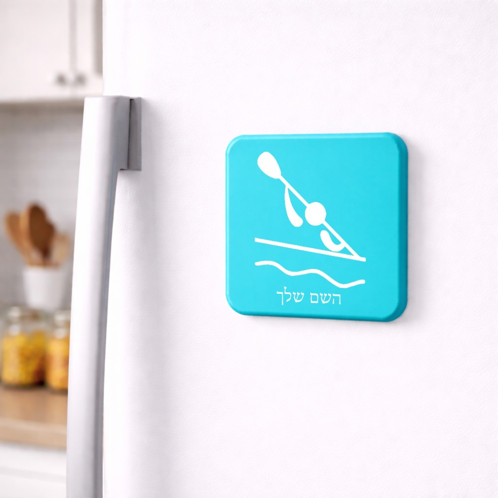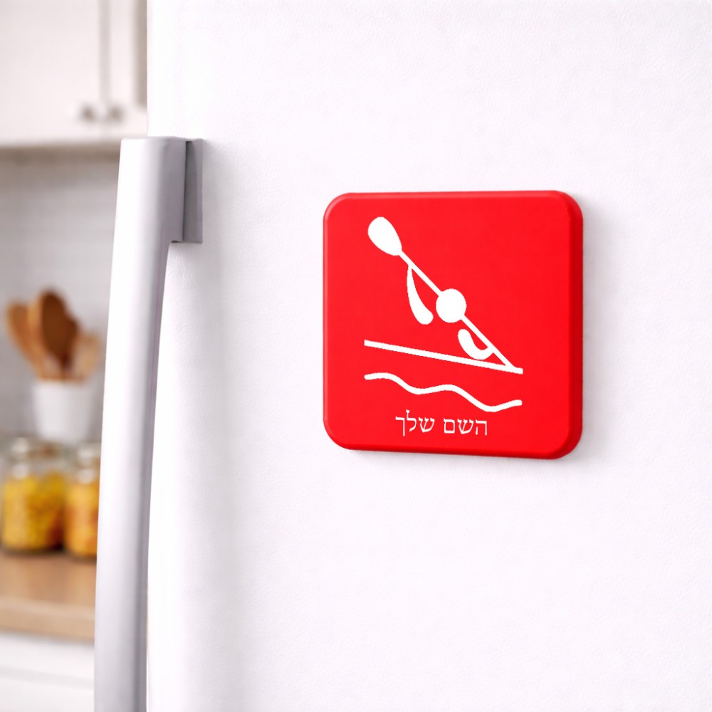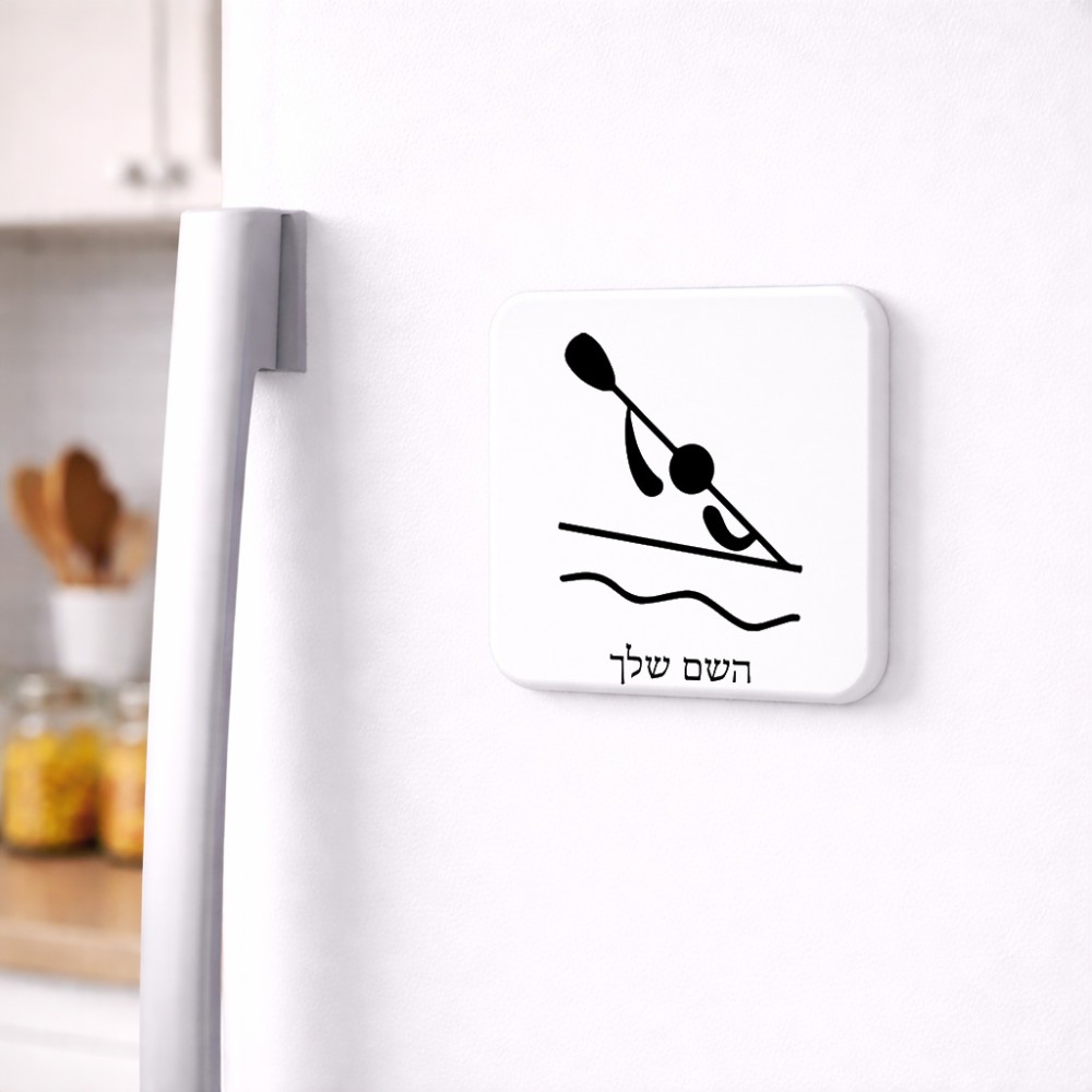 מגנט למקרר בעיצוב אישי עם השם שלך בעיצוב קיאק אולימפי גודל המגנט 6.5 × 6.5 ס"מ. את השם המבוקש ניתן לציין בהזמנה, אם לא צויין אנחנו ניצור קשר לבירור.