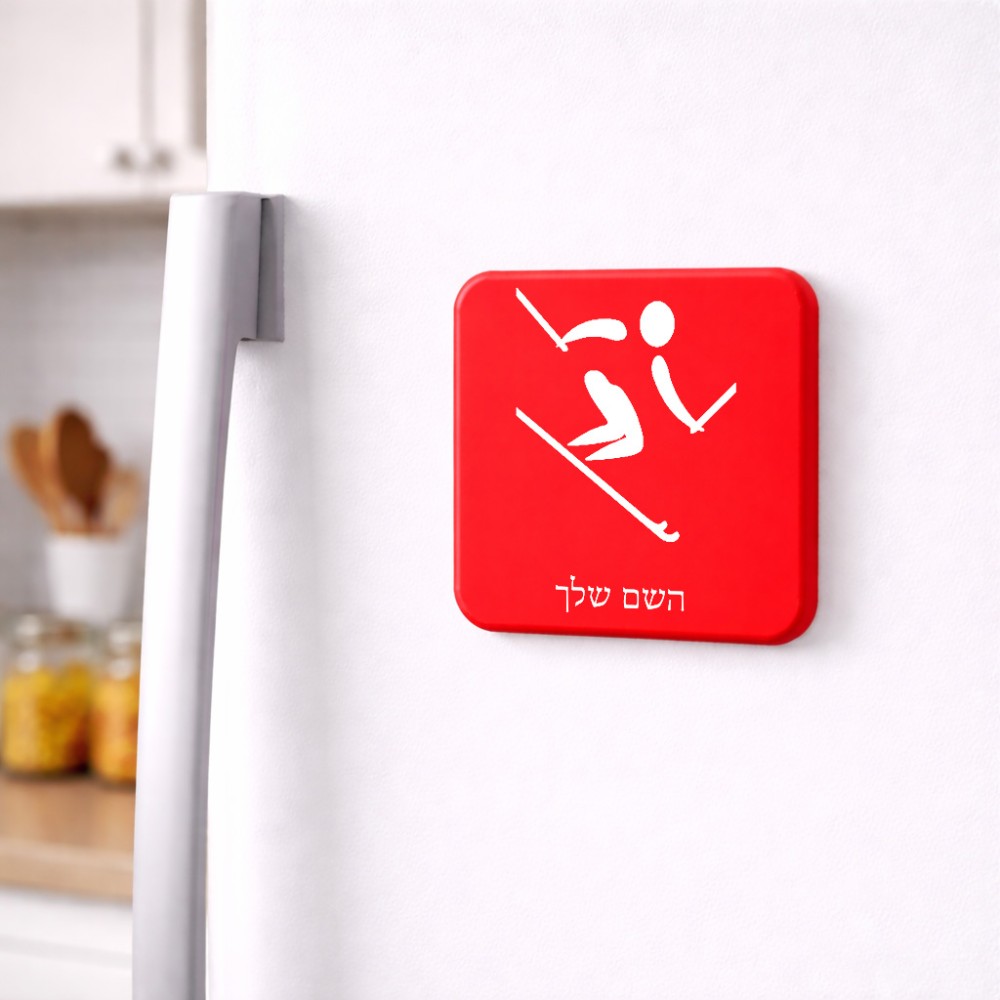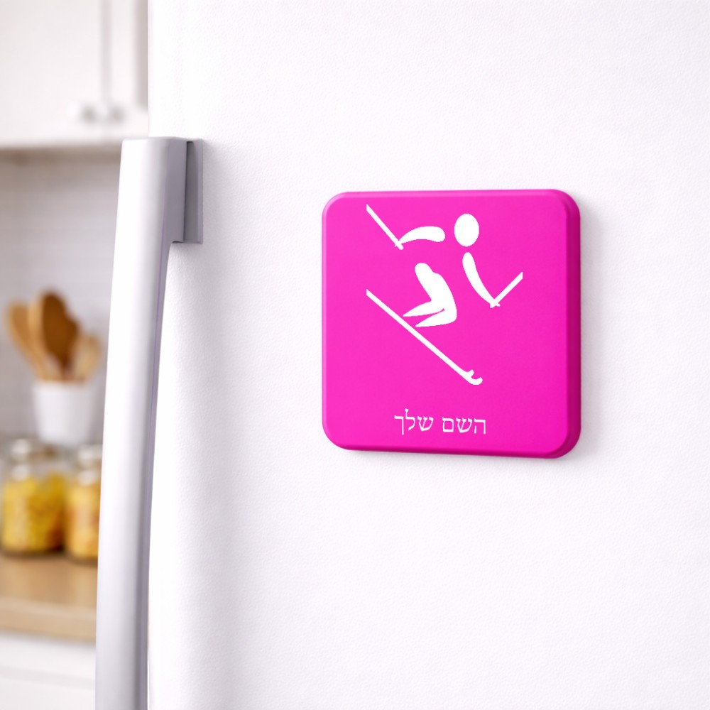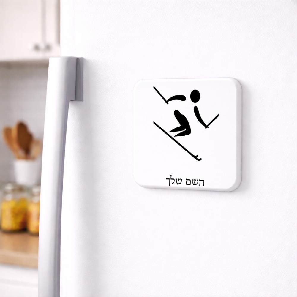 מגנט למקרר בעיצוב אישי עם השם שלך בעיצוב סקי אולימפי גודל המגנט 6.5 × 6.5 ס"מ. את השם המבוקש ניתן לציין בהזמנה, אם לא צויין אנחנו ניצור קשר לבירור.