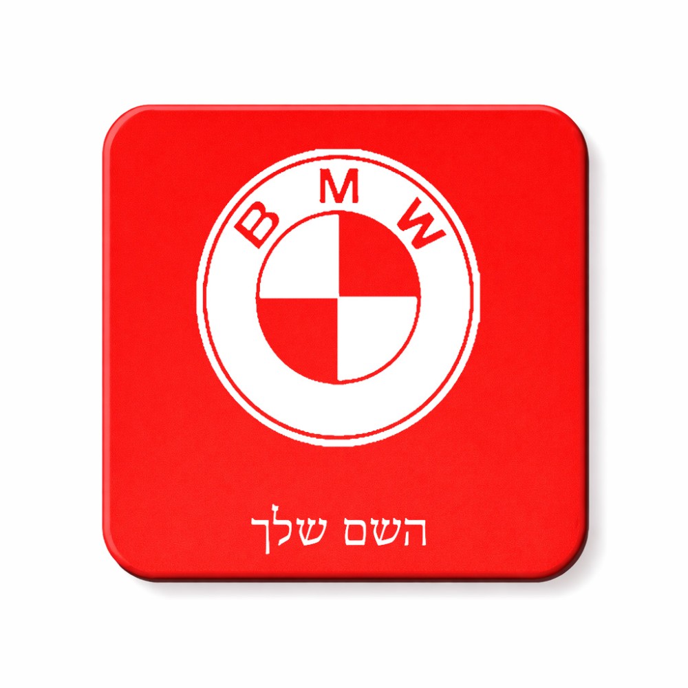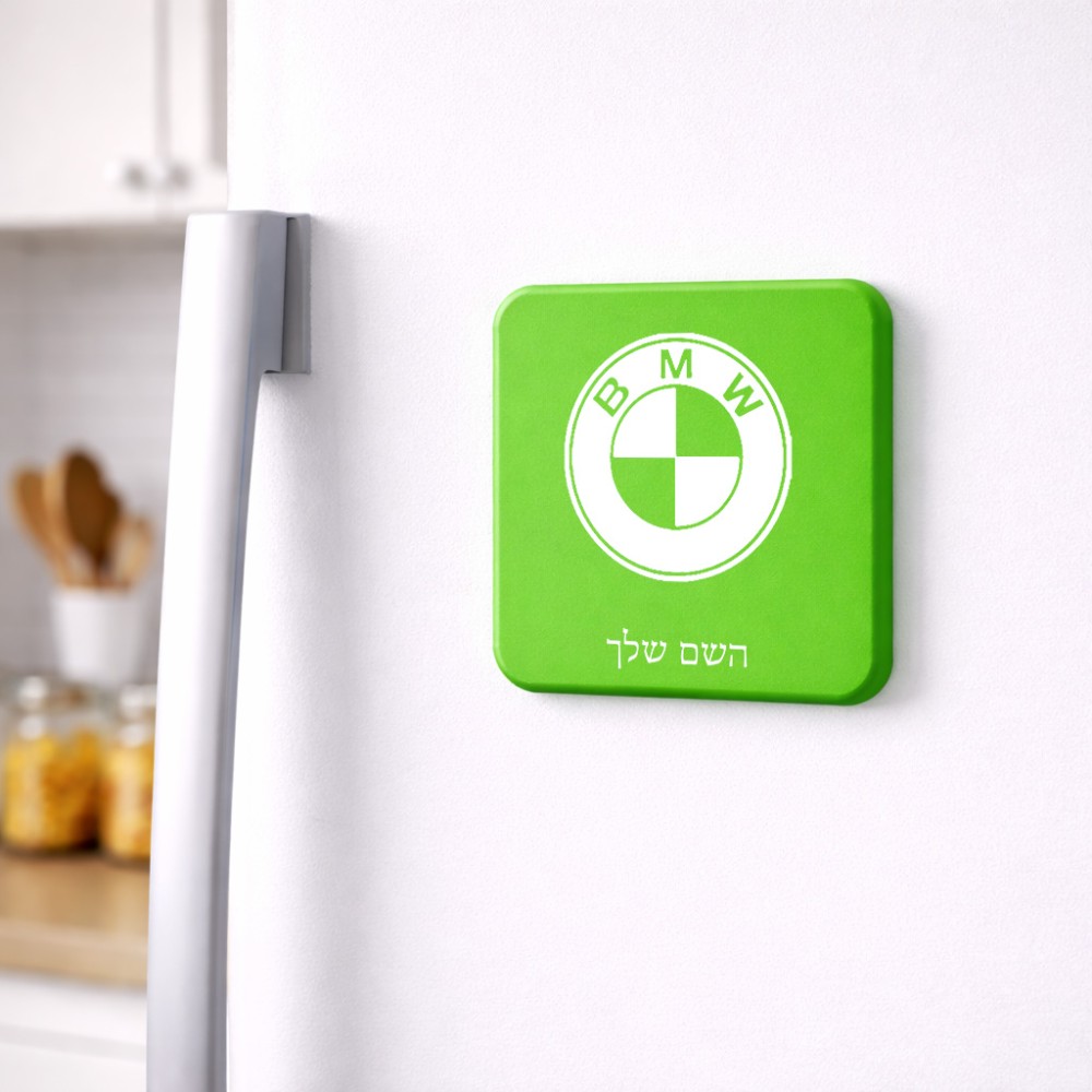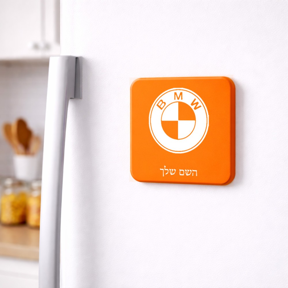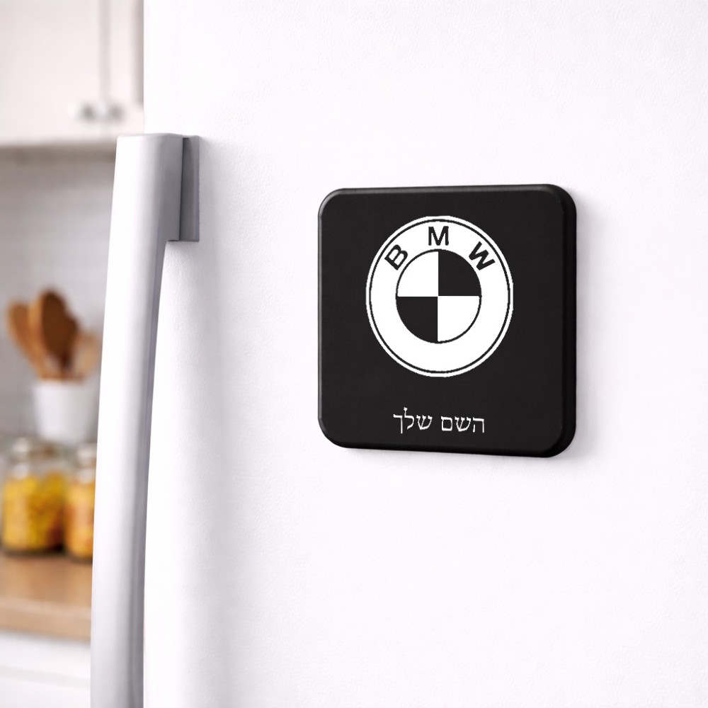 מגנט למקרר בעיצוב אישי עם השם שלך בעיצוב ב.מ.וו גודל המגנט 6.5 × 6.5 ס"מ