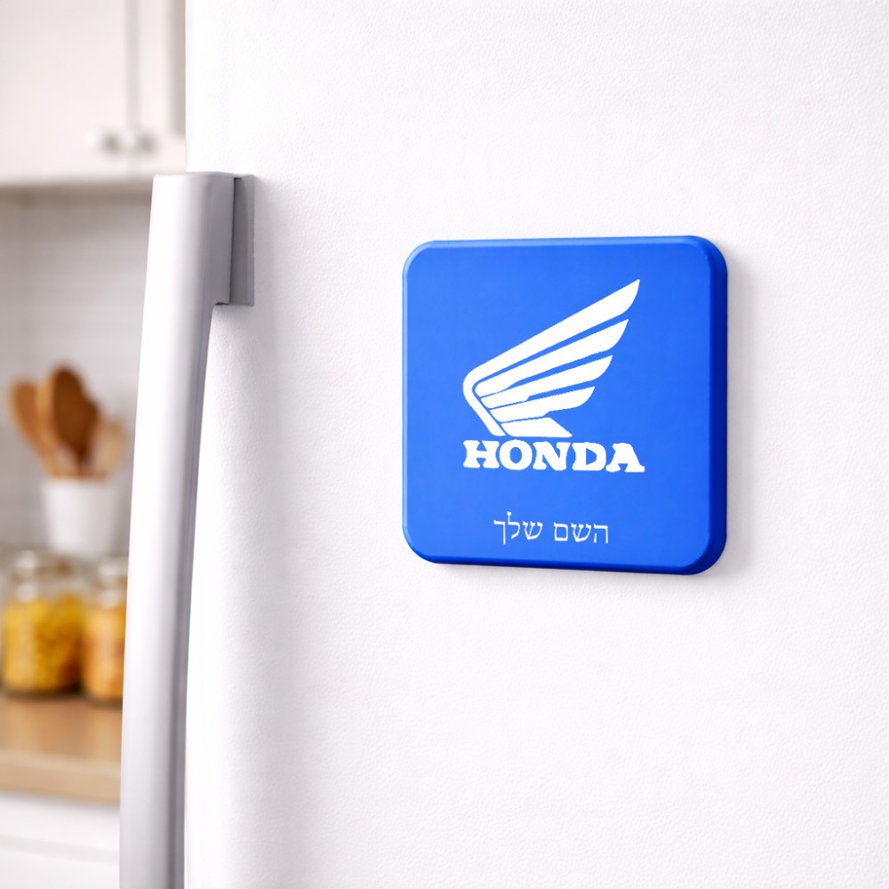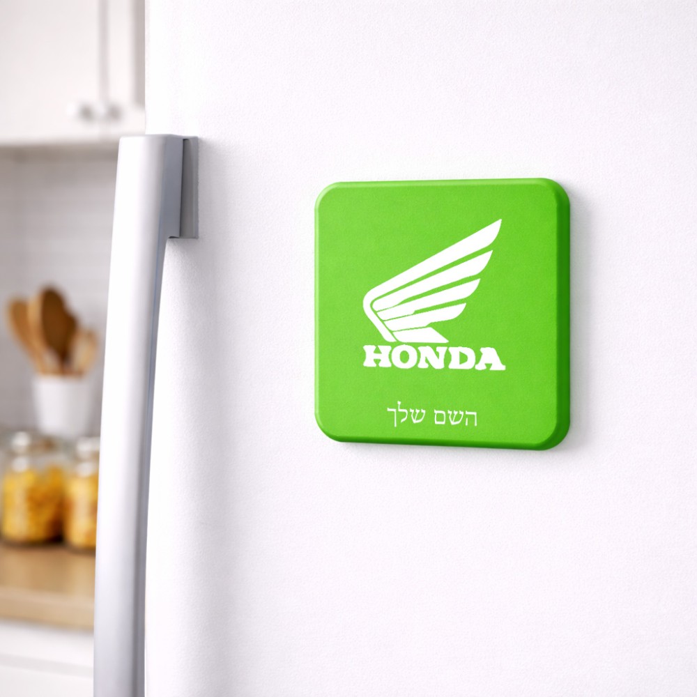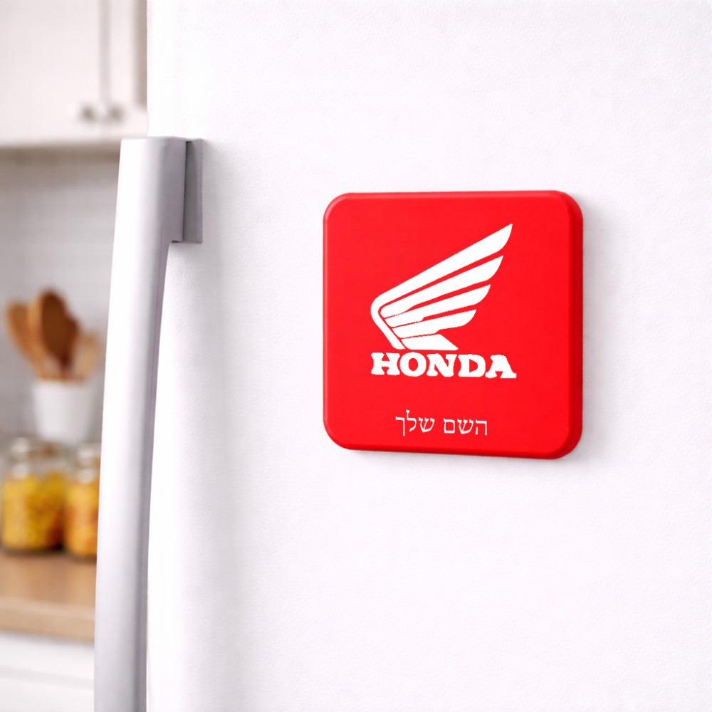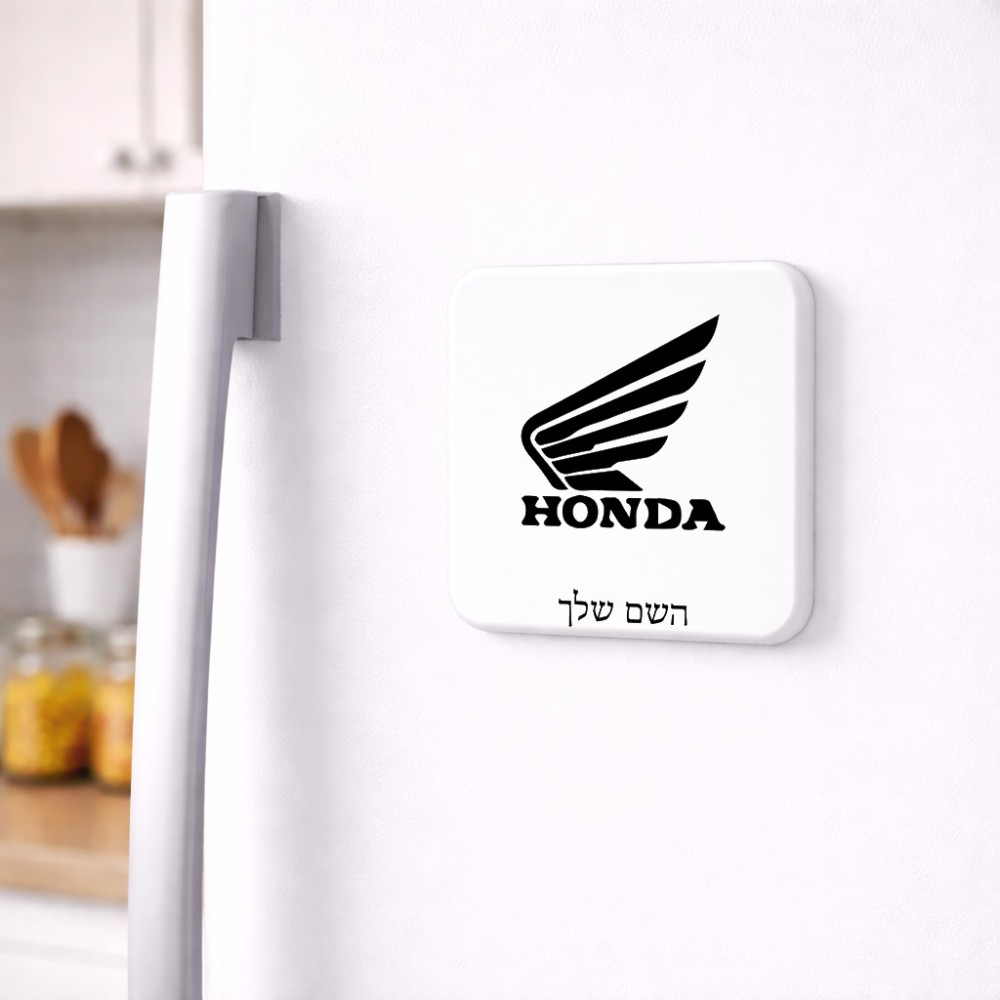 מגנט למקרר בעיצוב אישי עם השם שלך בעיצוב הונדה גודל המגנט 6.5 × 6.5 ס"מ. את השם המבוקש ניתן לציין בהזמנה, אם לא צויין אנחנו ניצור קשר לבירור.