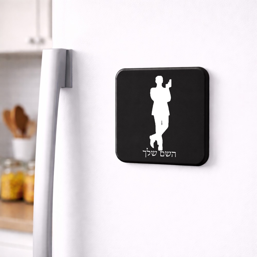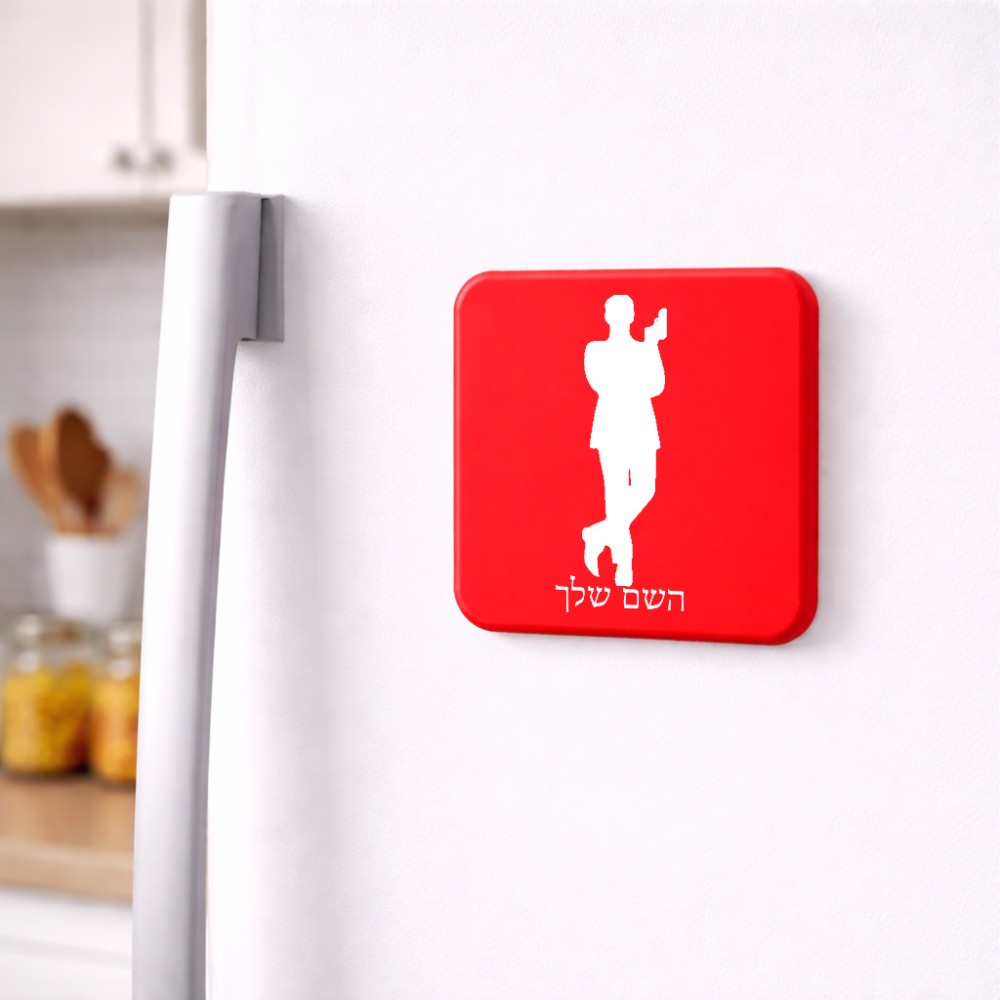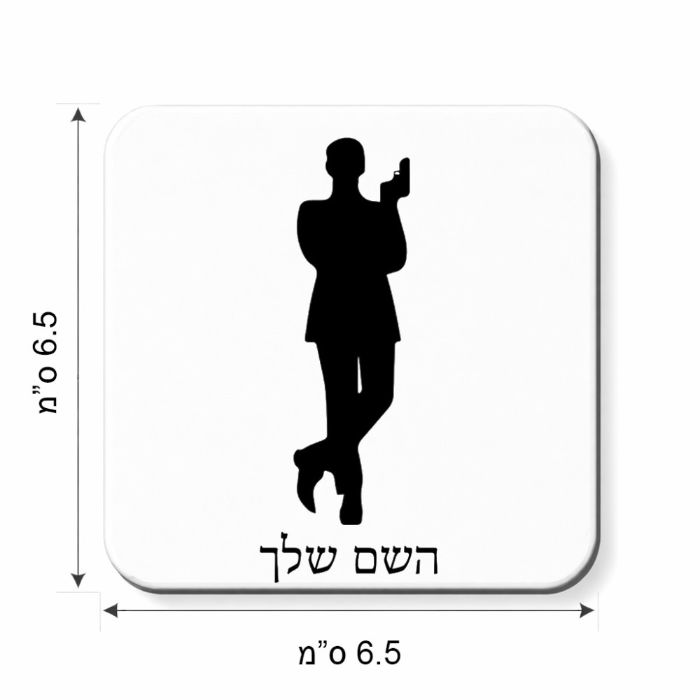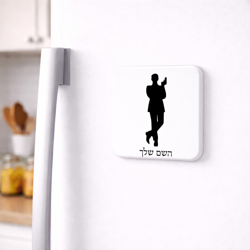 מגנט למקרר בעיצוב אישי עם השם שלך בעיצוב ג'יימס בונד גודל המגנט 6.5 × 6.5 ס"מ. את השם המבוקש ניתן לציין בהזמנה, אם לא צויין אנחנו ניצור קשר לבירור.