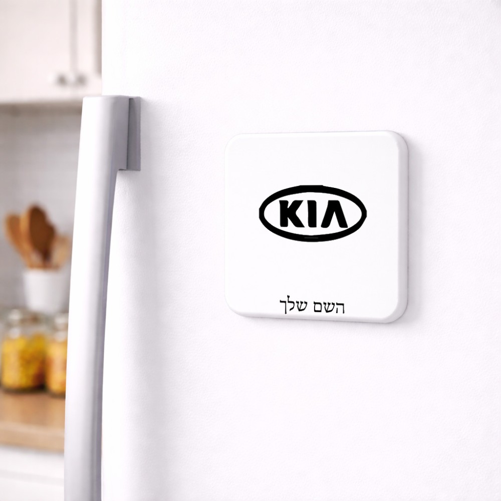 מגנט למקרר בעיצוב אישי עם השם שלך בעיצוב קיה גודל המגנט 6.5 × 6.5 ס"מ. את השם המבוקש ניתן לציין בהזמנה, אם לא צויין אנחנו ניצור קשר לבירור.