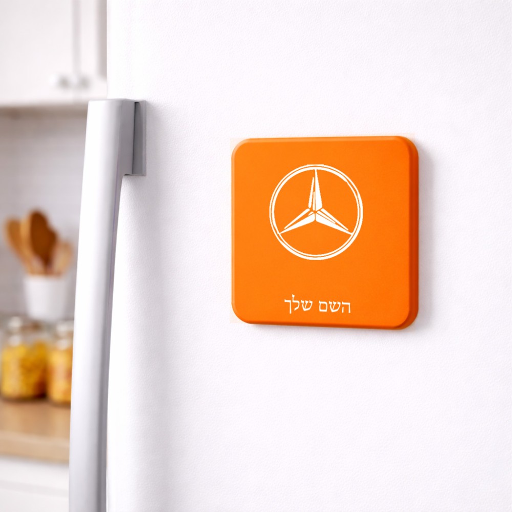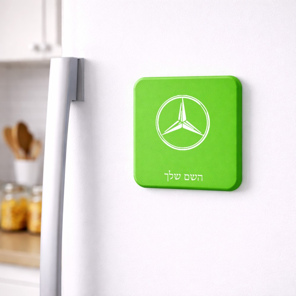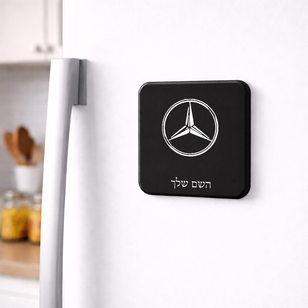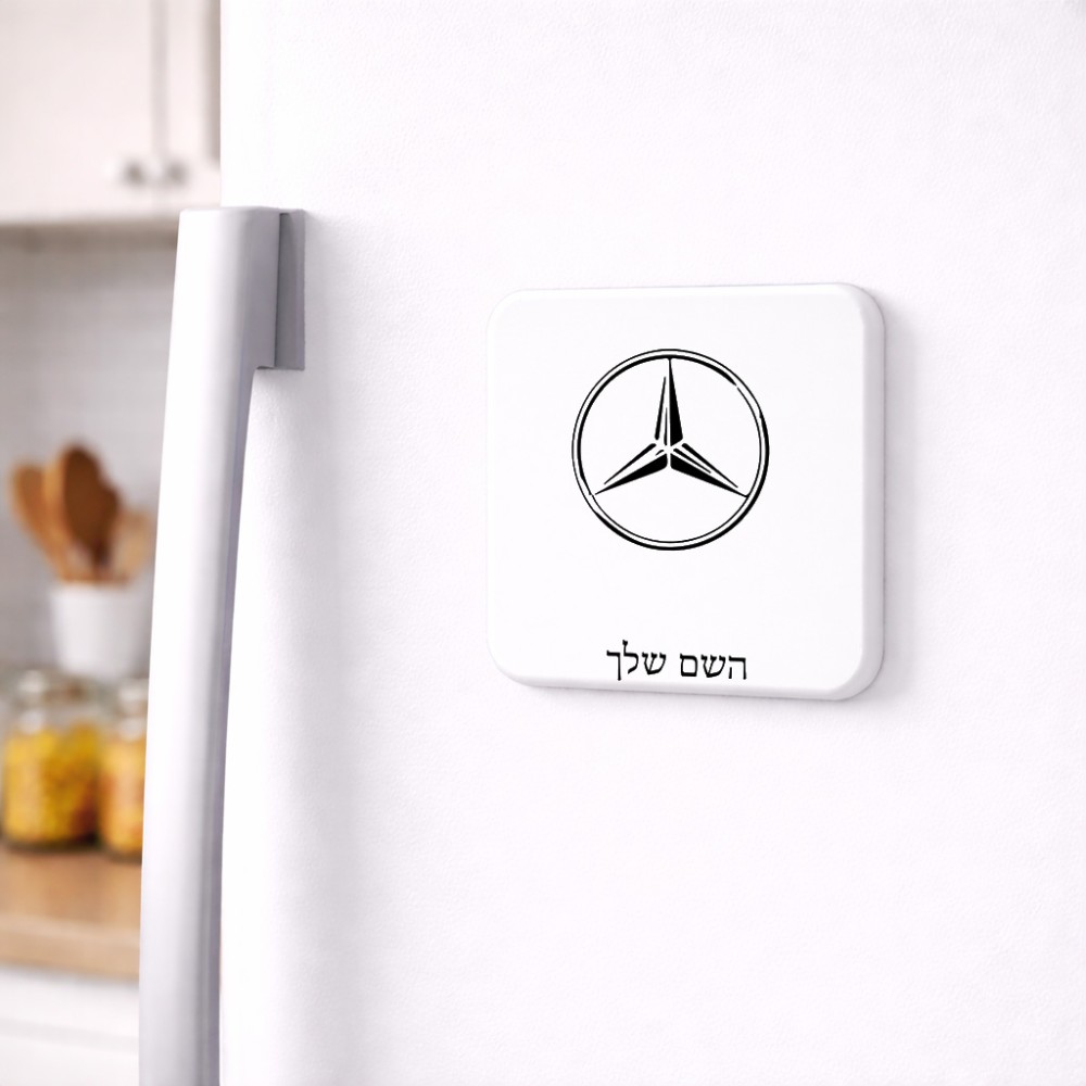 מגנט למקרר בעיצוב אישי עם השם שלך בעיצוב מרצדס-בנץ גודל המגנט 6.5 × 6.5 ס"מ. את השם המבוקש ניתן לציין בהזמנה, אם לא צויין אנחנו ניצור קשר לבירור.