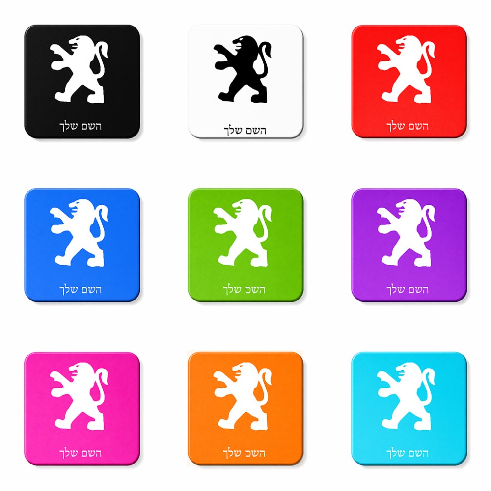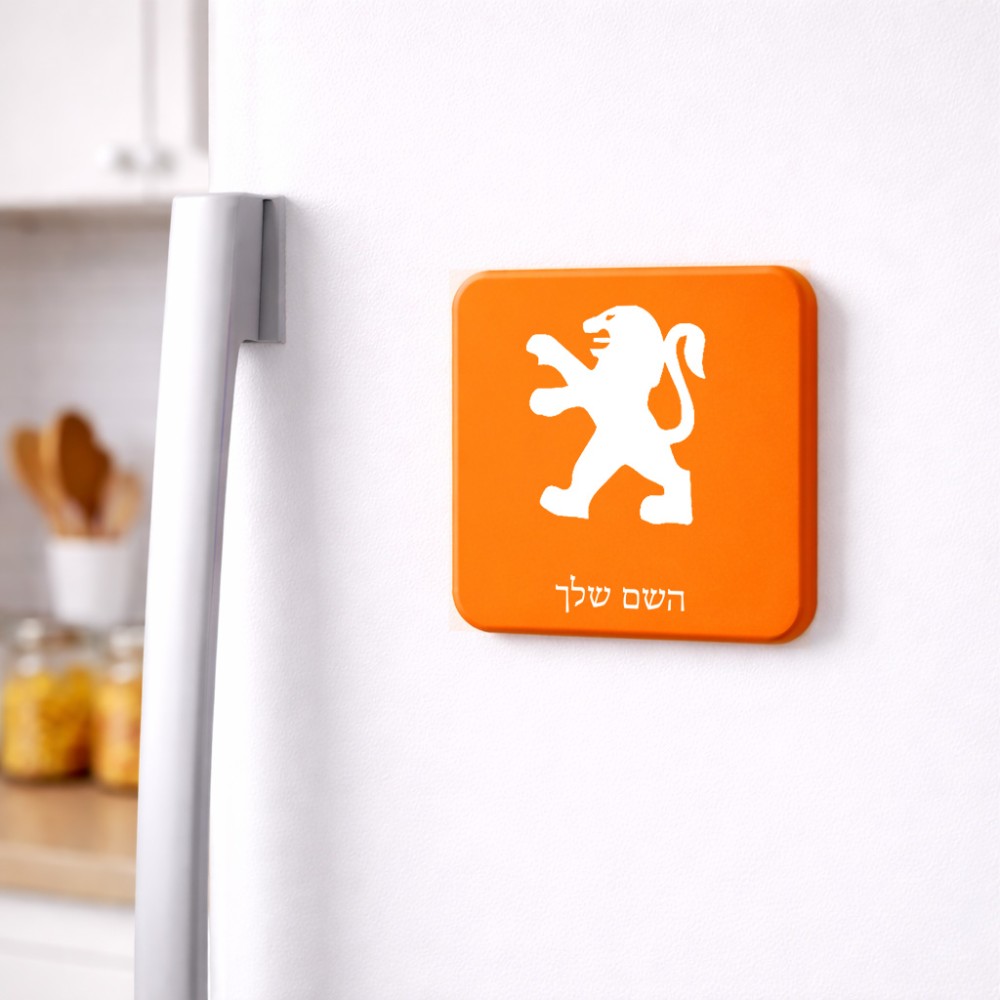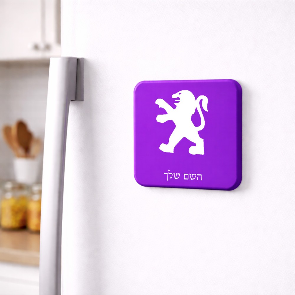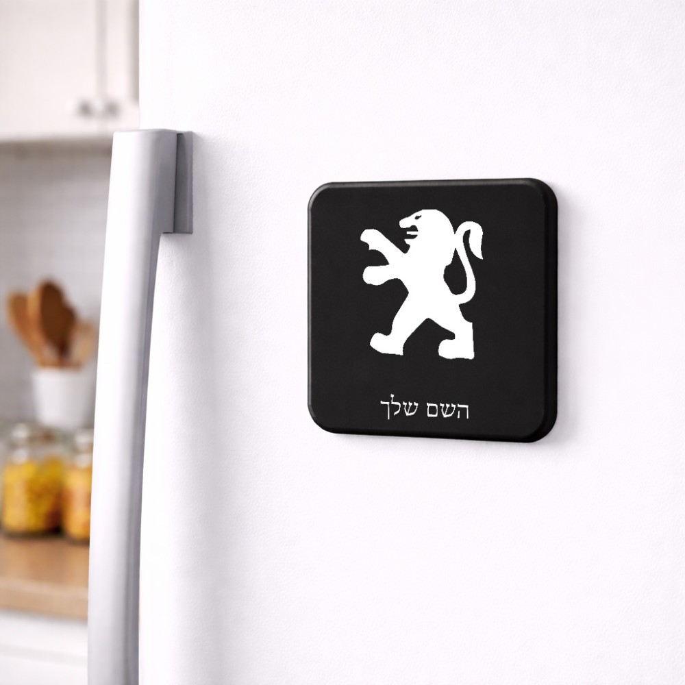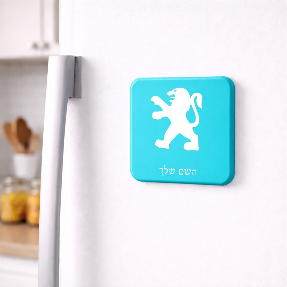 מגנט למקרר בעיצוב אישי עם השם שלך בעיצוב פיג'ו גודל המגנט 6.5 × 6.5 ס"מ