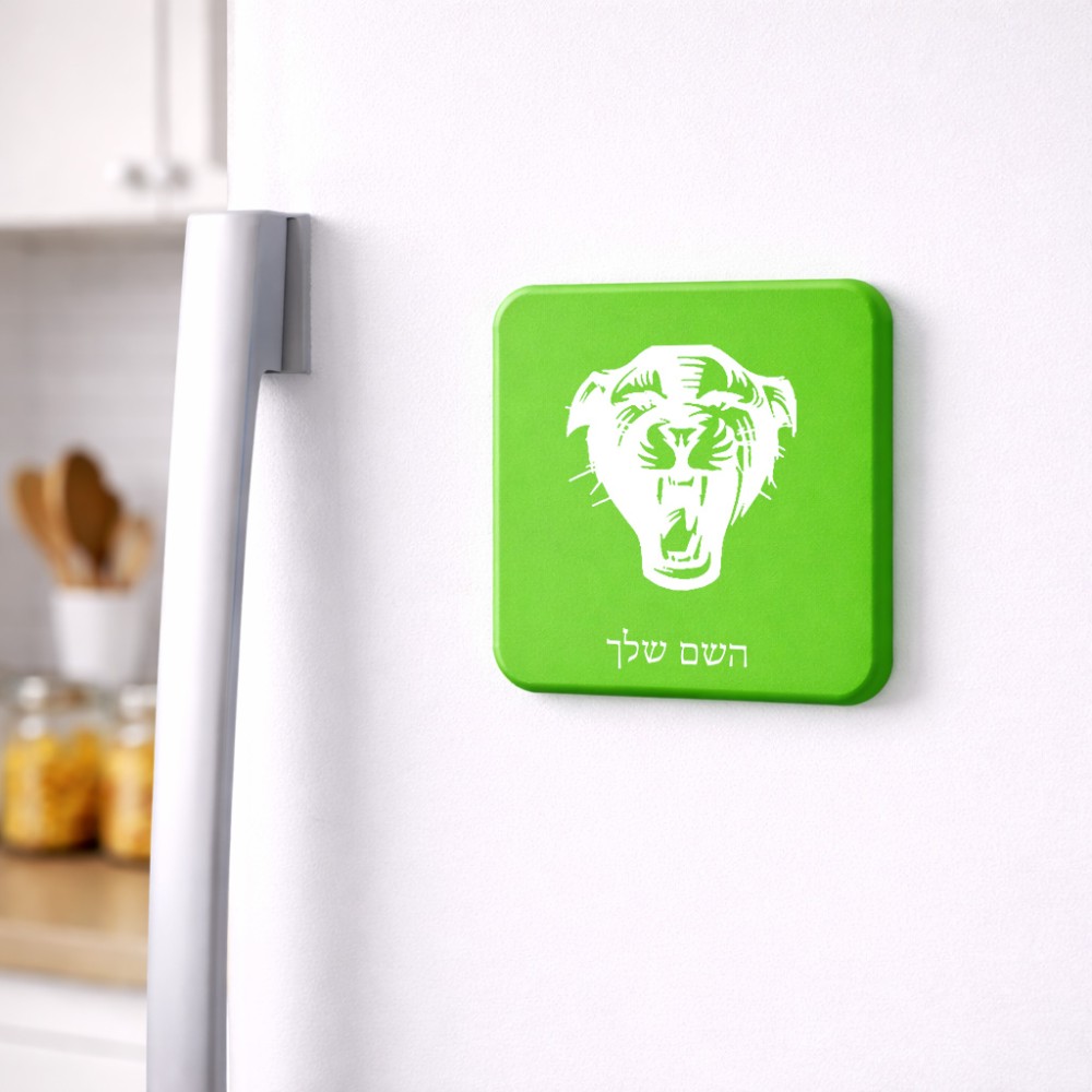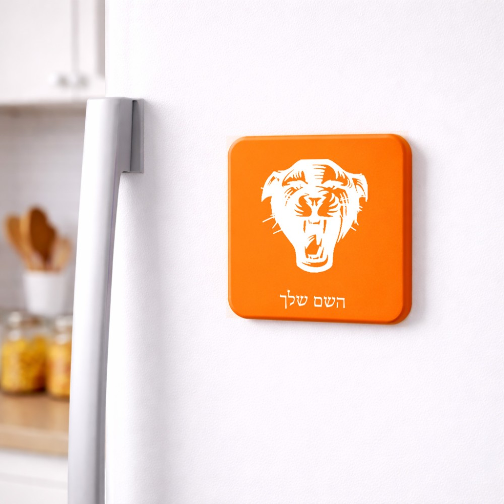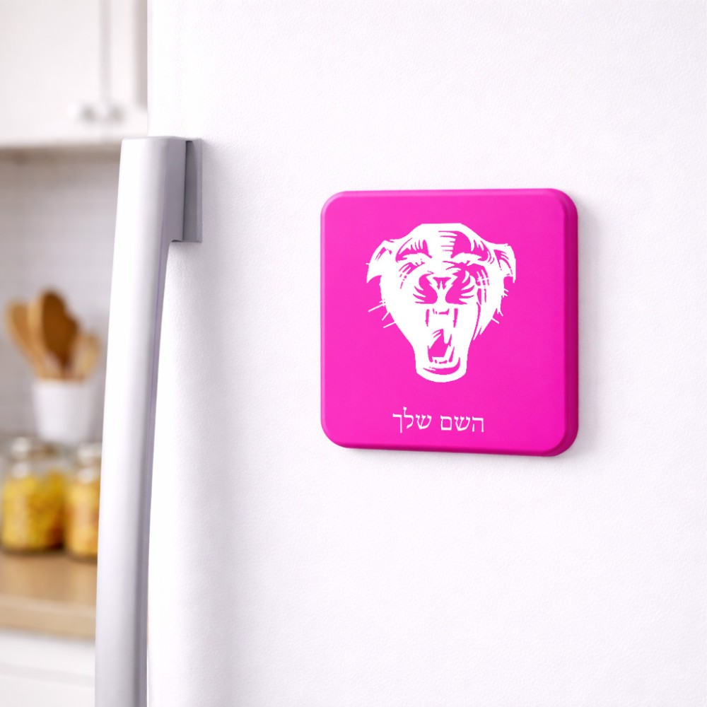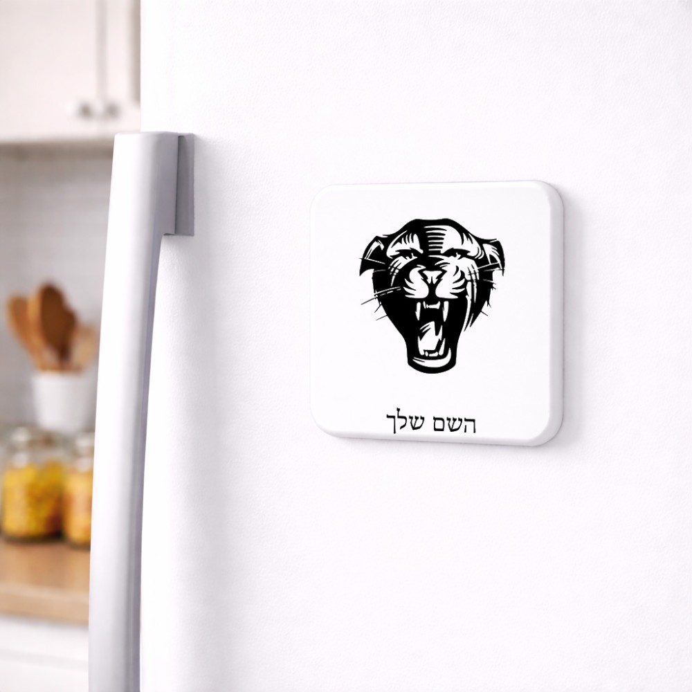 מגנט למקרר בעיצוב אישי עם השם שלך בעיצוב פני פנטרה גודל המגנט 6.5 × 6.5 ס"מ. את השם המבוקש ניתן לציין בהזמנה, אם לא צויין אנחנו ניצור קשר לבירור.