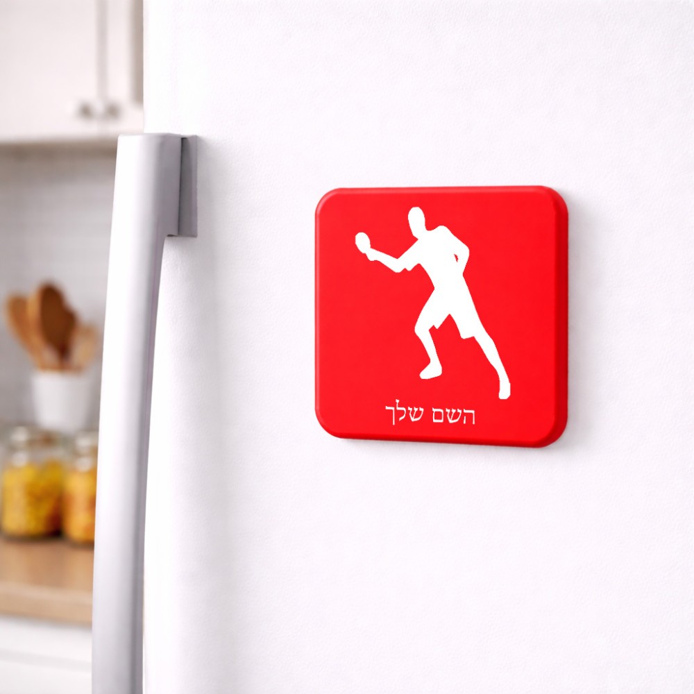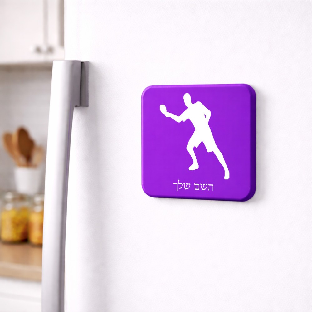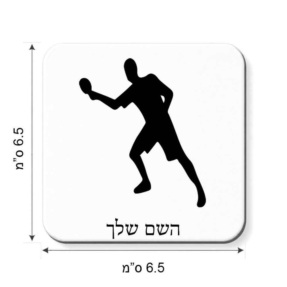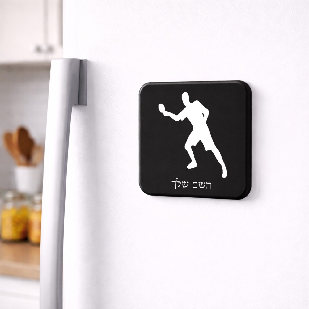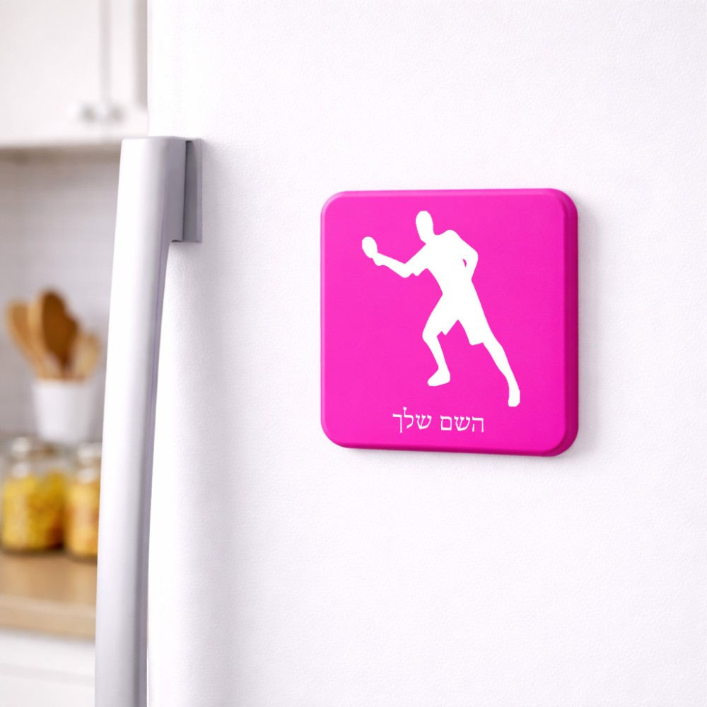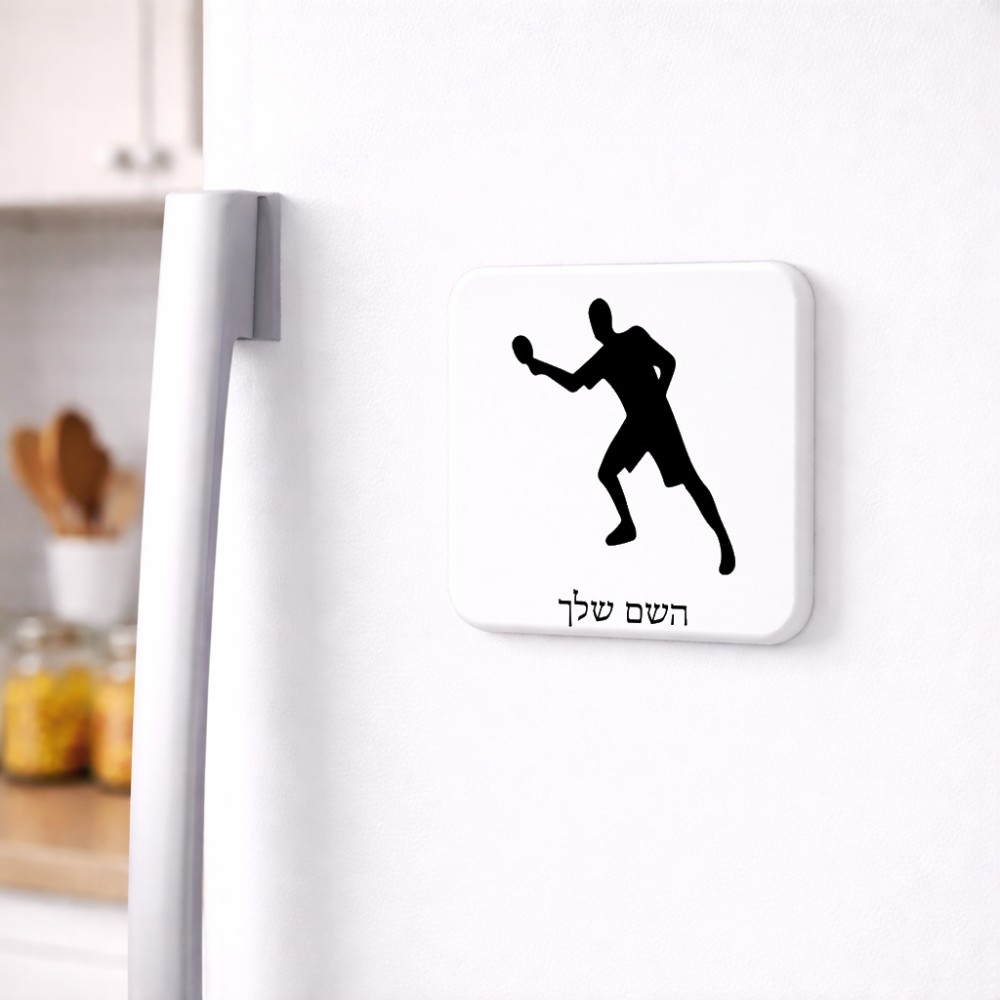 מגנט למקרר בעיצוב אישי עם השם שלך בעיצוב שחקן פינג פונג גודל המגנט 6.5 × 6.5 ס"מ. את השם המבוקש ניתן לציין בהזמנה, אם לא צויין אנחנו ניצור קשר לבירור.