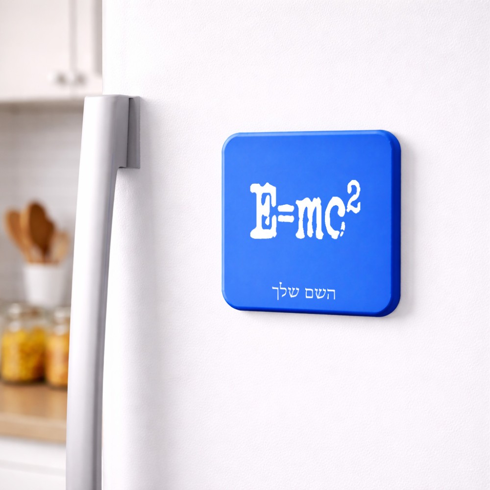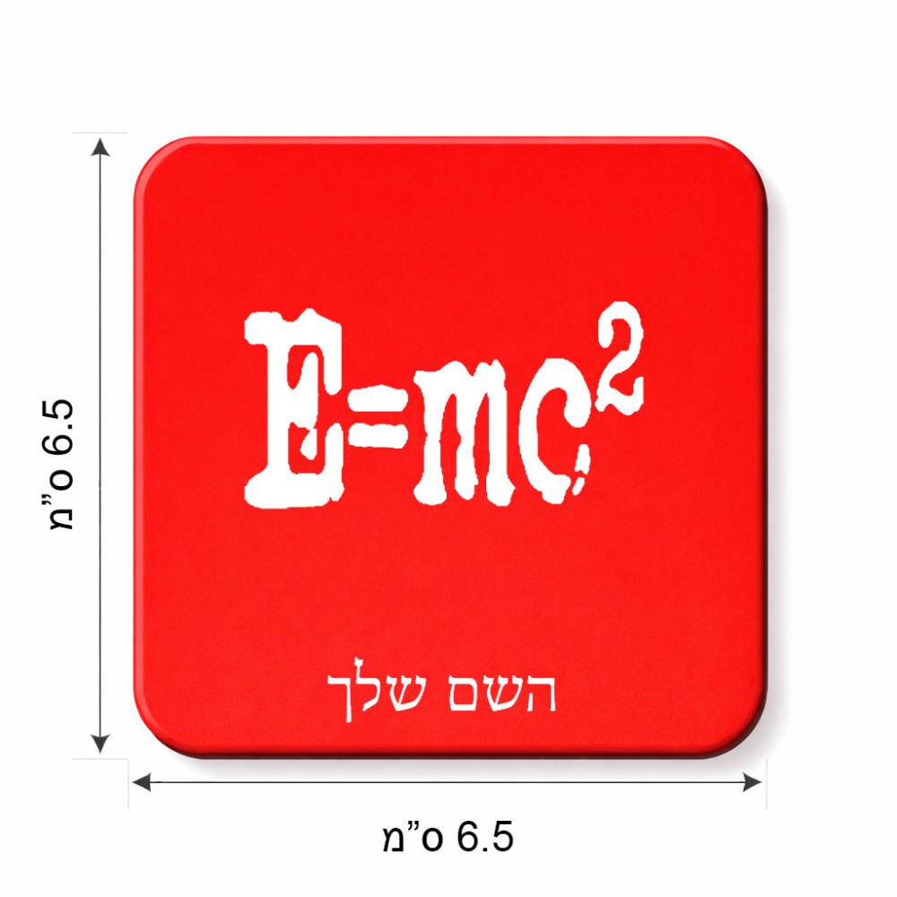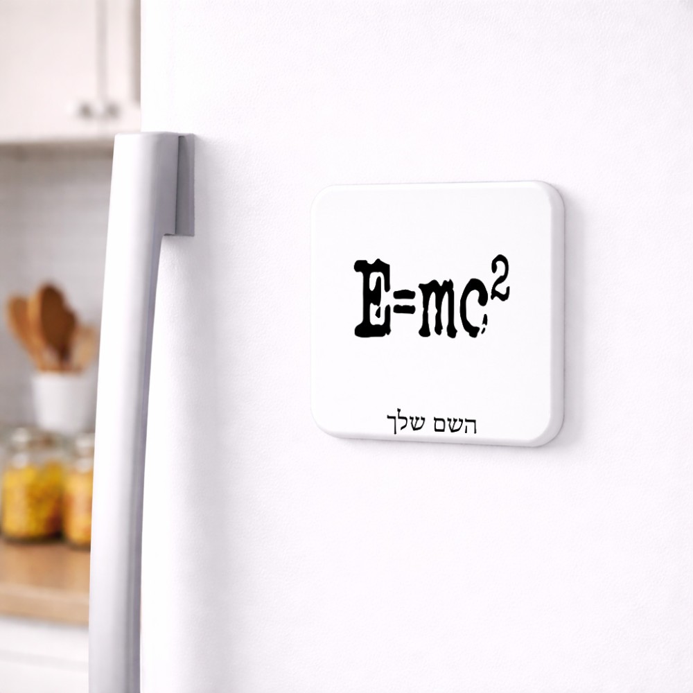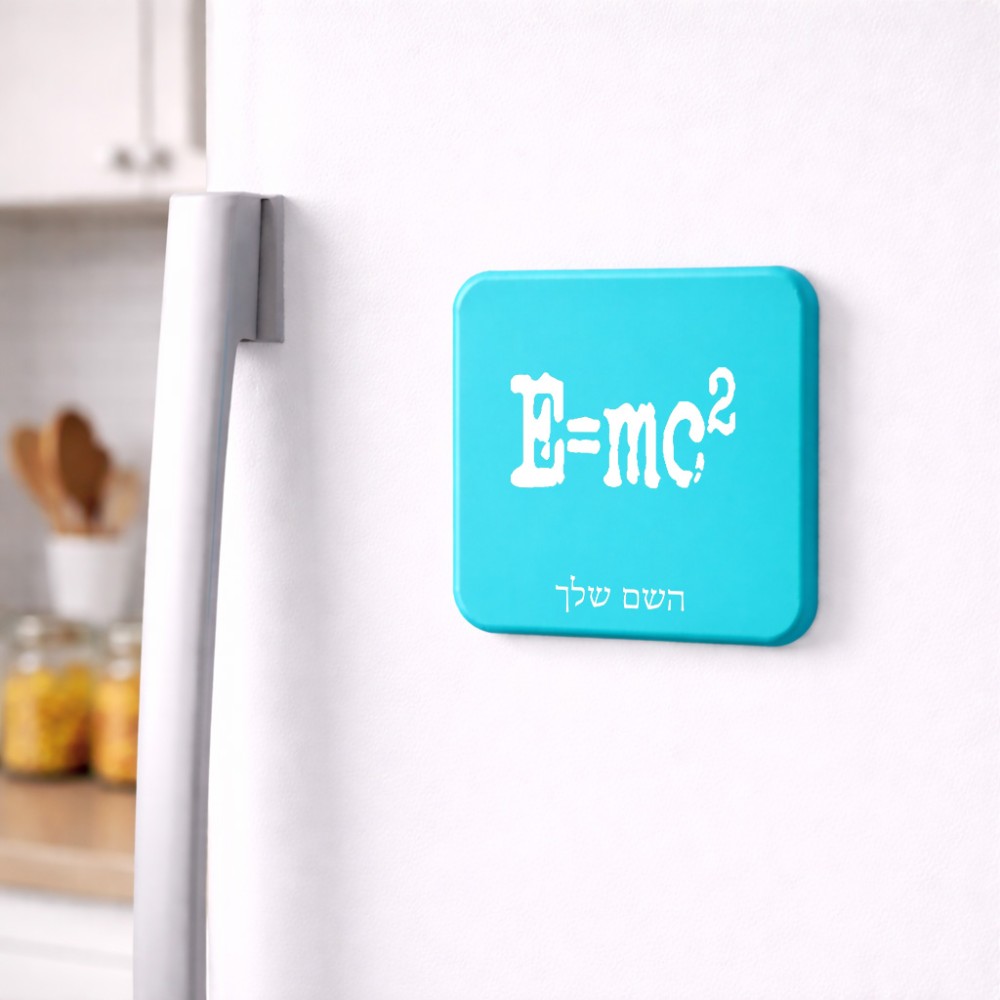 מגנט למקרר בעיצוב אישי עם השם שלך בעיצוב נוסחת אלברט איינשטיין גודל המגנט 6.5 × 6.5 ס"מ. את השם המבוקש ניתן לציין בהזמנה, אם לא צויין אנחנו ניצור קשר לבירור.