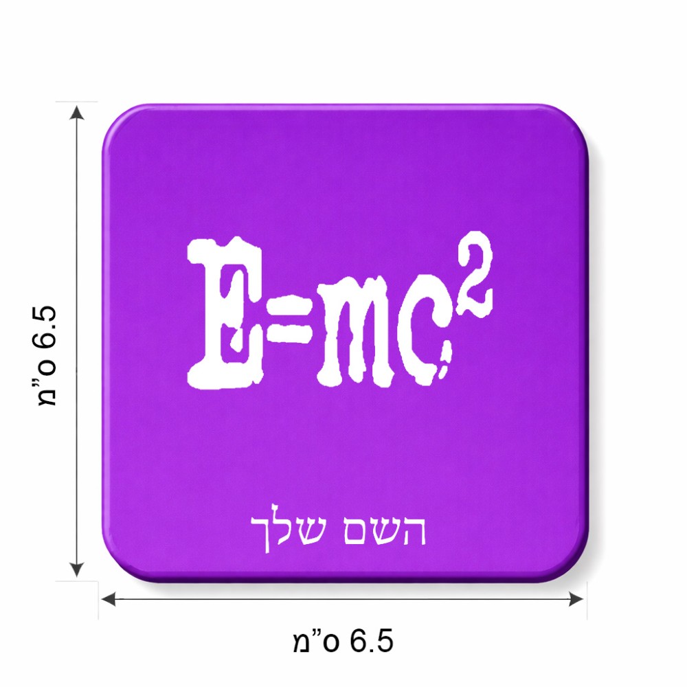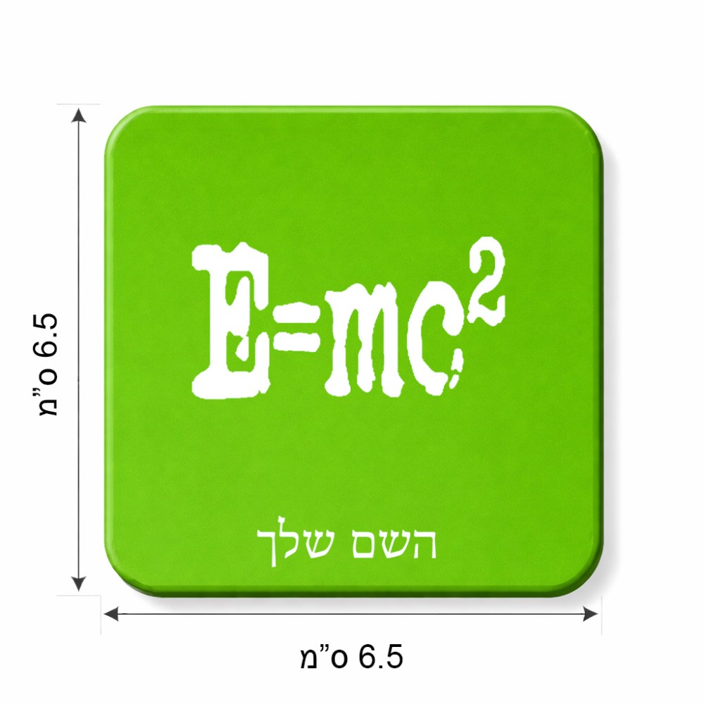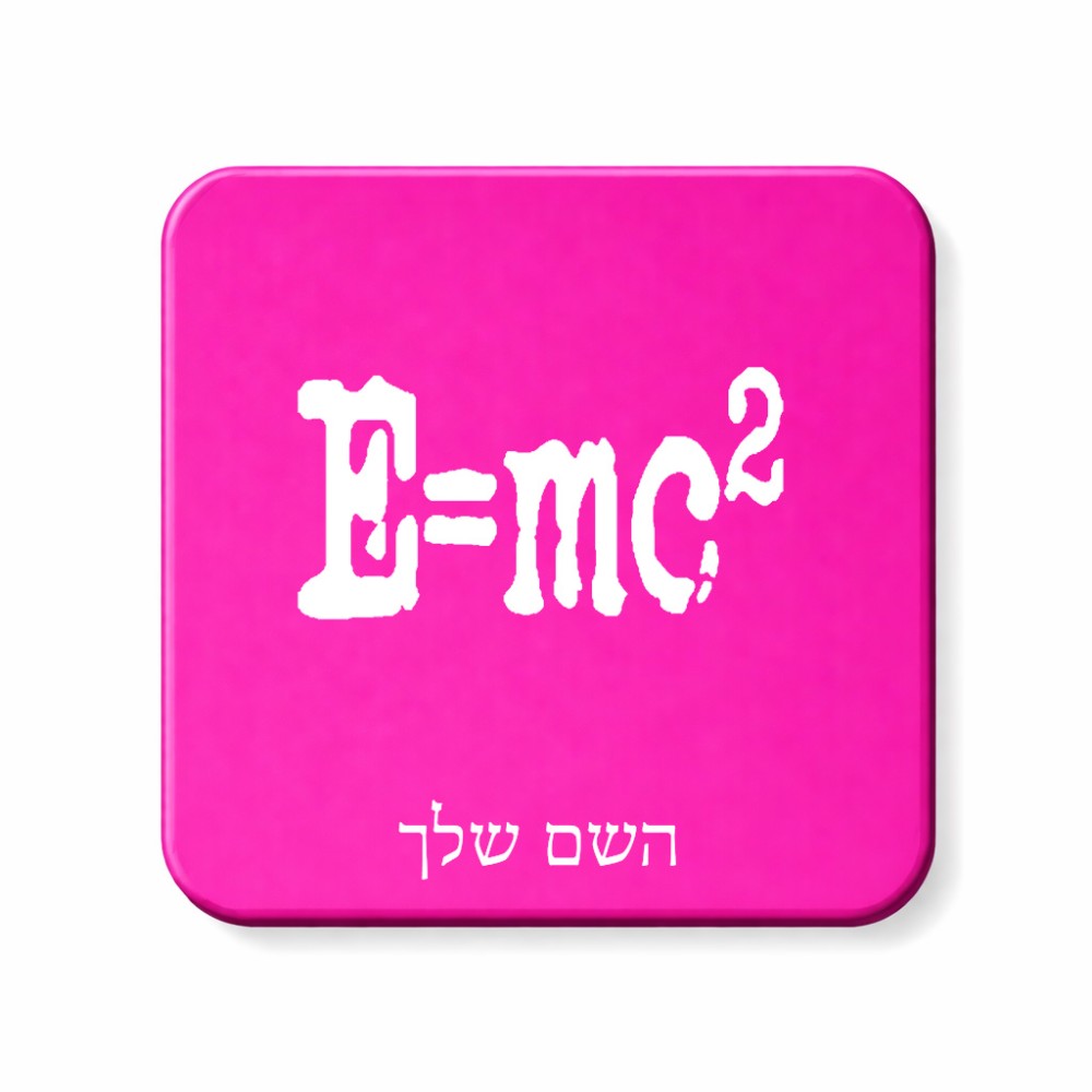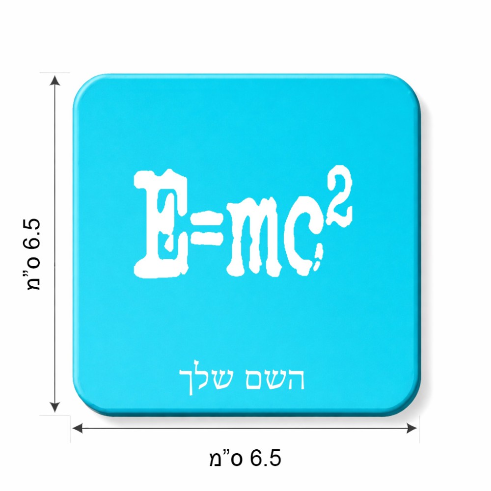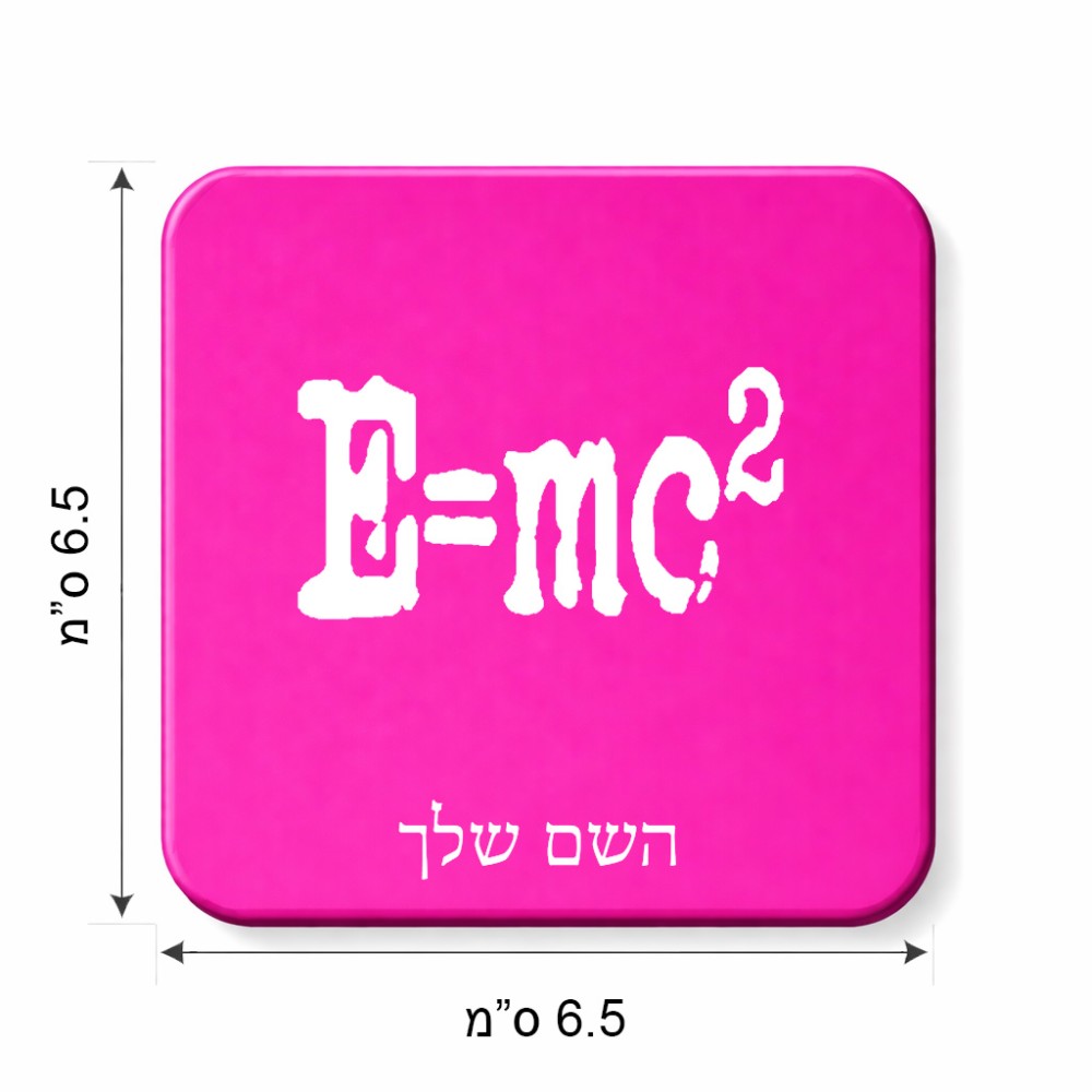 מגנט למקרר בעיצוב אישי עם השם שלך בעיצוב נוסחת אלברט איינשטיין גודל המגנט 6.5 × 6.5 ס"מ. את השם המבוקש ניתן לציין בהזמנה, אם לא צויין אנחנו ניצור קשר לבירור.