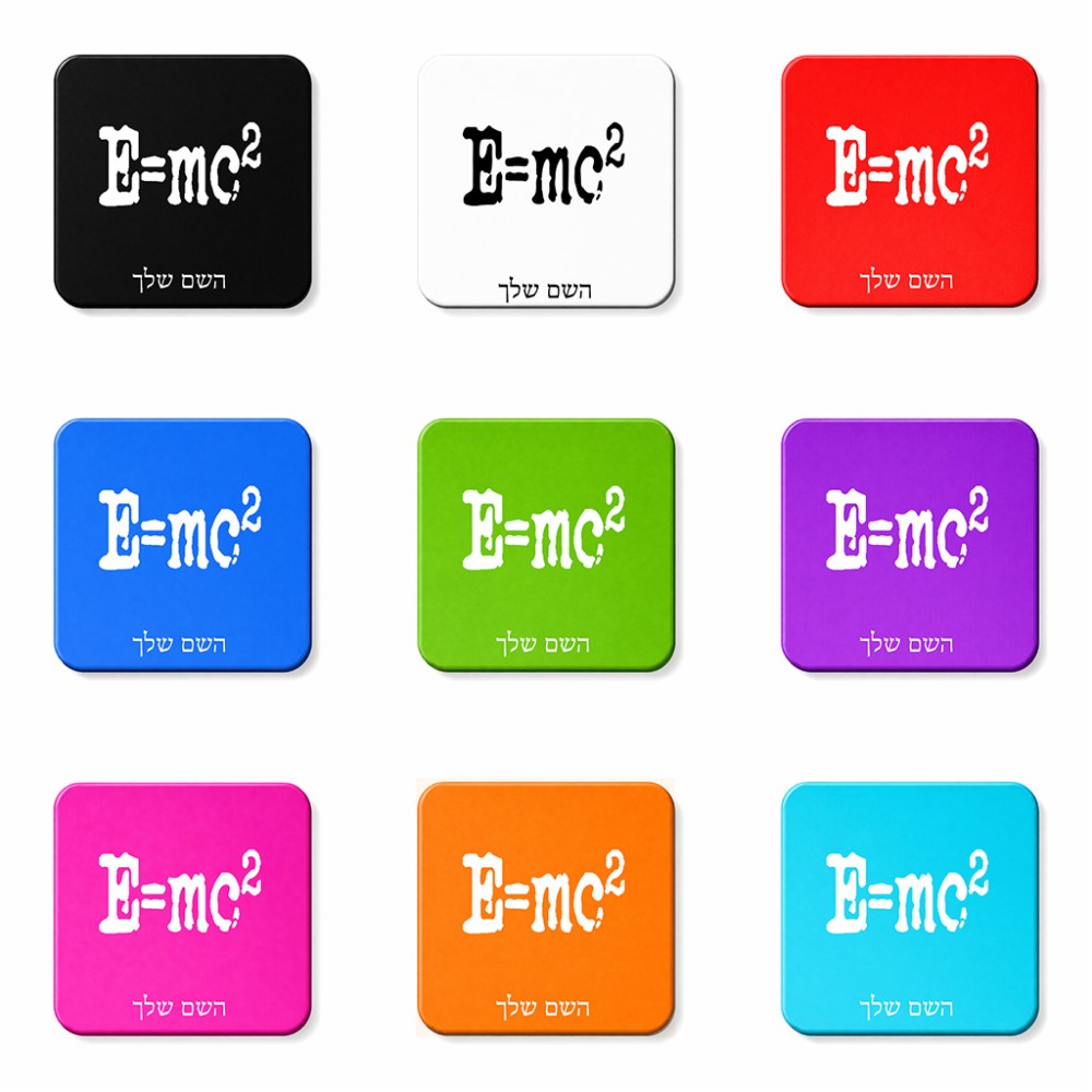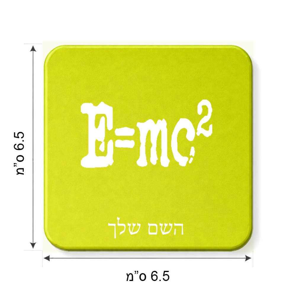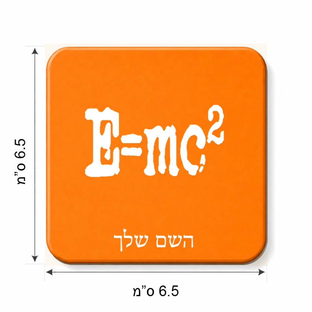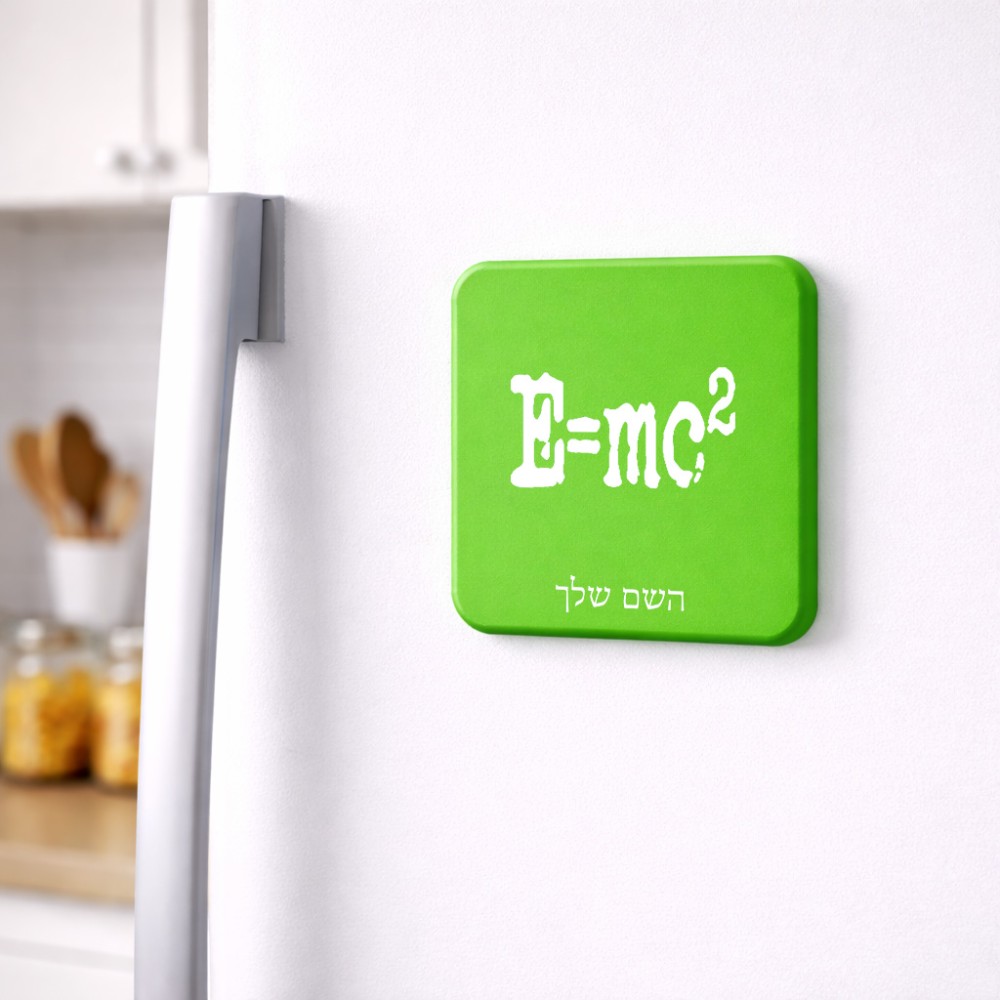 מגנט למקרר בעיצוב אישי עם השם שלך בעיצוב נוסחת אלברט איינשטיין גודל המגנט 6.5 × 6.5 ס"מ. את השם המבוקש ניתן לציין בהזמנה, אם לא צויין אנחנו ניצור קשר לבירור.