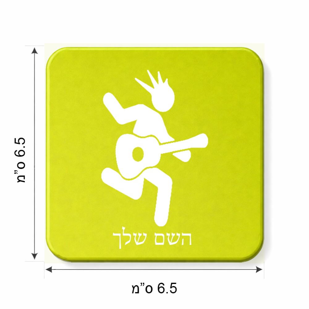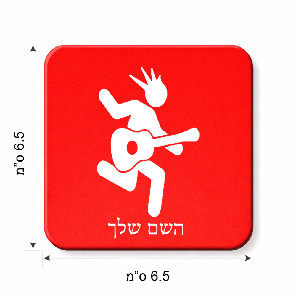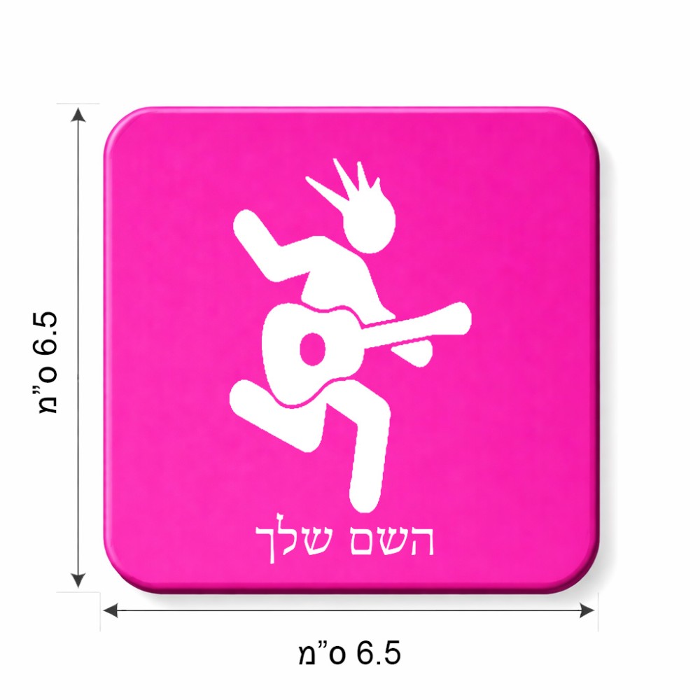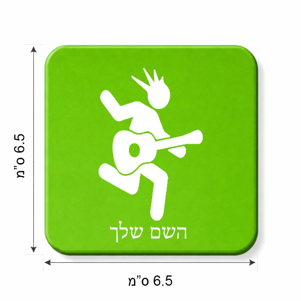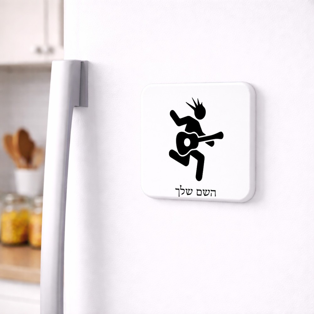 מגנט למקרר בעיצוב אישי עם השם שלך בעיצוב נגן גיטרה גודל המגנט 6.5 × 6.5 ס"מ. את השם המבוקש ניתן לציין בהזמנה, אם לא צויין אנחנו ניצור קשר לבירור.
