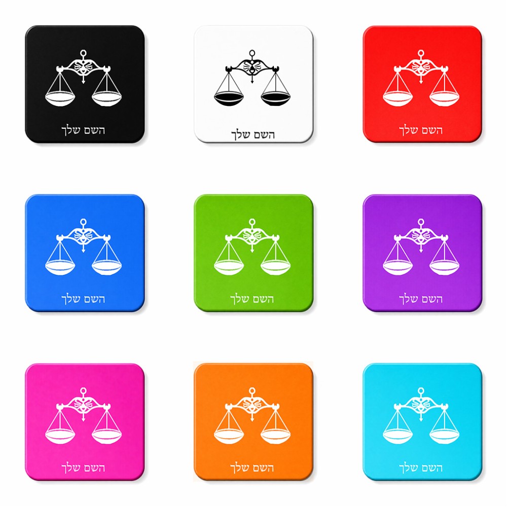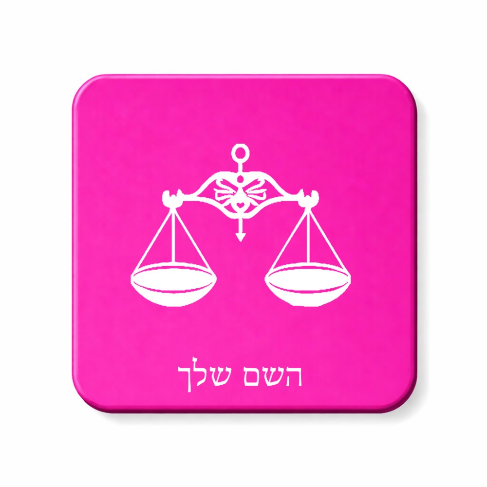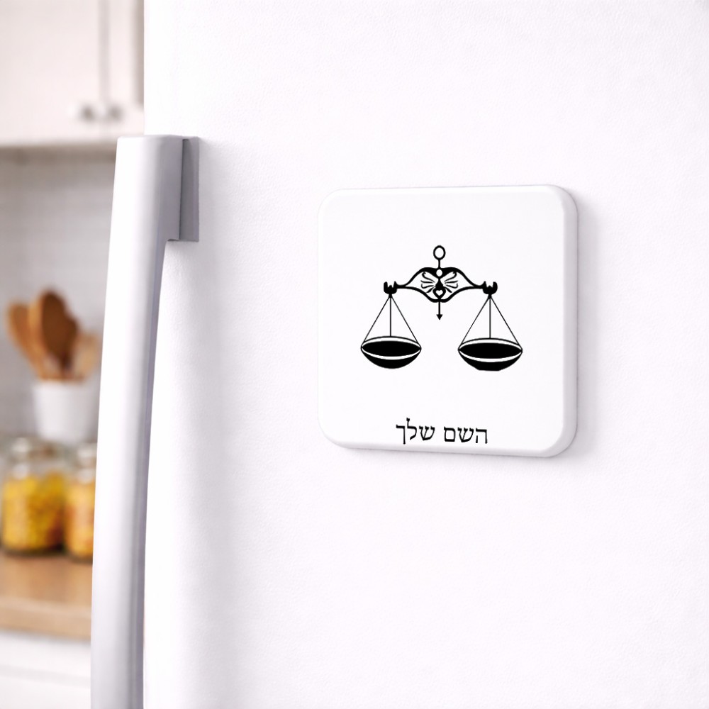 מגנט למקרר בעיצוב אישי עם השם שלך בעיצוב מזלות - מאזניים גודל המגנט 6.5 × 6.5 ס"מ. את השם המבוקש ניתן לציין בהזמנה, אם לא צויין אנחנו ניצור קשר לבירור.