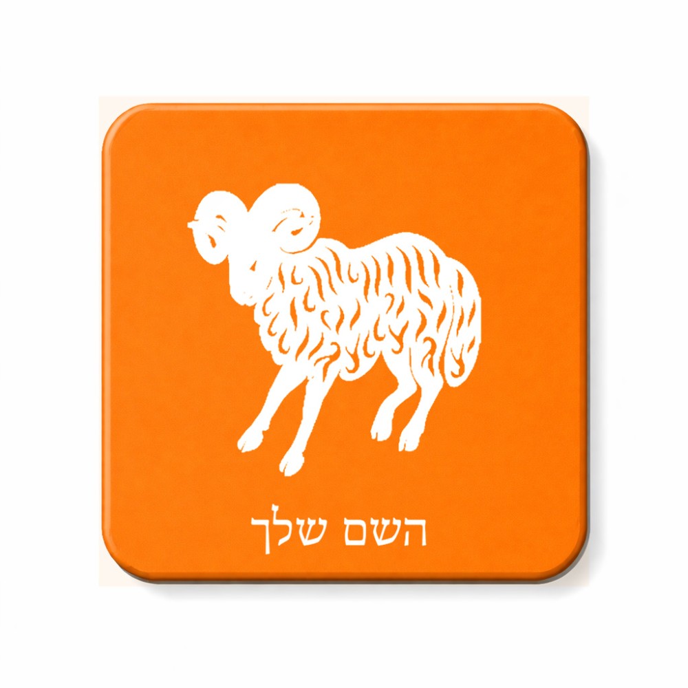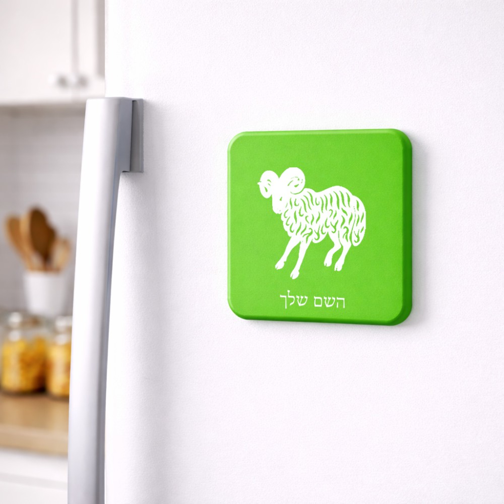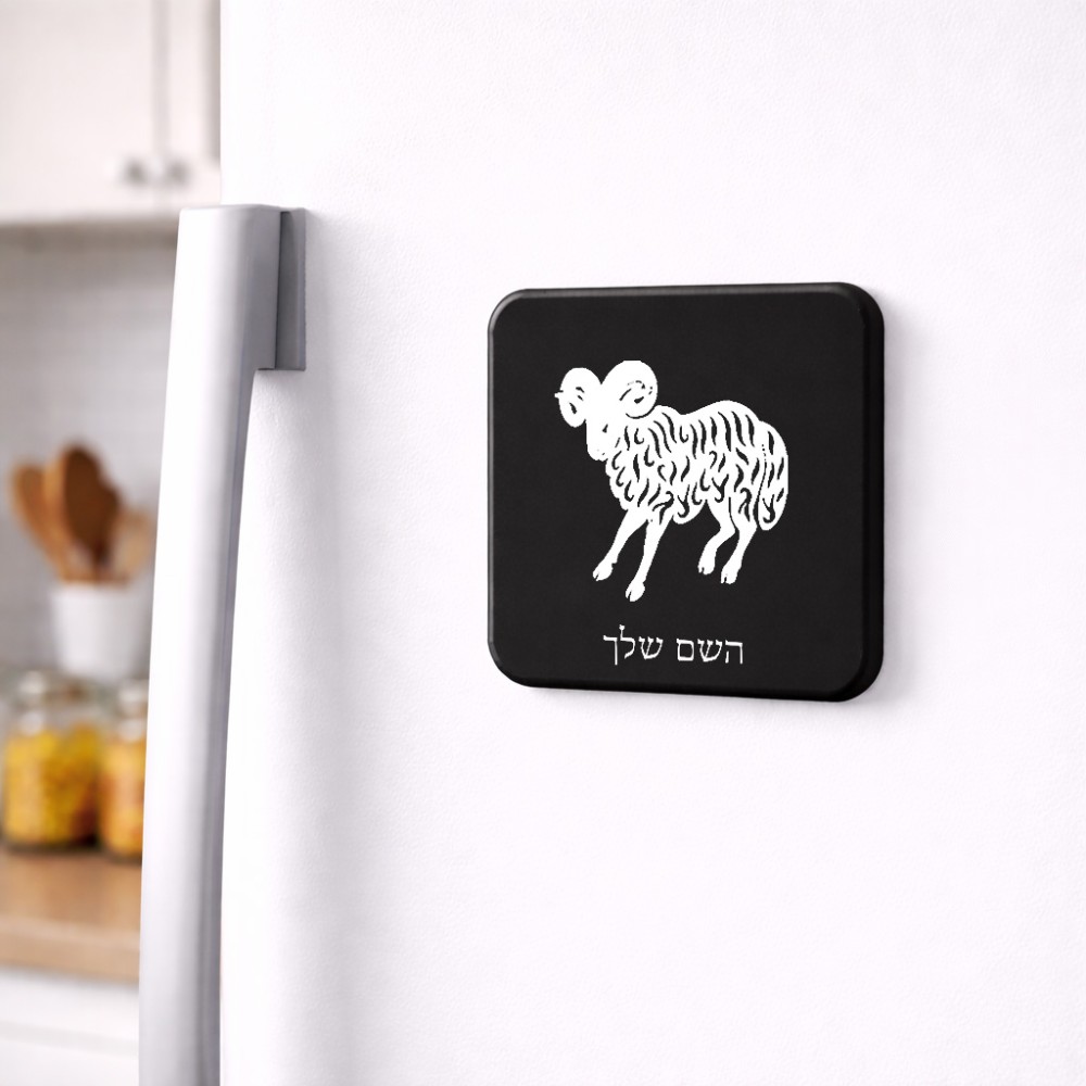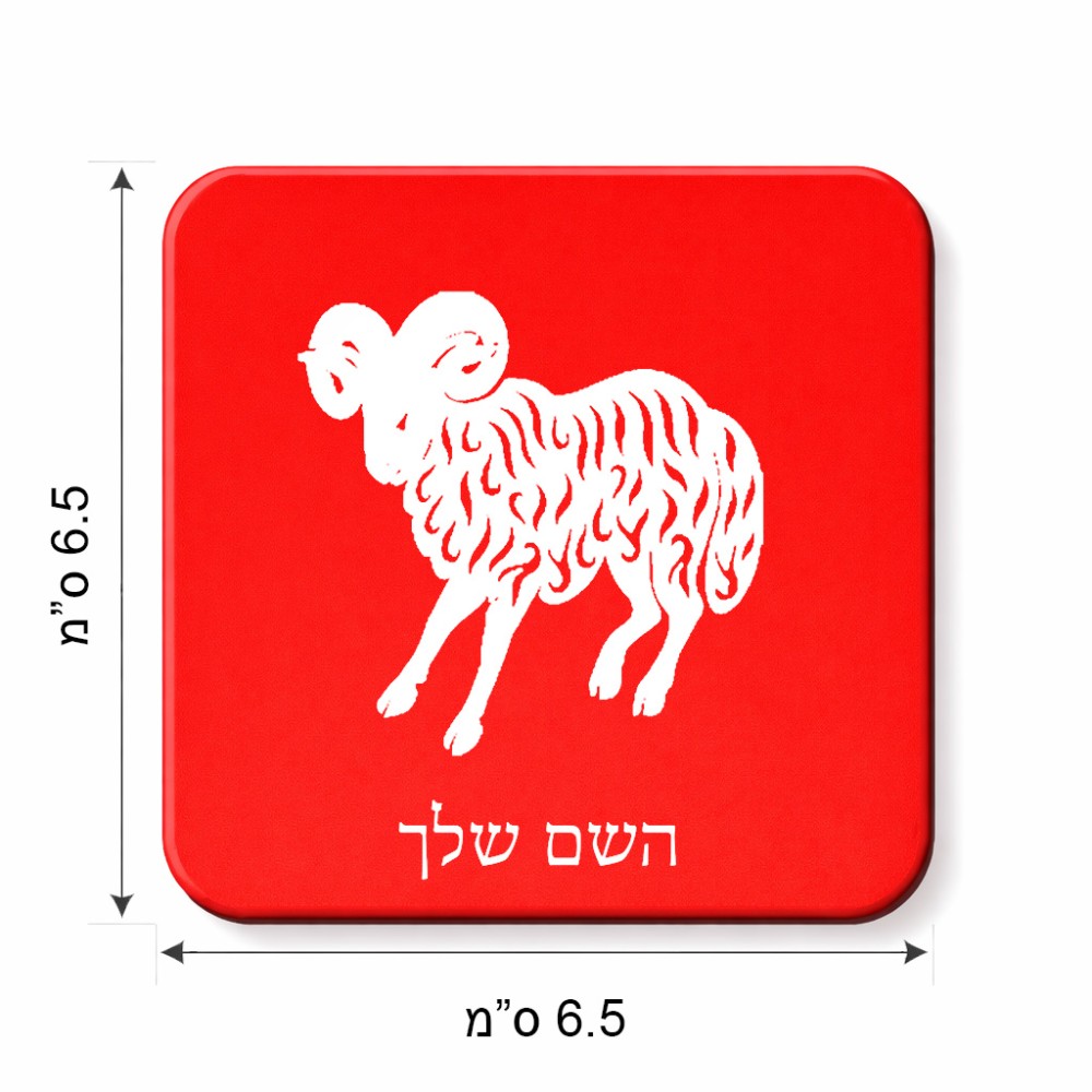 מגנט למקרר בעיצוב אישי עם השם שלך בעיצוב מזלות - טלה גודל המגנט 6.5 × 6.5 ס"מ