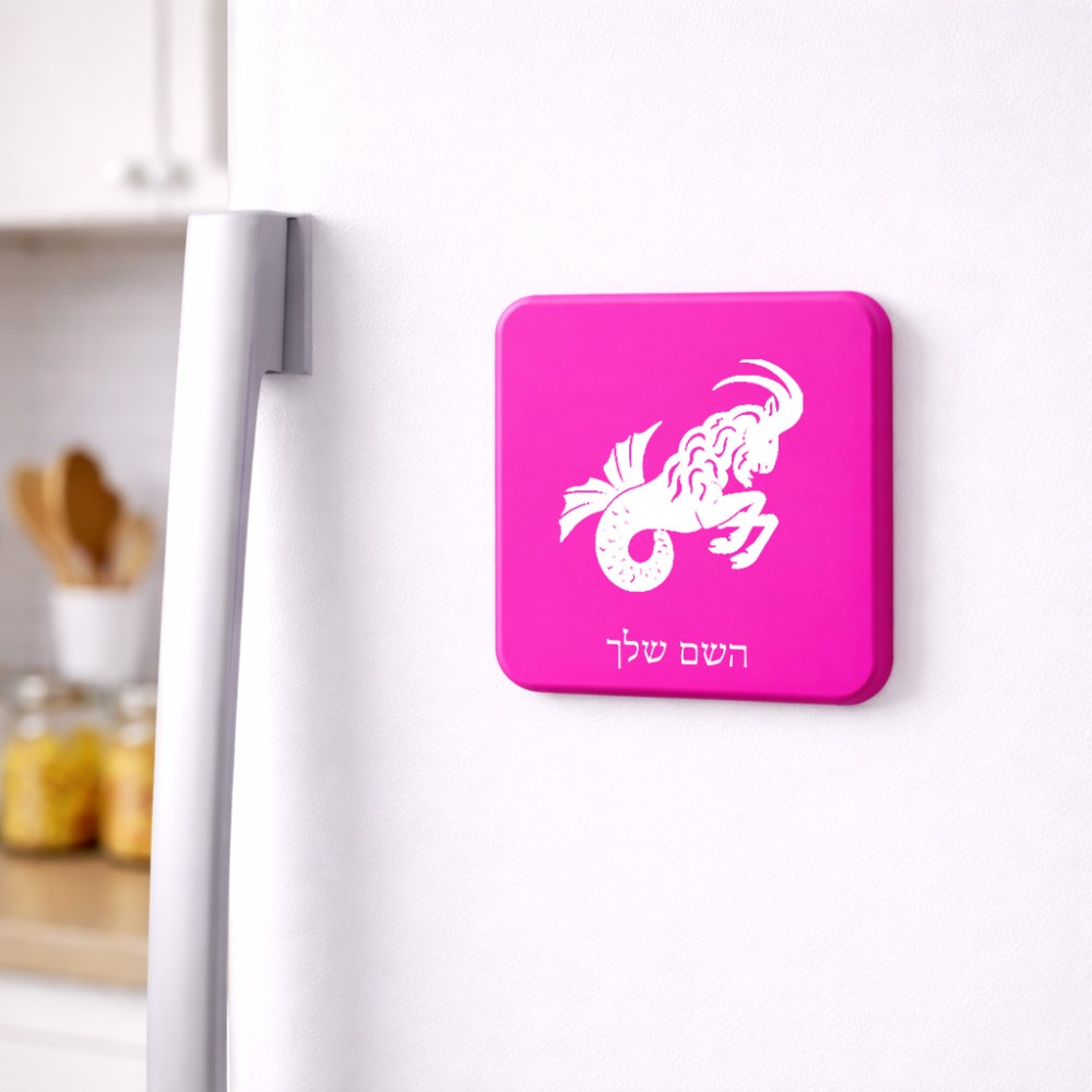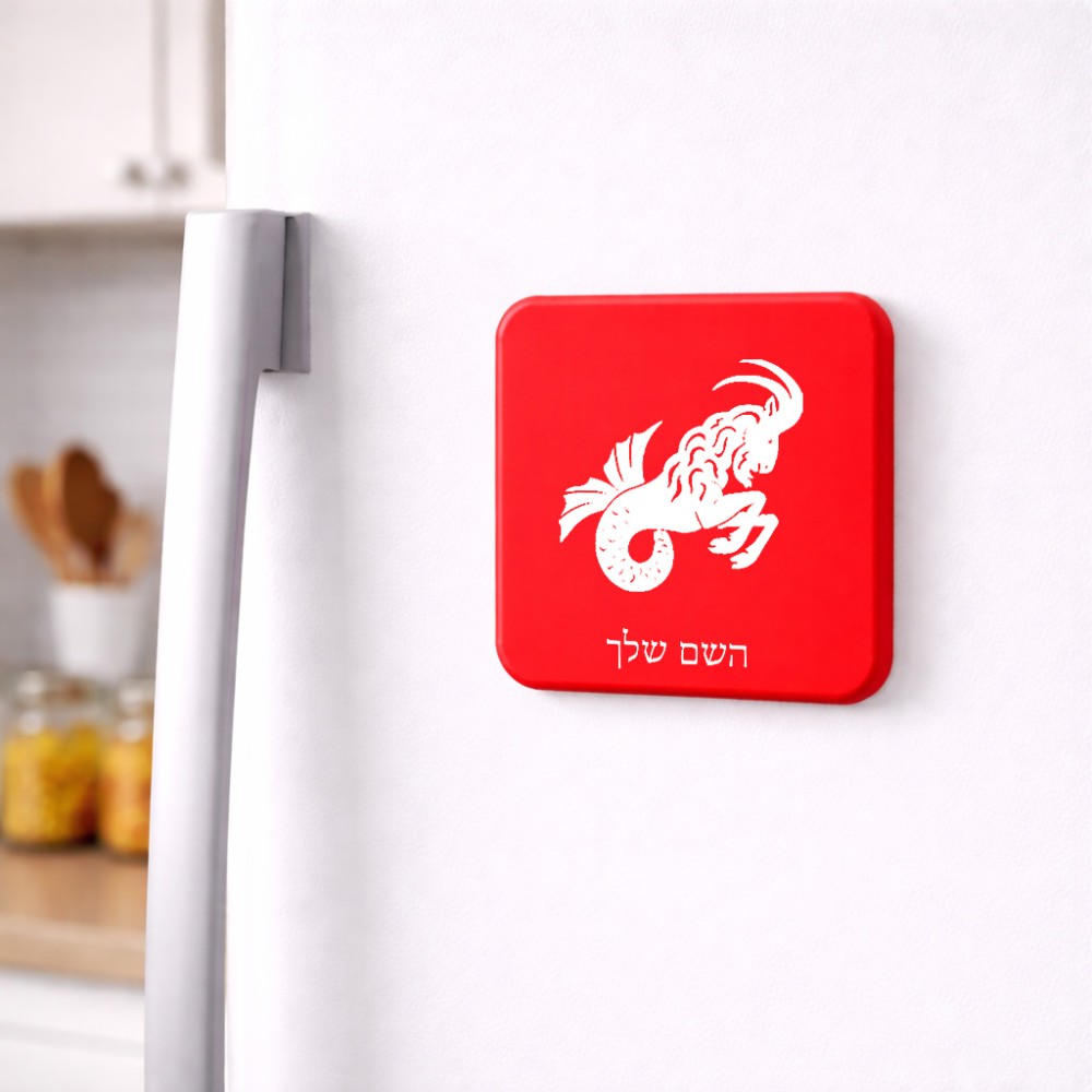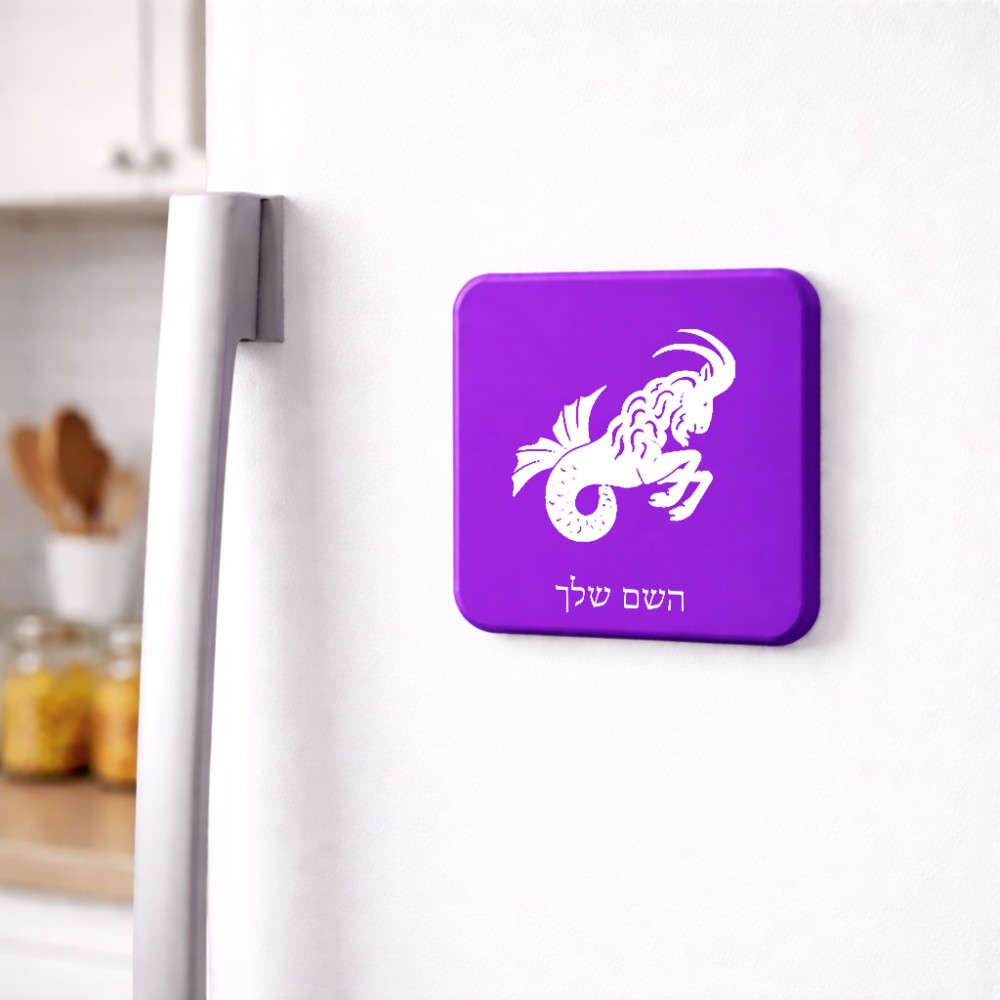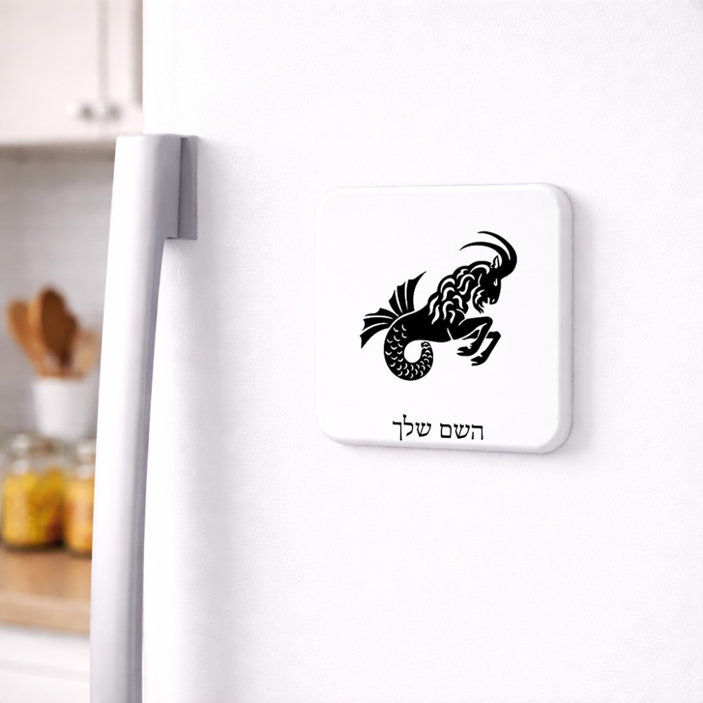 מגנט למקרר בעיצוב אישי עם השם שלך בעיצוב מזלות - גדי גודל המגנט 6.5 × 6.5 ס"מ