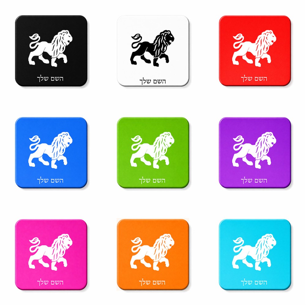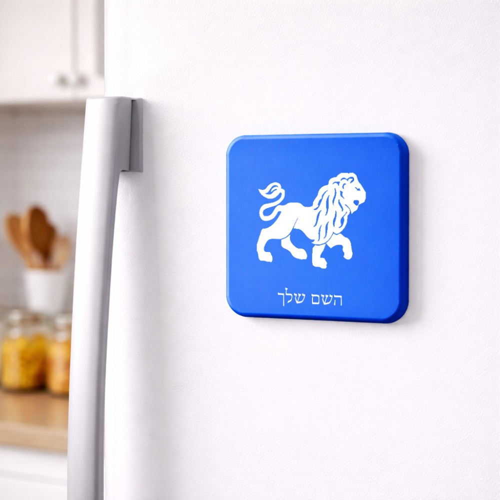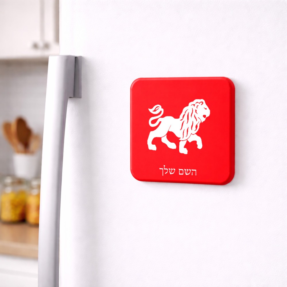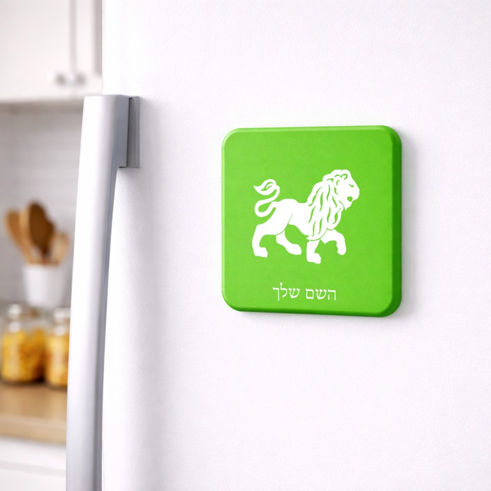 מגנט למקרר בעיצוב אישי עם השם שלך בעיצוב מזלות - אריה גודל המגנט 6.5 × 6.5 ס"מ