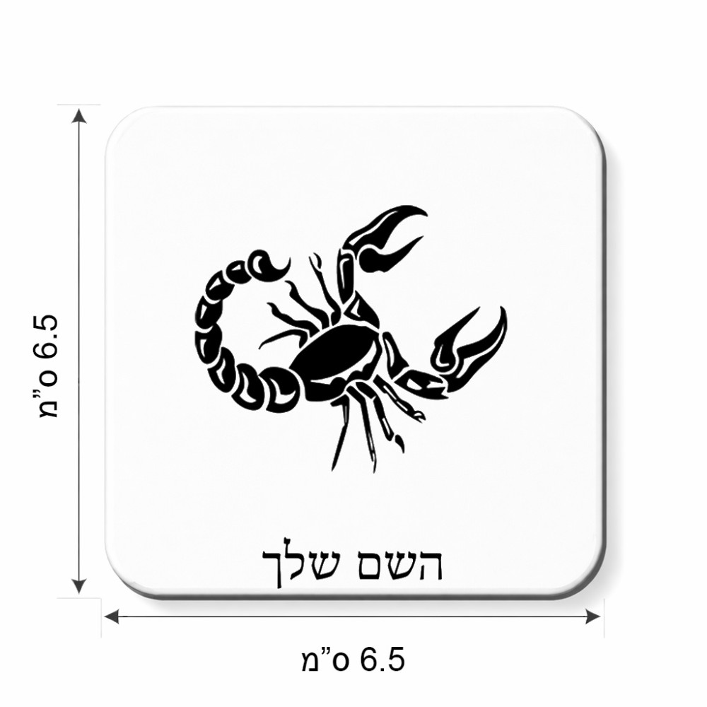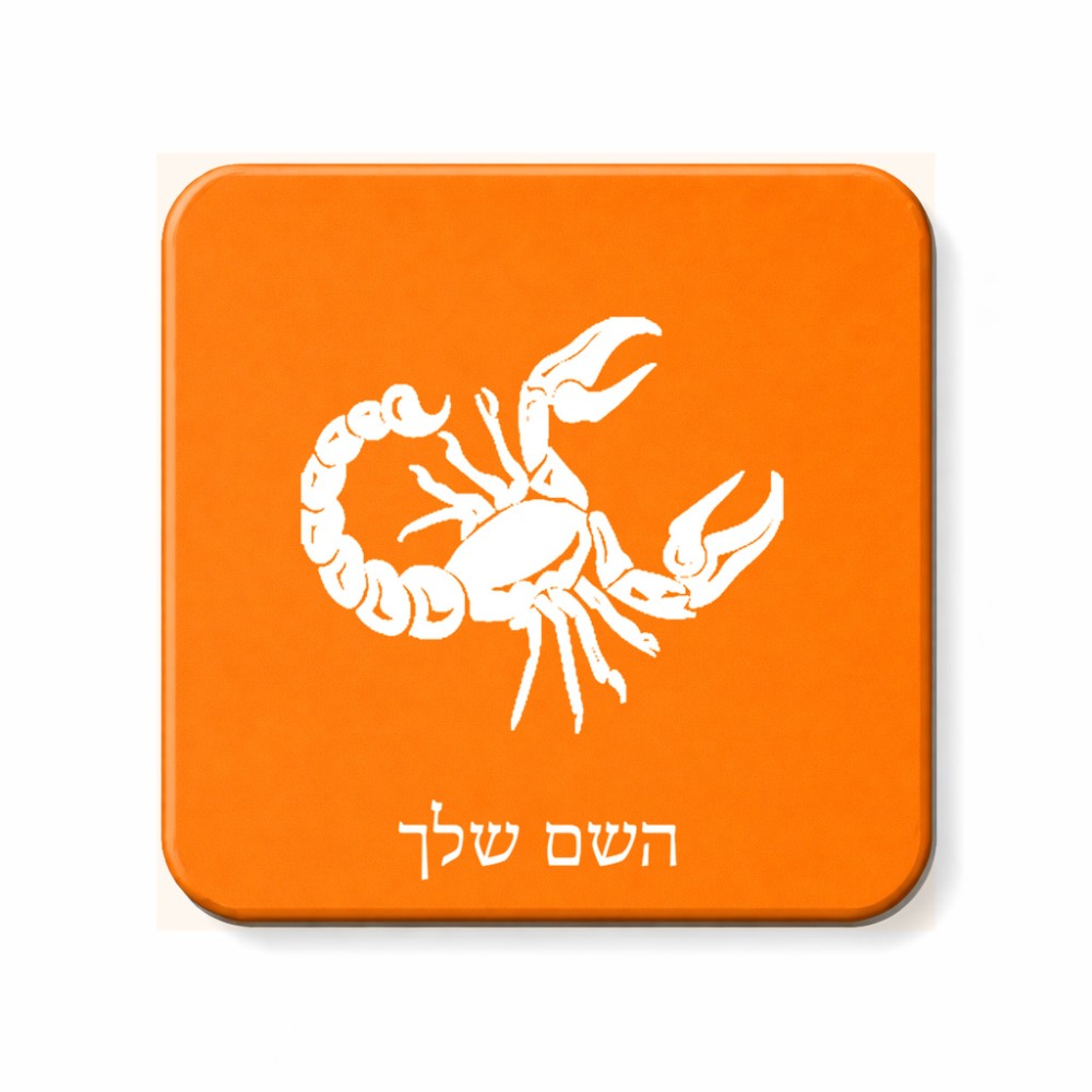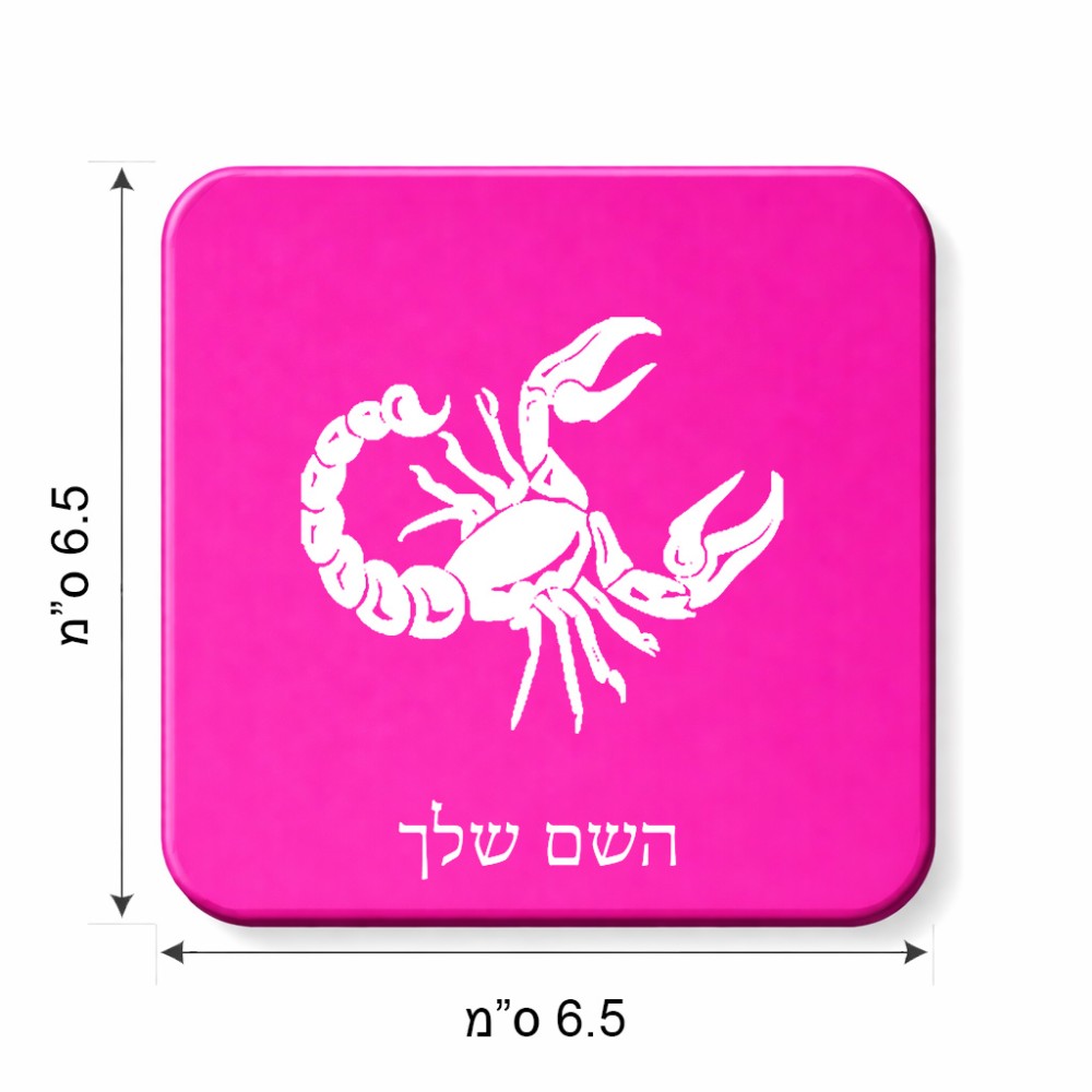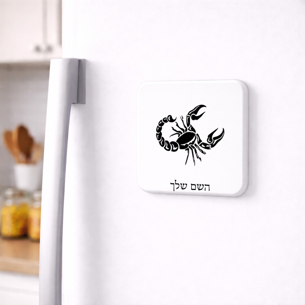 מגנט למקרר בעיצוב אישי עם השם שלך בעיצוב מזלות - עקרב גודל המגנט 6.5 × 6.5 ס"מ. את השם המבוקש ניתן לציין בהזמנה, אם לא צויין אנחנו ניצור קשר לבירור.