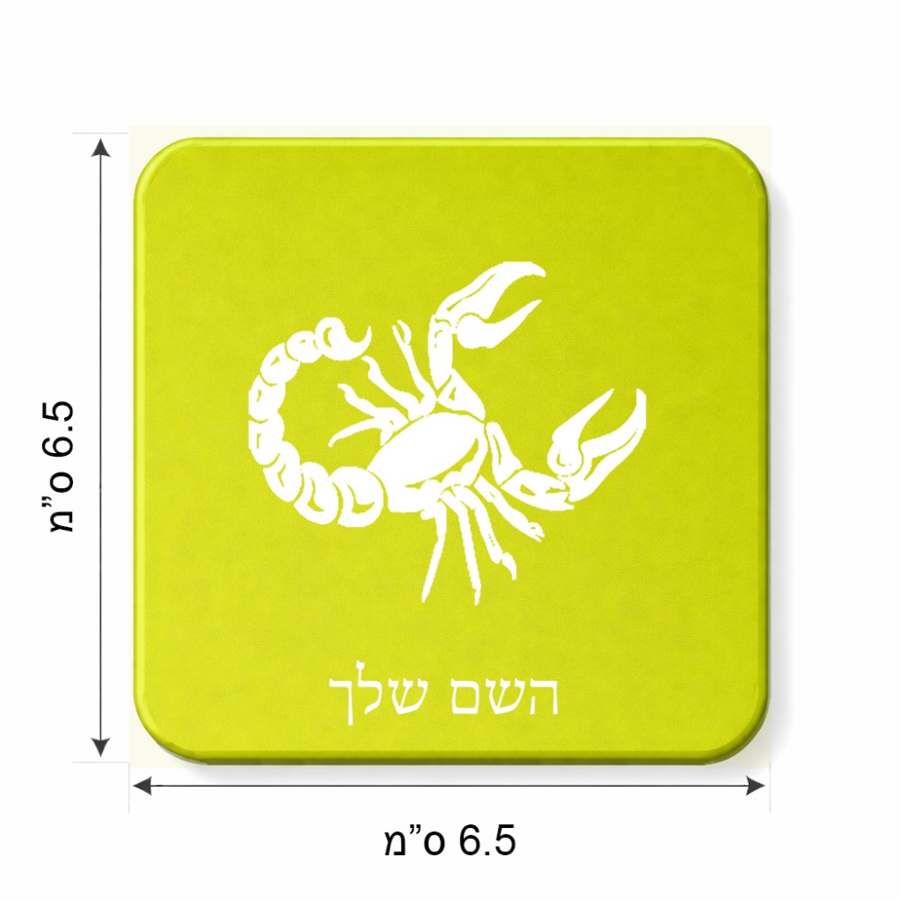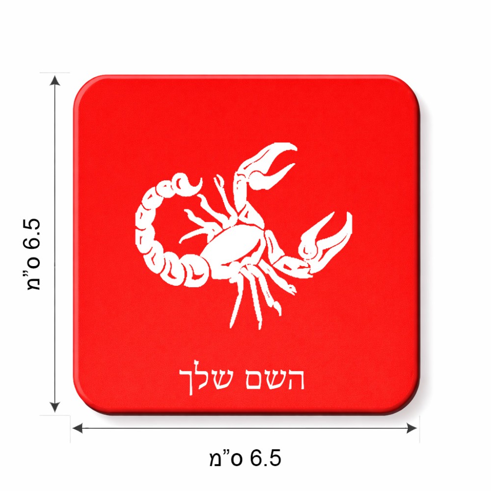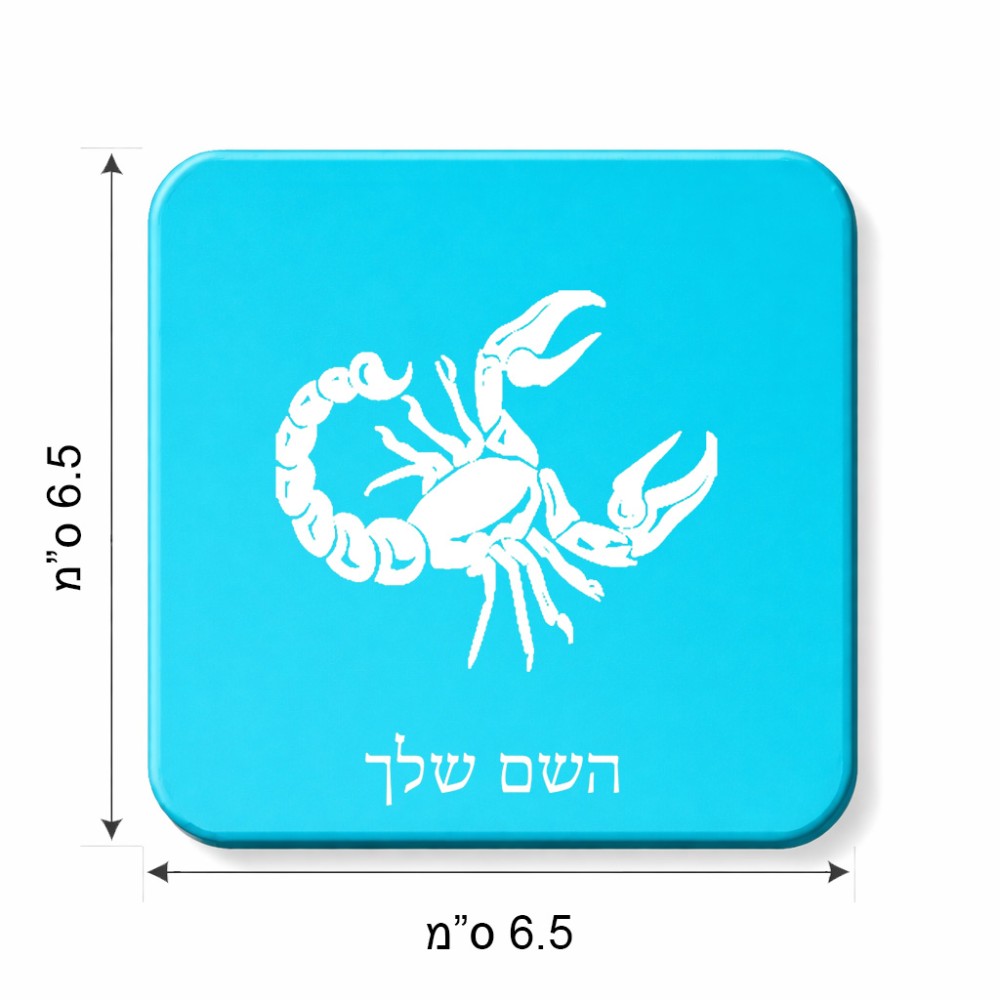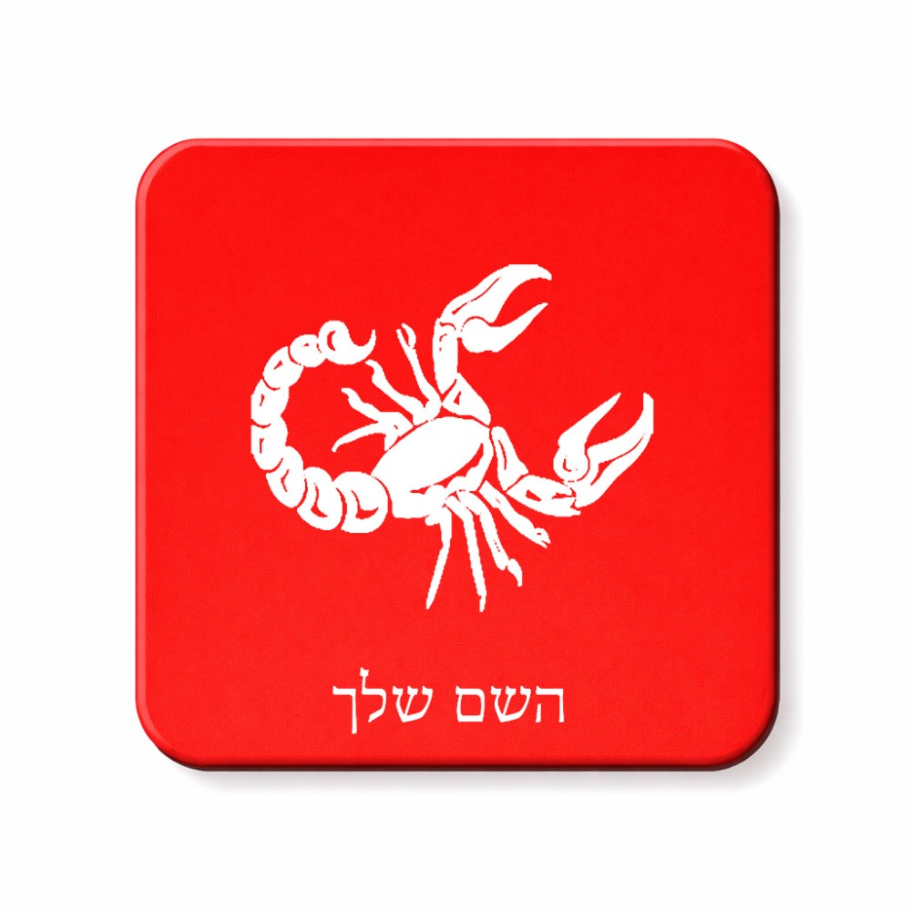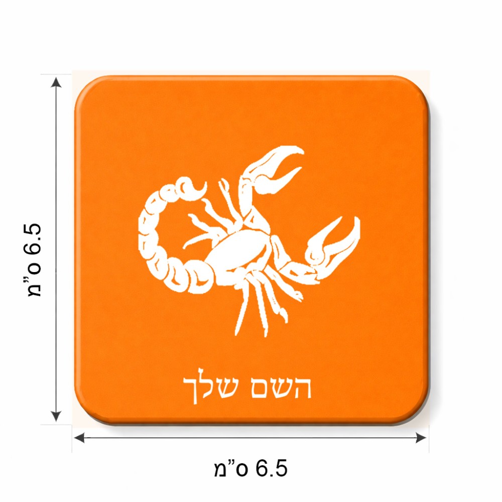 מגנט למקרר בעיצוב אישי עם השם שלך בעיצוב מזלות - עקרב גודל המגנט 6.5 × 6.5 ס"מ. את השם המבוקש ניתן לציין בהזמנה, אם לא צויין אנחנו ניצור קשר לבירור.