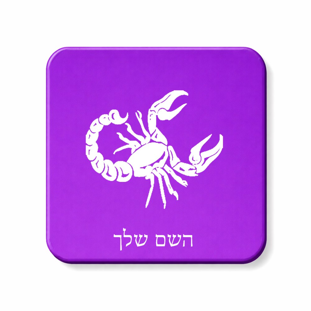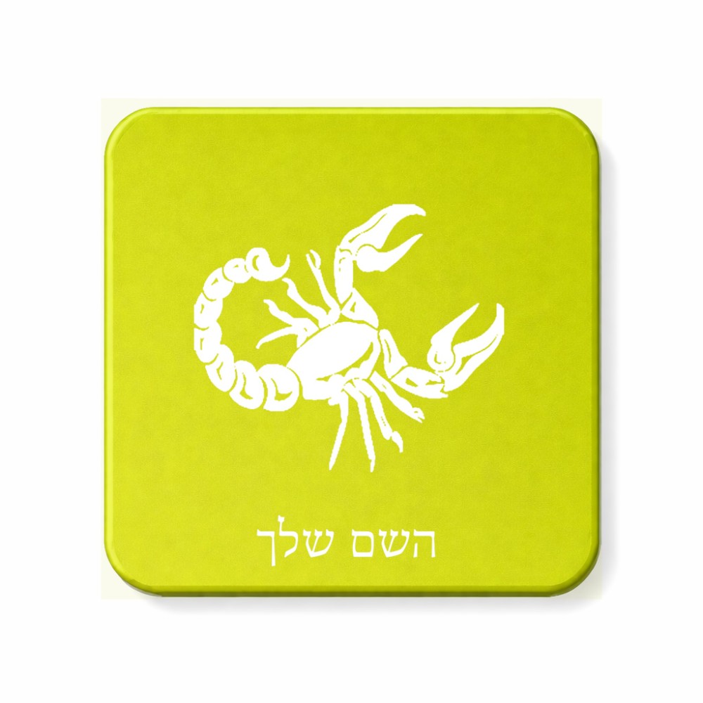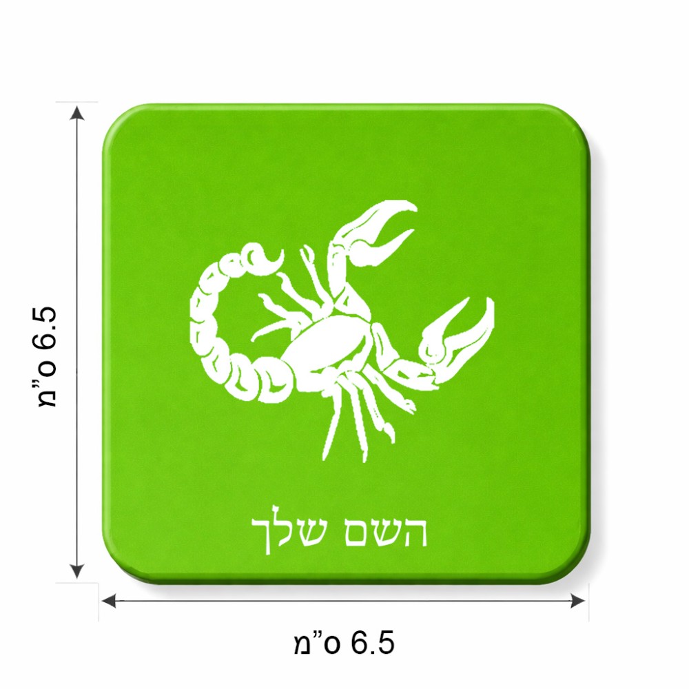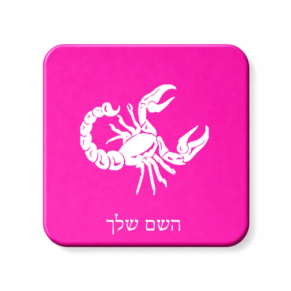 מגנט למקרר בעיצוב אישי עם השם שלך בעיצוב מזלות - עקרב גודל המגנט 6.5 × 6.5 ס"מ. את השם המבוקש ניתן לציין בהזמנה, אם לא צויין אנחנו ניצור קשר לבירור.